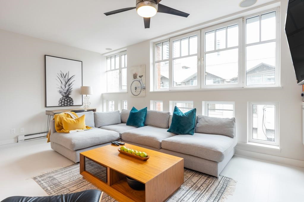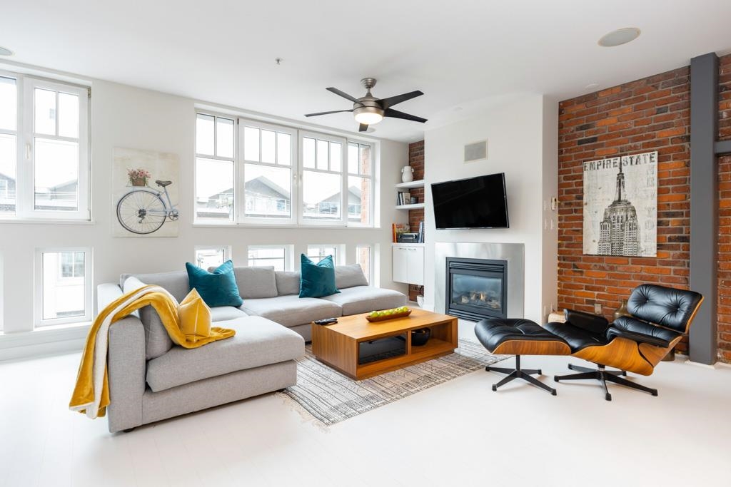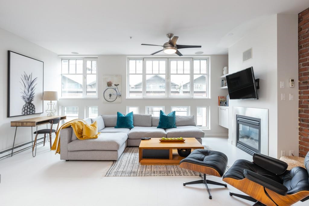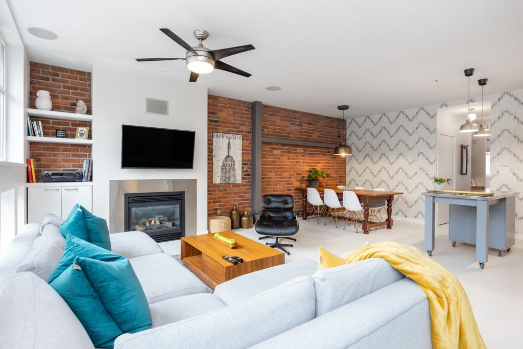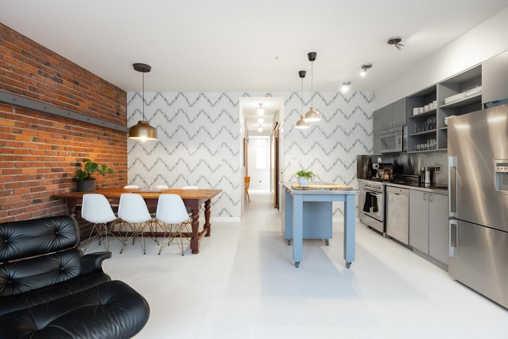 Great creative space in the iconic Crandall Building, a sought-after 1912 loft conversion in Yaletown’s historic warehouse district. Fully furnished and designer-remastered, this unique home features soaring 10-ft ceilings, exposed brick, metal beams, bamboo floors, and a cozy gas fireplace. Two walls of large European turn-and-tilt windows fill the open living, dining, and kitchen areas with natural light. The gourmet kitchen includes high-end stainless steel appliances, Fisher & Paykel fridge, Bertazzoni ...