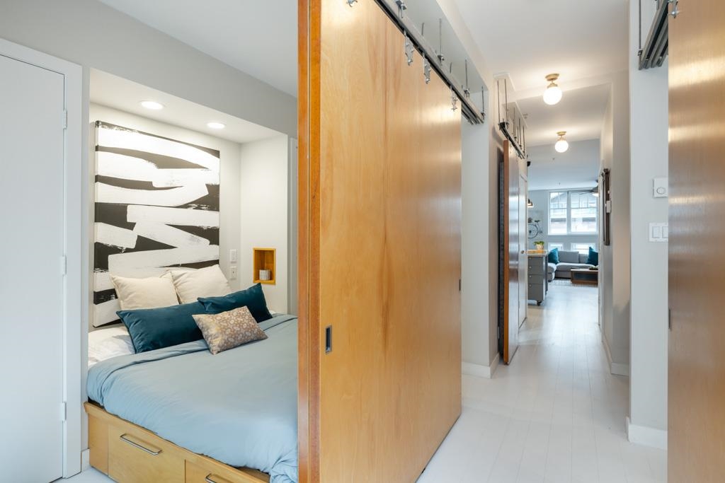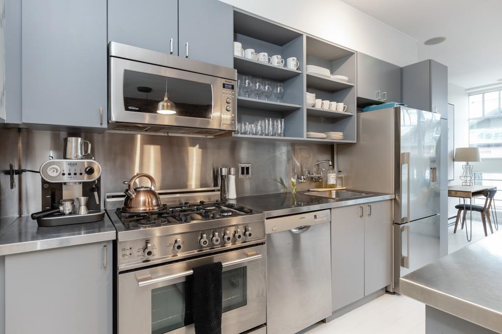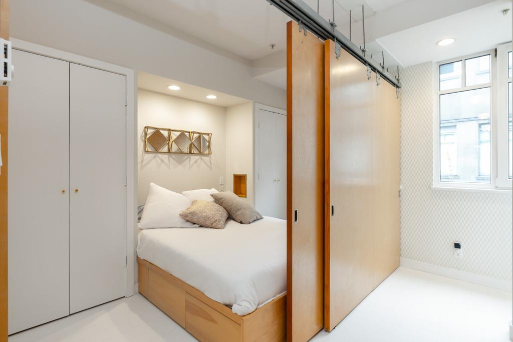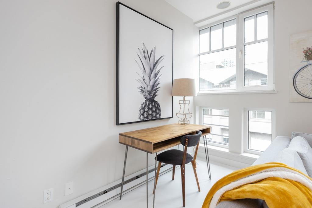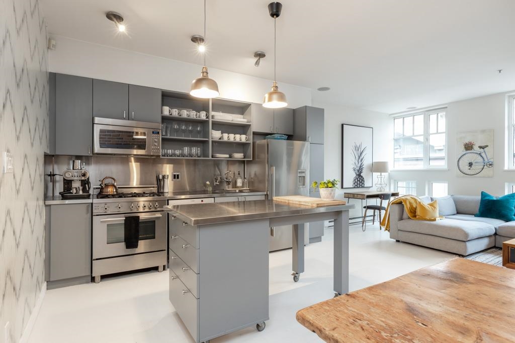 Great creative space in the iconic Crandall Building, a sought-after 1912 loft conversion in Yaletown’s historic warehouse district. Fully furnished and designer-remastered, this unique home features soaring 10-ft ceilings, exposed brick, metal beams, bamboo floors, and a cozy gas fireplace. Two walls of large European turn-and-tilt windows fill the open living, dining, and kitchen areas with natural light. The gourmet kitchen includes high-end stainless steel appliances, Fisher & Paykel fridge, Bertazzoni ...