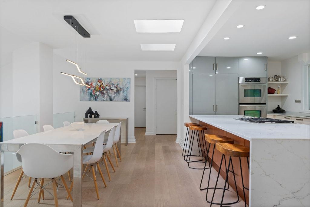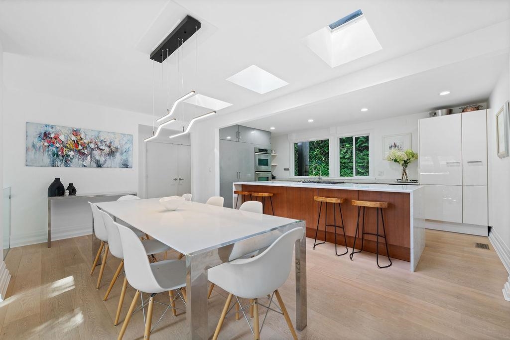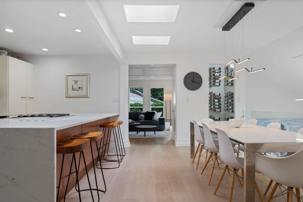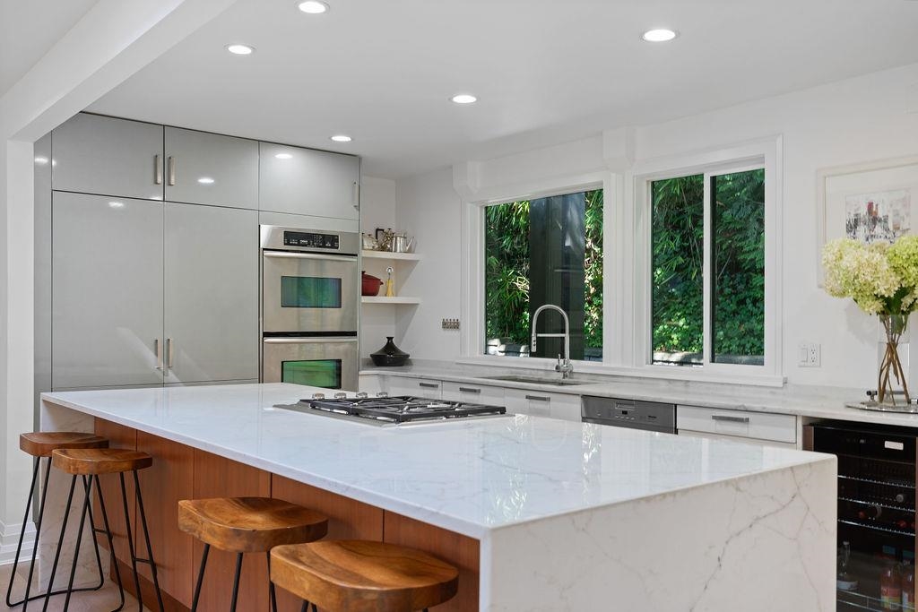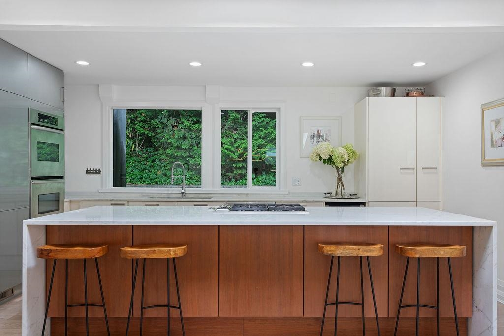 A stunning West Coast Contemporary residence tucked away on a quiet cul-de-sac in Bayridge. Thoughtfully reimagined & architecturally refined, this home is bathed in natural light w/ floor-to-ceiling windows & skylights framing tranquil forest & Cypress Creek views. The bright, open floor plan strikes a perfect balance between warm, intimate living & sophisticated entertaining. Elegant wide-plank oak hardwood floors, vaulted ceilings, a custom SieMatic kitchen w/ Wolf & Liebherr appliances, & an oversized m...