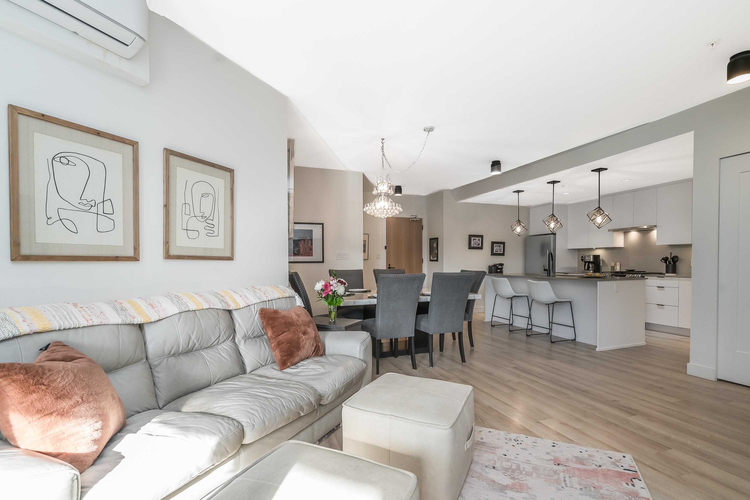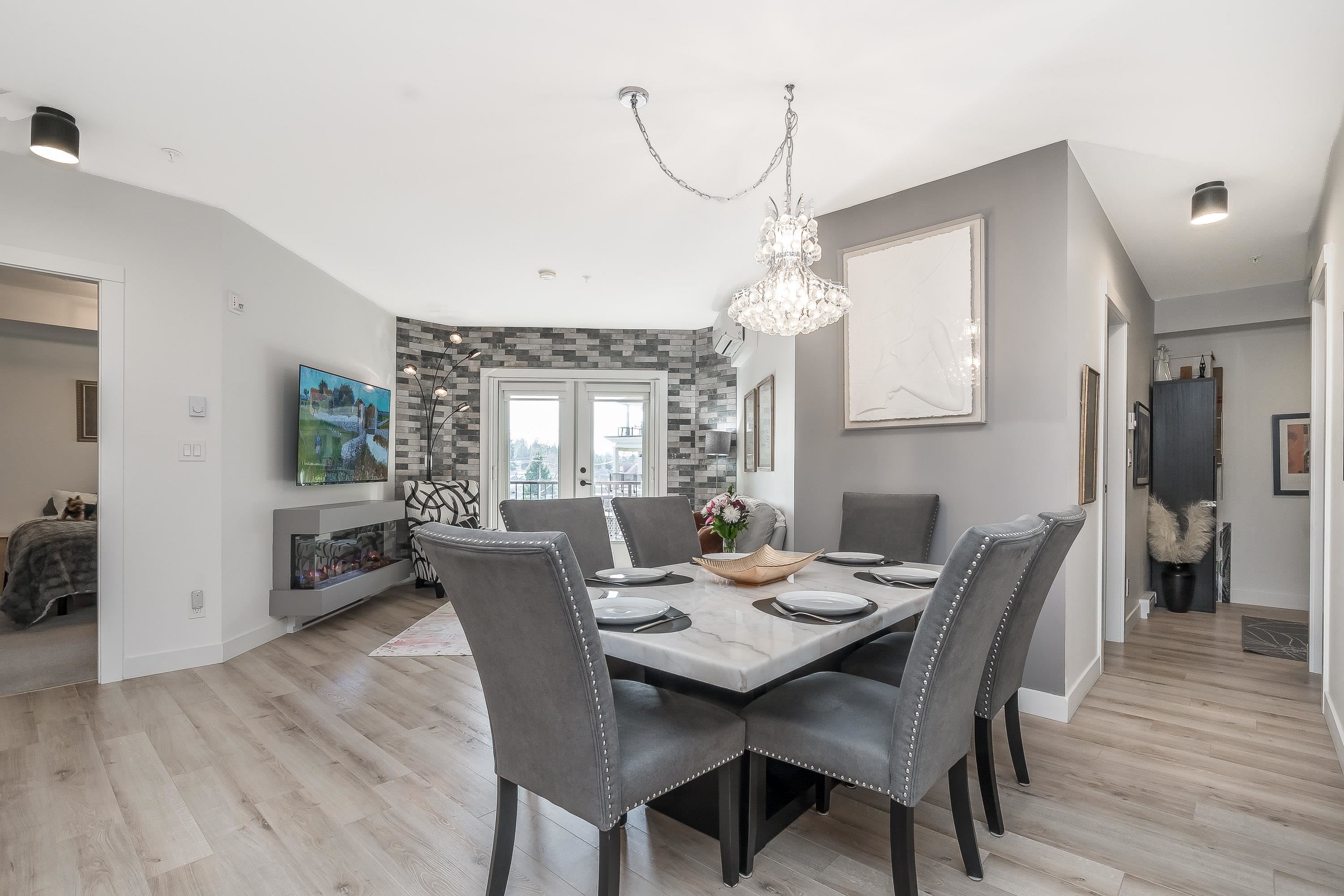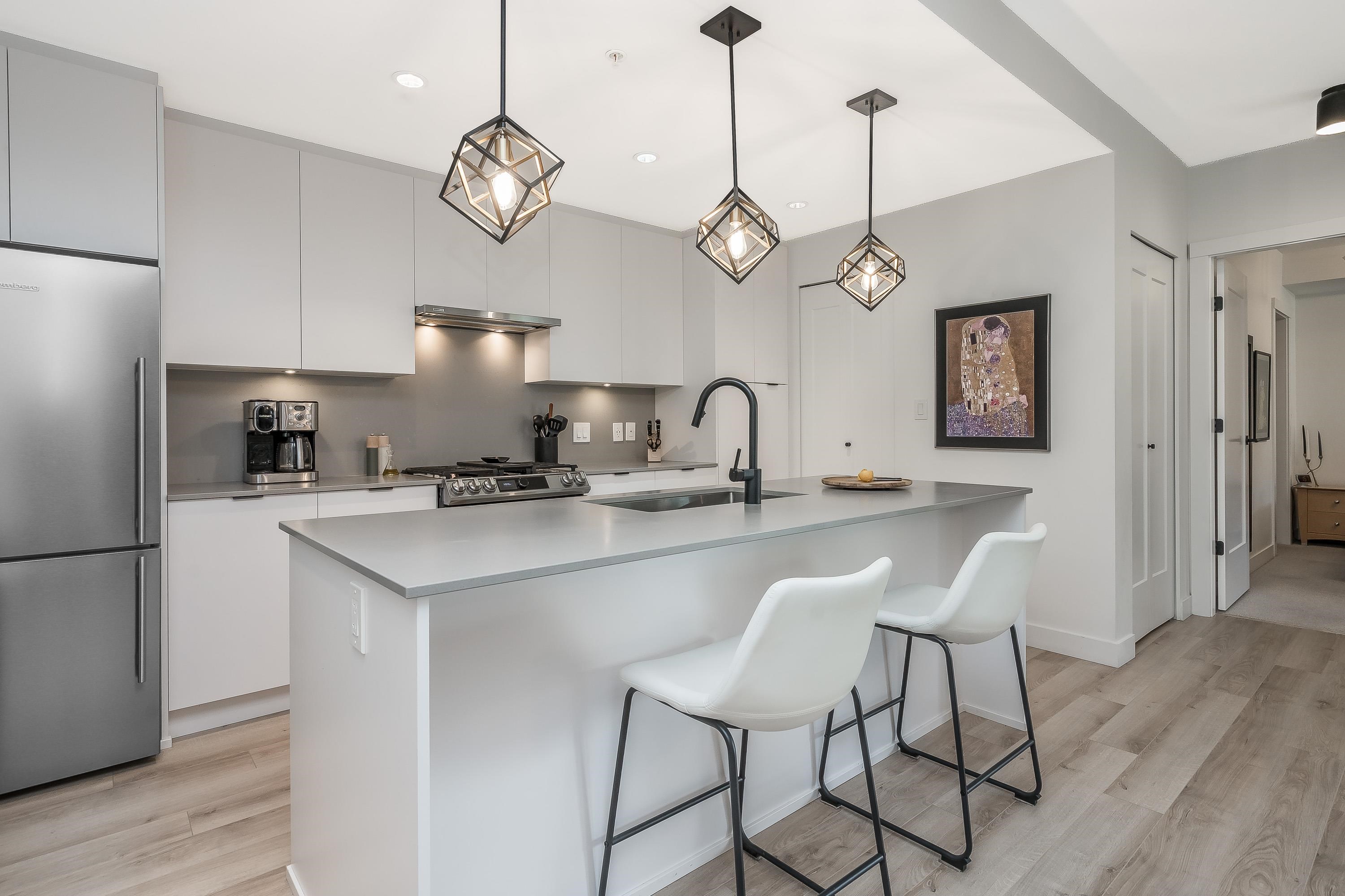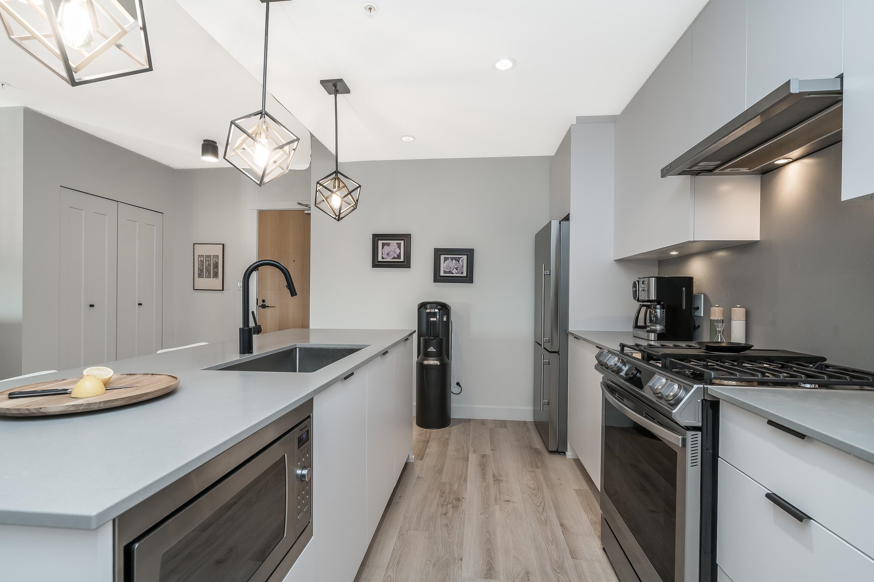 Upgraded corner unit featuring 2 large bedrooms + spacious den (easily 3rd bedroom) with beautiful southwest exposure and afternoon sun. Enjoy an extra-wide corner deck with gas BBQ hookup and open views. Quality updates include luxury vinyl plank flooring, French balcony doors with phantom screens, 3-sided fireplace, custom lighting, blinds, and walk-in closet organizer. Functional layout with gas range, walk-in pantry, full-size laundry, and deep soaker tub. Secure, well-run building with amenity room (Wi...