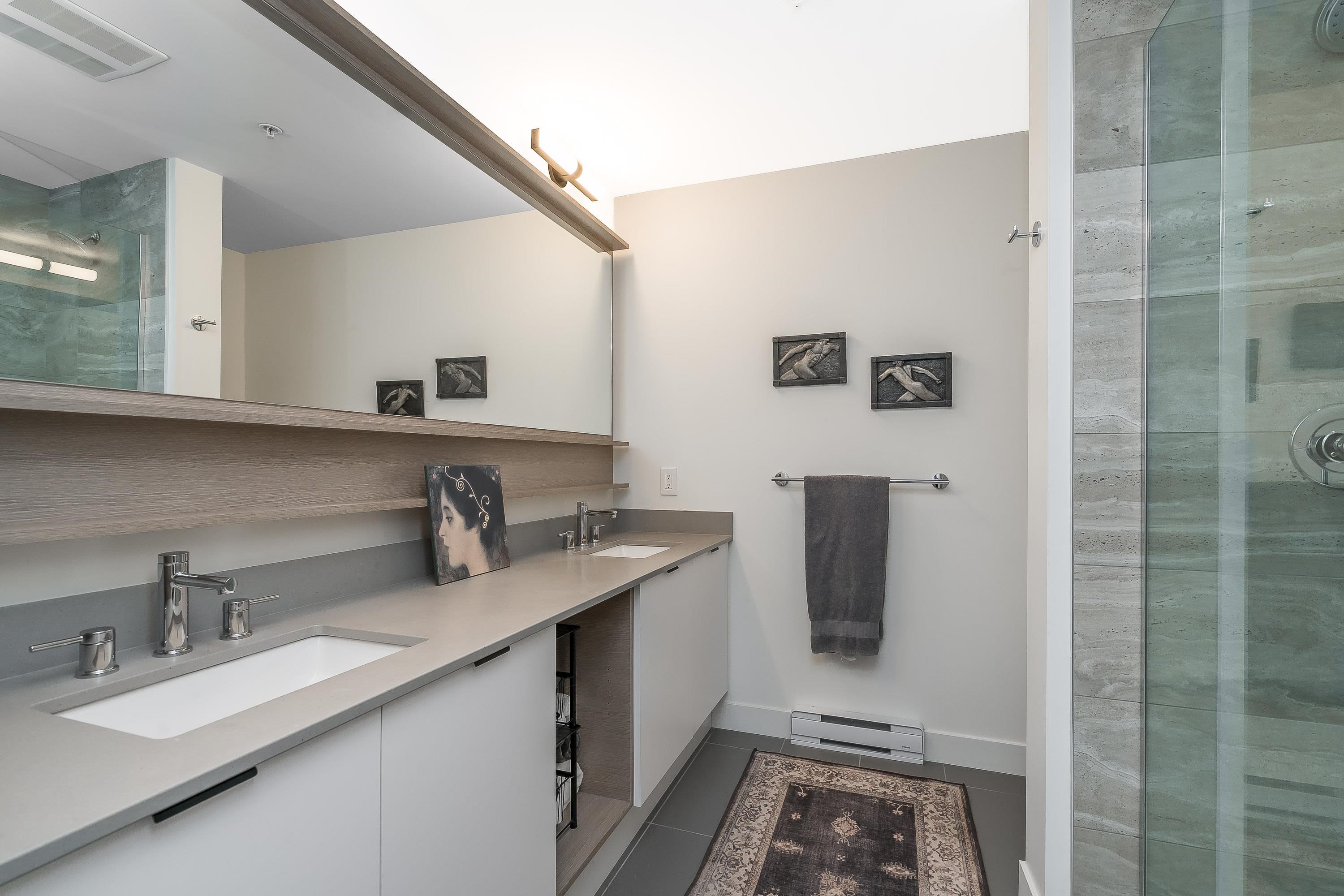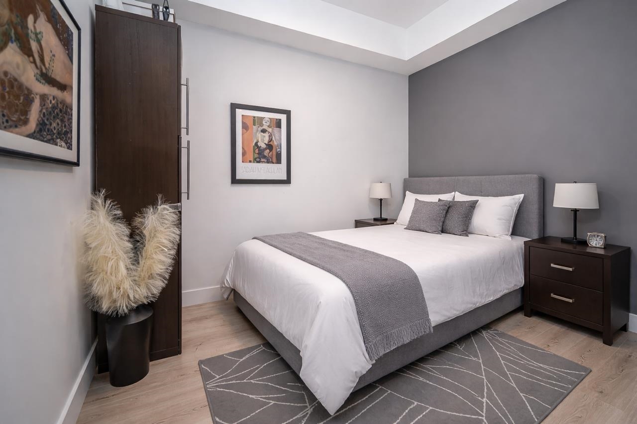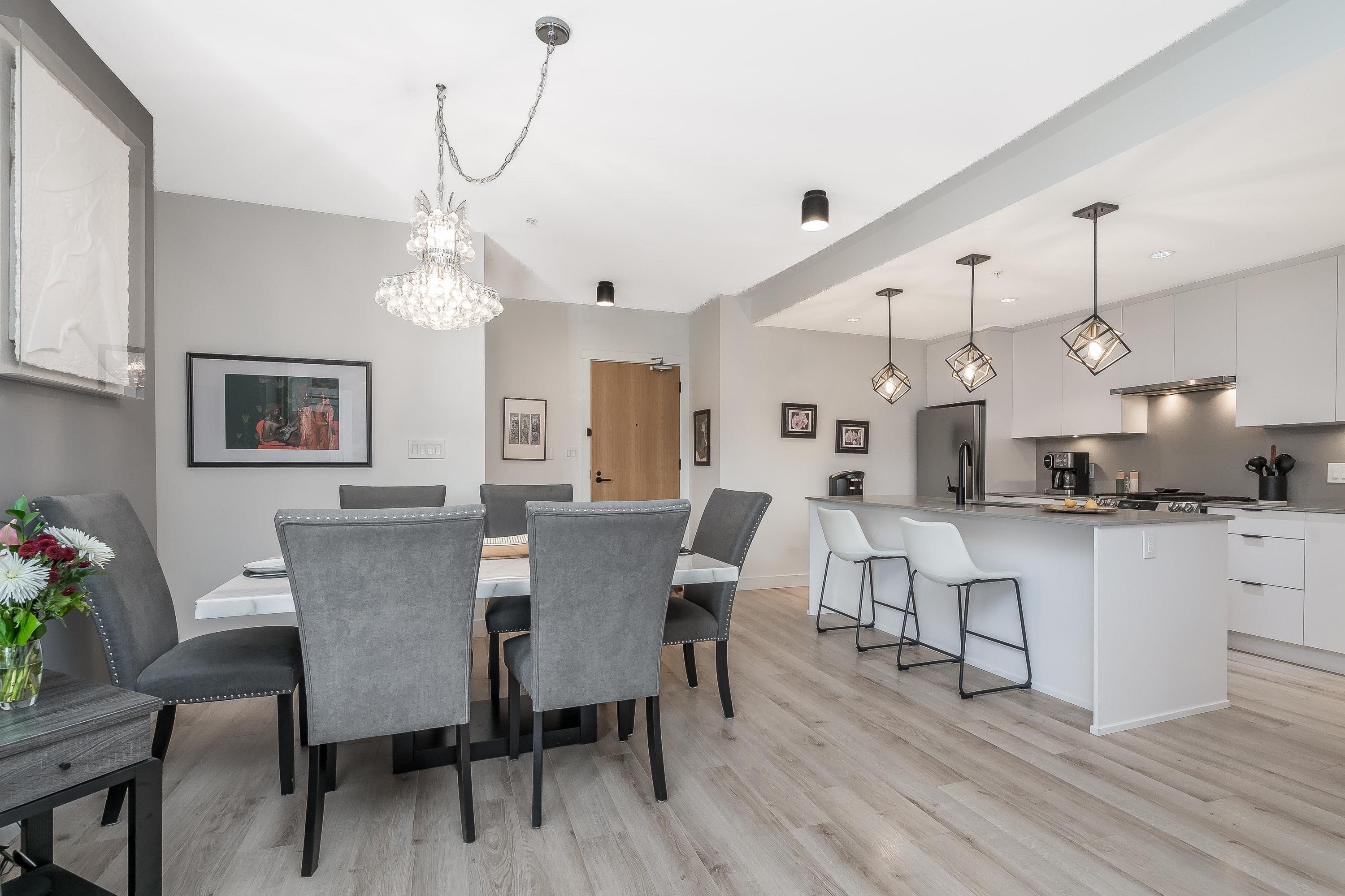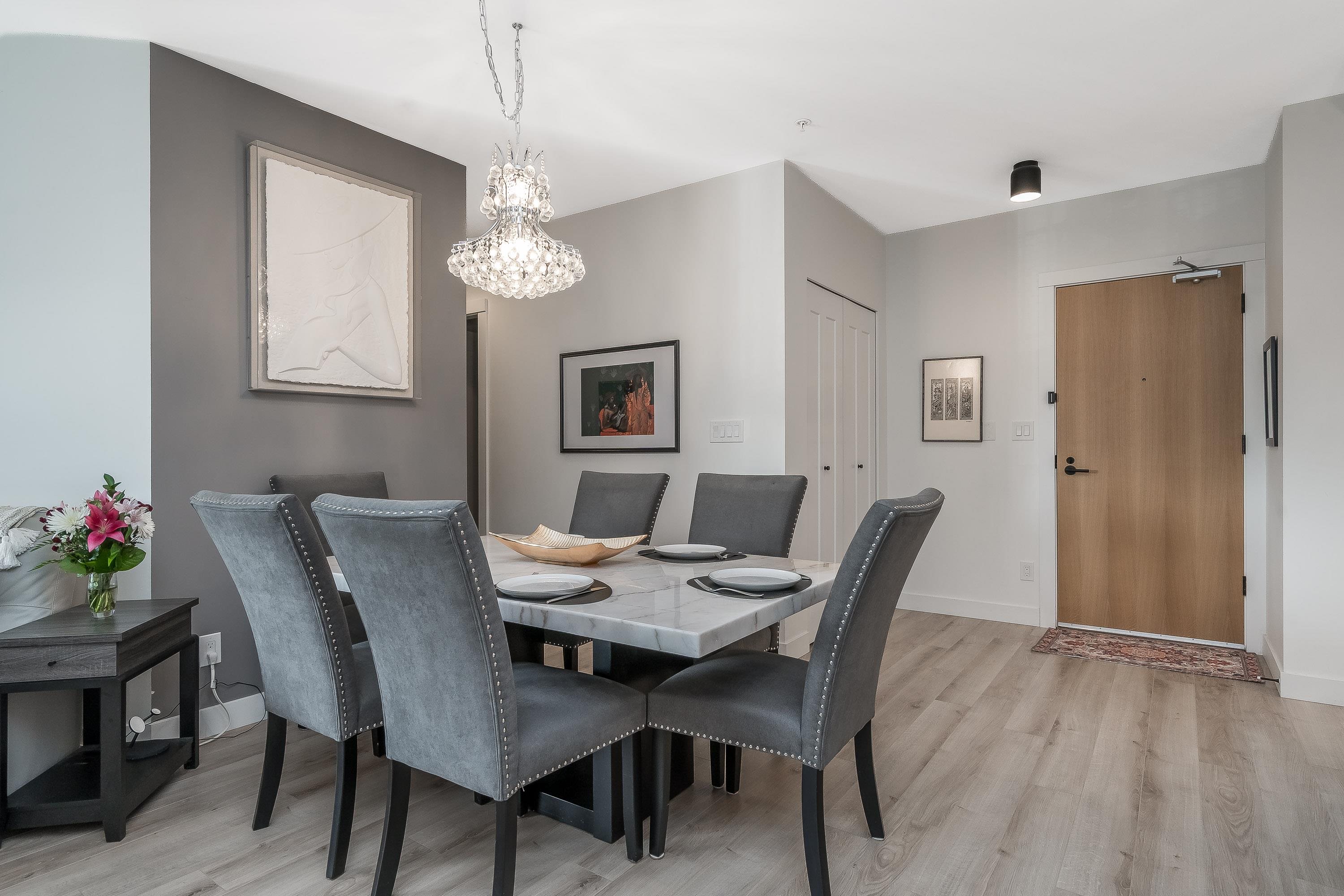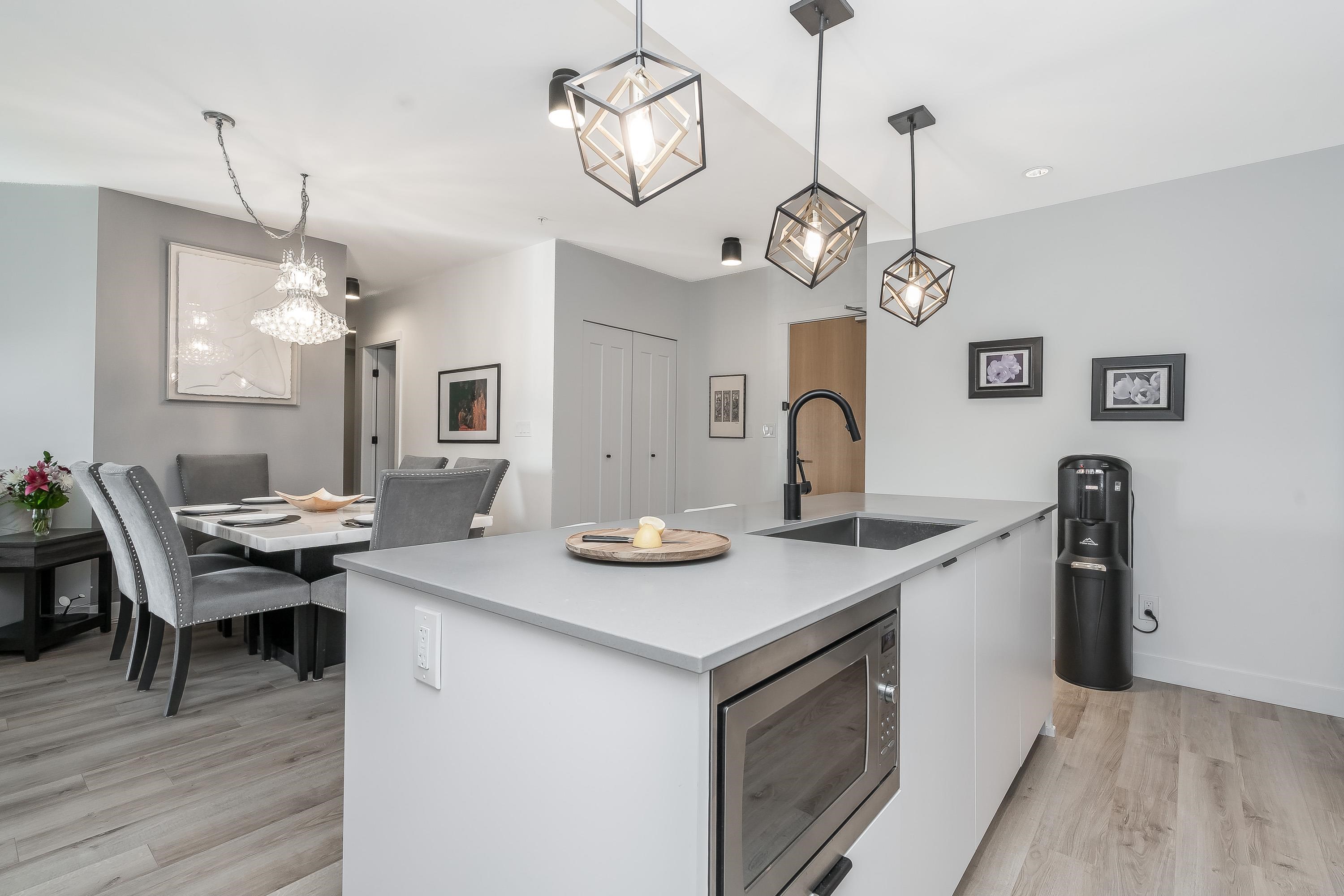 Upgraded corner unit featuring 2 large bedrooms + spacious den (easily 3rd bedroom) with beautiful southwest exposure and afternoon sun. Enjoy an extra-wide corner deck with gas BBQ hookup and open views. Quality updates include luxury vinyl plank flooring, French balcony doors with phantom screens, 3-sided fireplace, custom lighting, blinds, and walk-in closet organizer. Functional layout with gas range, walk-in pantry, full-size laundry, and deep soaker tub. Secure, well-run building with amenity room (Wi...