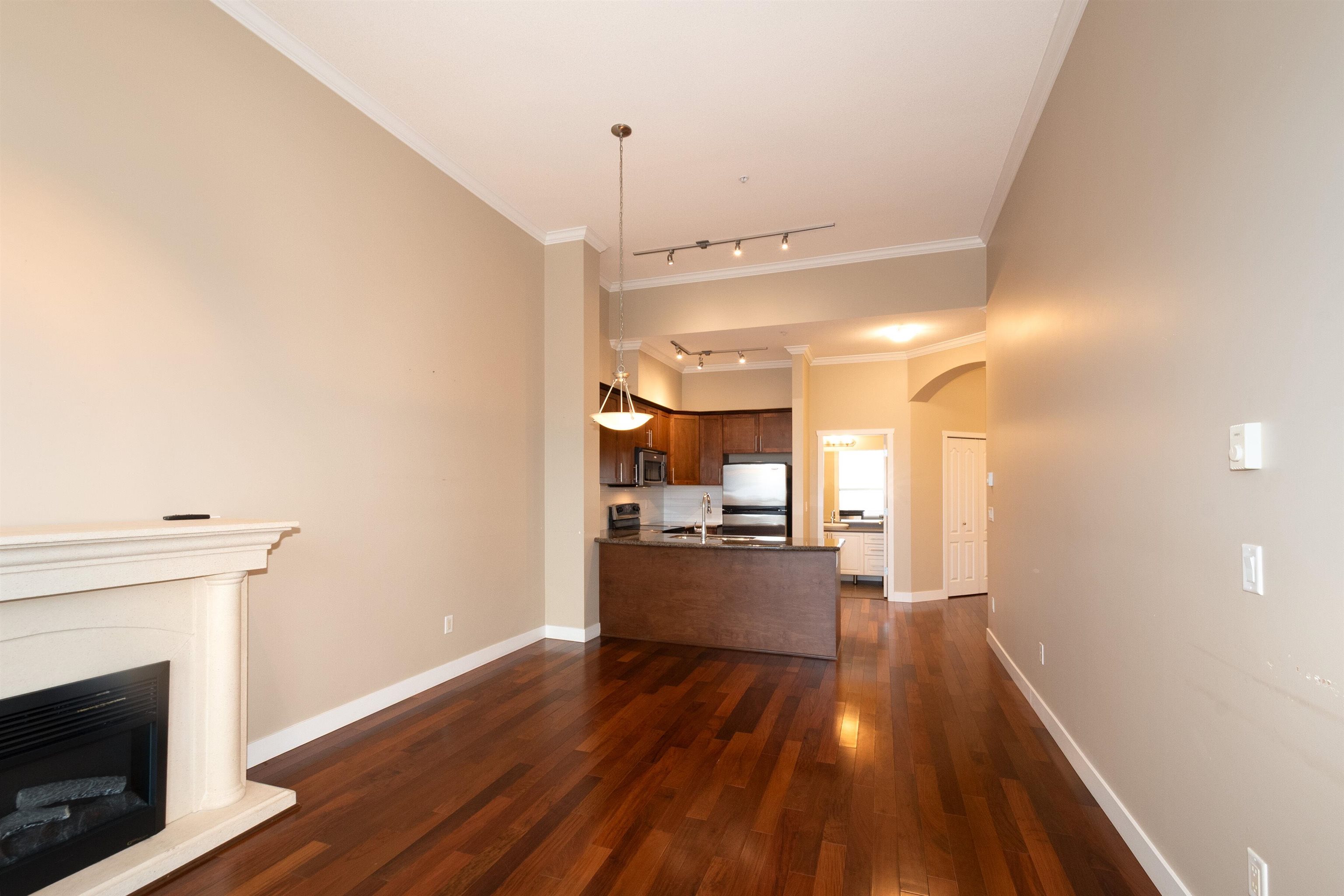 This gorgeous, bright TOP FLOOR 2 bedroom home features soaring 12 ft ceilings, oversized windows, and an open, airy feel throughout. Beautifully finished with Brazilian walnut hardwood floors, real wood kitchen cabinetry, granite countertops, stainless steel appliances, crown mouldings, and baseboards. Offering just under 1000 sq ft of living space, plus a large 150 sq ft private balcony overlooking the courtyard. The spacious primary bedroom includes a walk-in closet and its own 3-piece ensuite with walk-...
