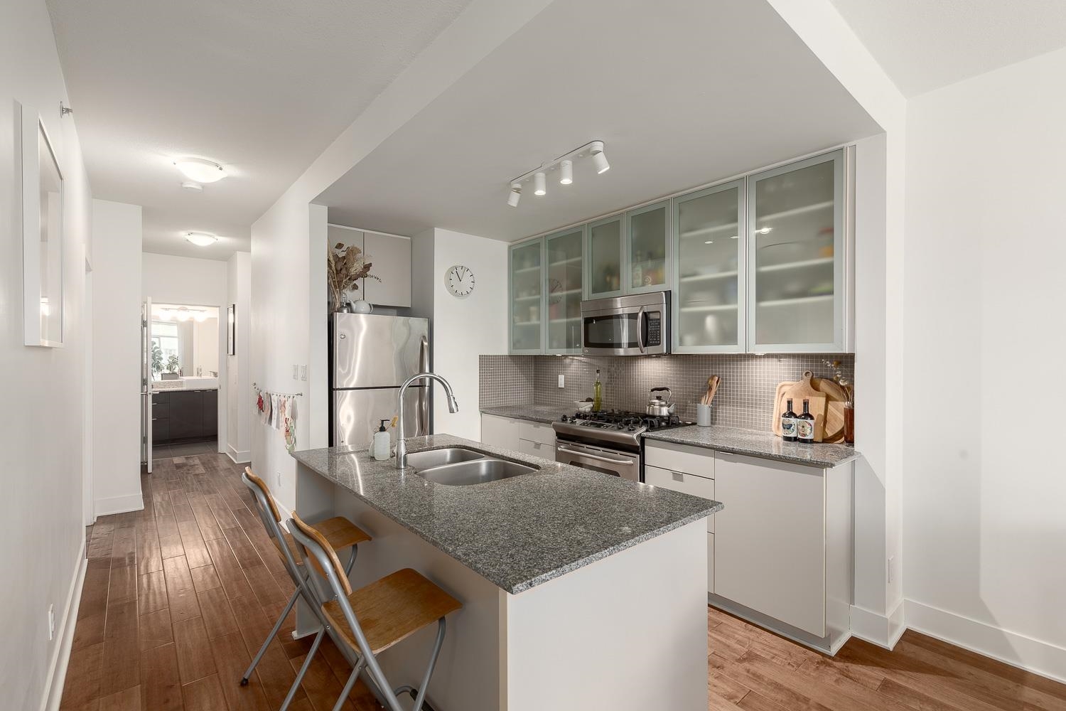 Welcome to The Sophia, a concrete mid-rise building in the sought-after Mt. Pleasant neighbourhood. This stylish and functional 2-bed, 2-bath +storage/flex space home offers an exceptional floor plan with floor-to-ceiling windows, a cozy fireplace, and North Shore views from the covered balcony. The well-appointed kitchen features stainless steel appliances, a convenient island and gas range. Enjoy ample in-suite storage plus a dedicated external locker. The Sophia is a well run building with a proactive s...