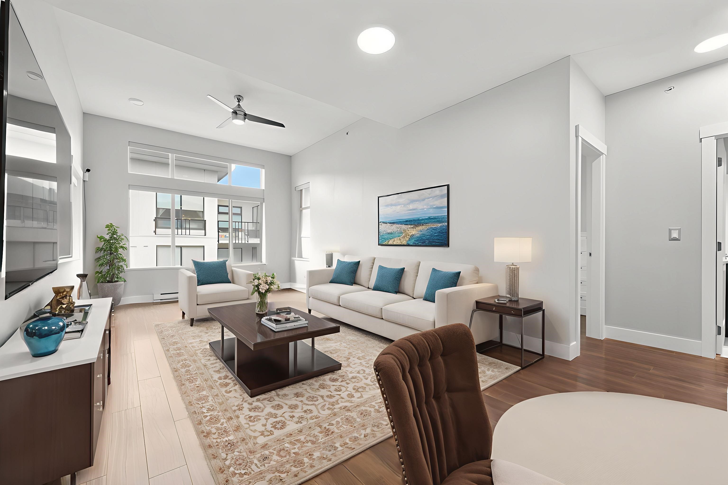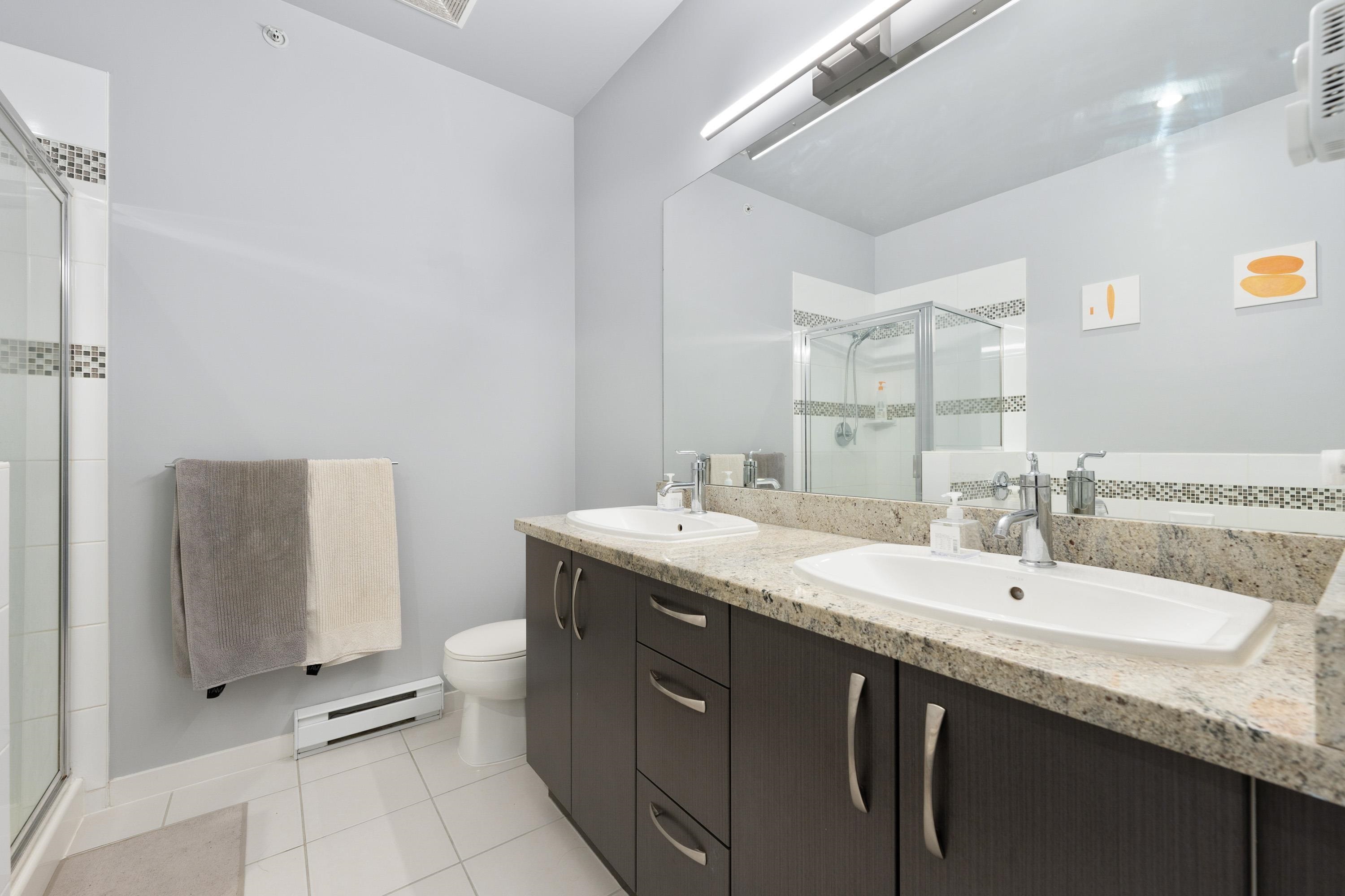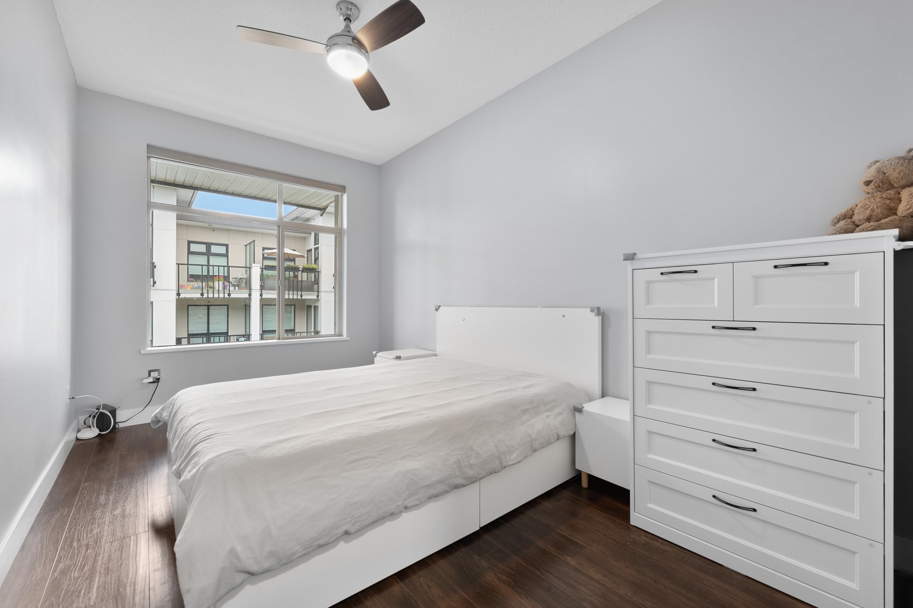 Well priced, Top-floor 2-bedroom, 2-bath condo with 2 parking stalls, soaring 10.5 ft ceilings, and a bright, spacious layout with bedrooms on opposite sides for added privacy. Features include a primary suite with walk-in closet and 5-piece ensuite, modern LED lighting with fan/light combos, roller shades, and blackout blinds. Conveniently located steps to Walmart, banks, restaurants, and just minutes to Richmond's top shopping and community centers-this rare find won't last! Open House September 6 Sat 2-4