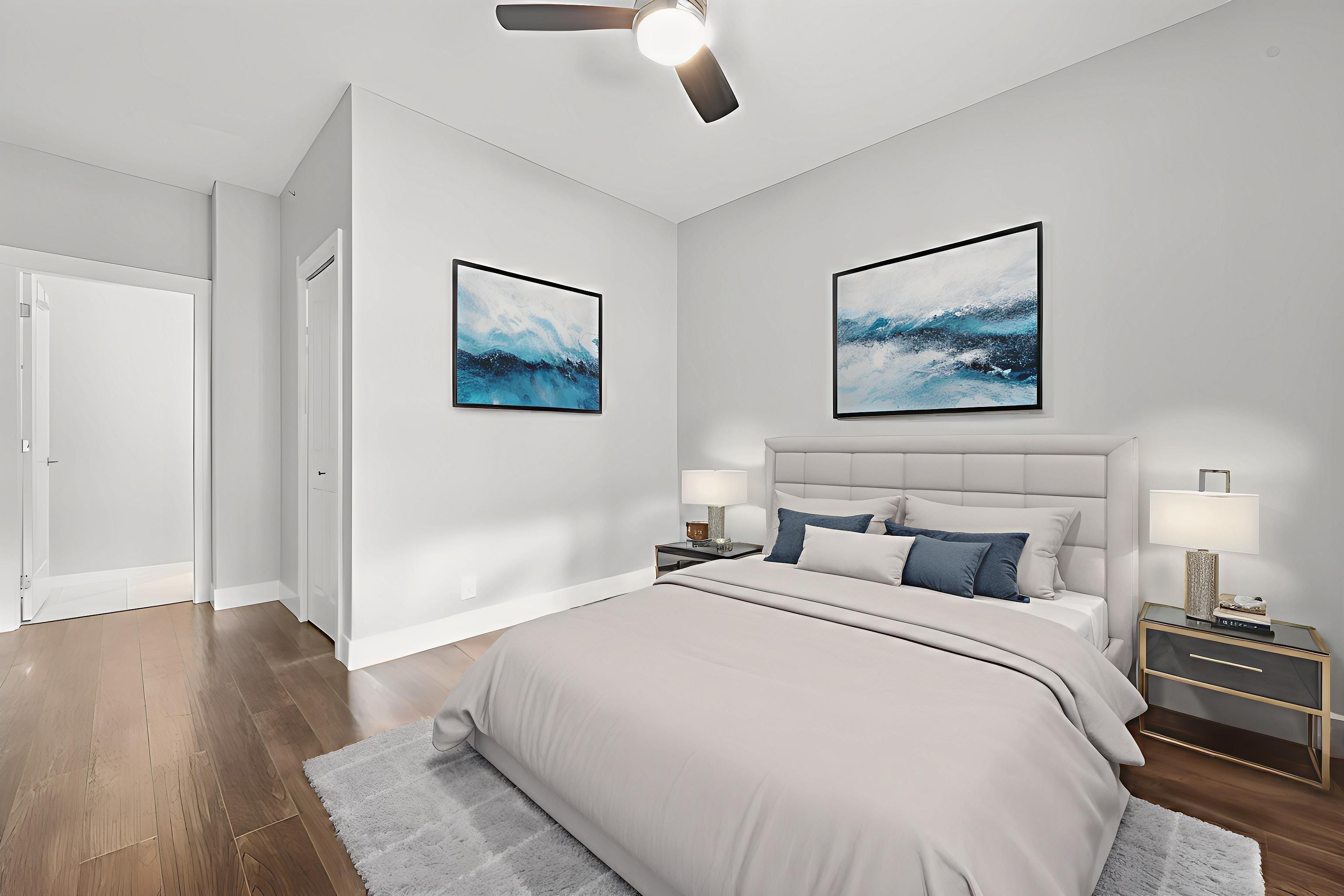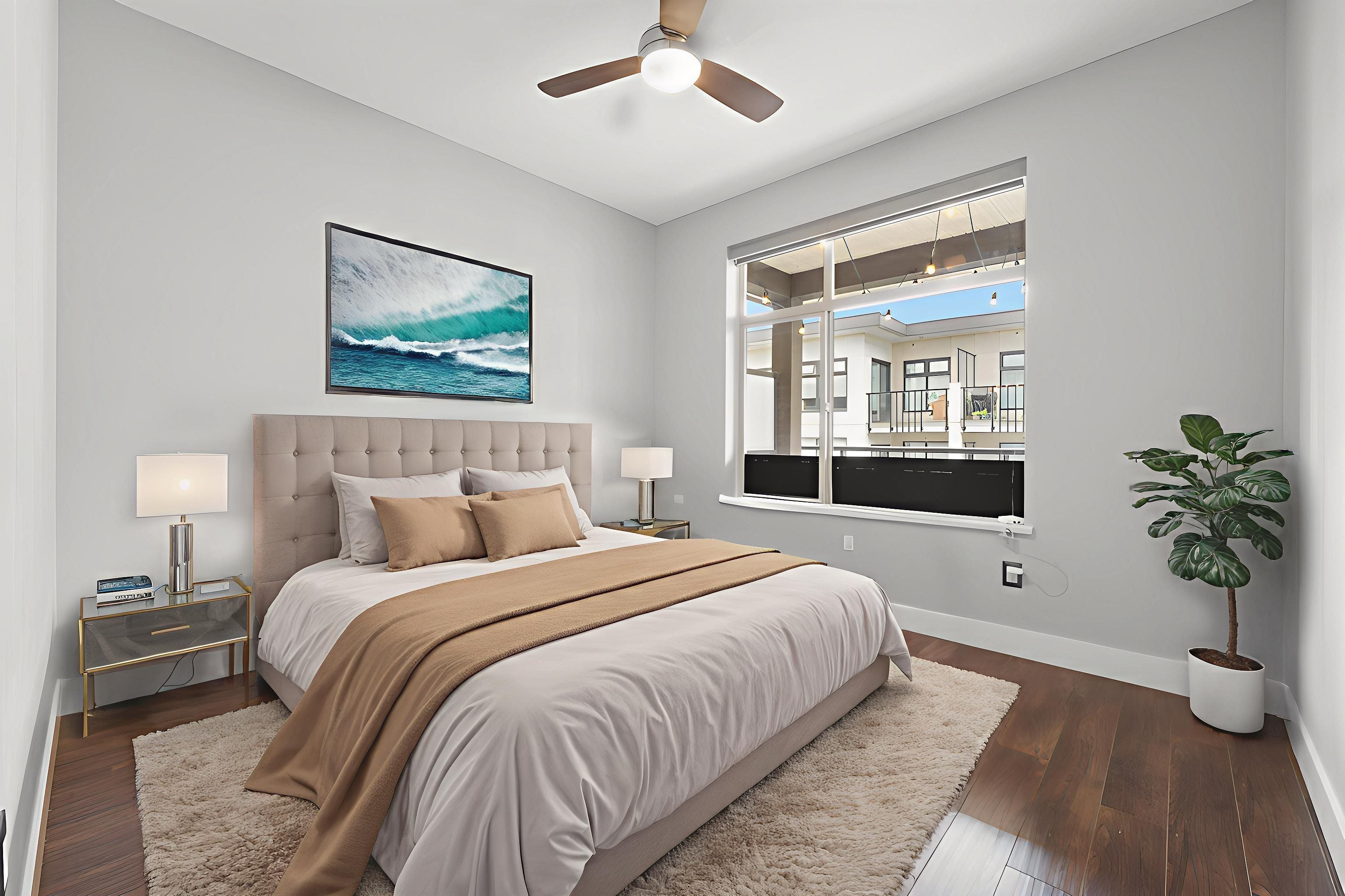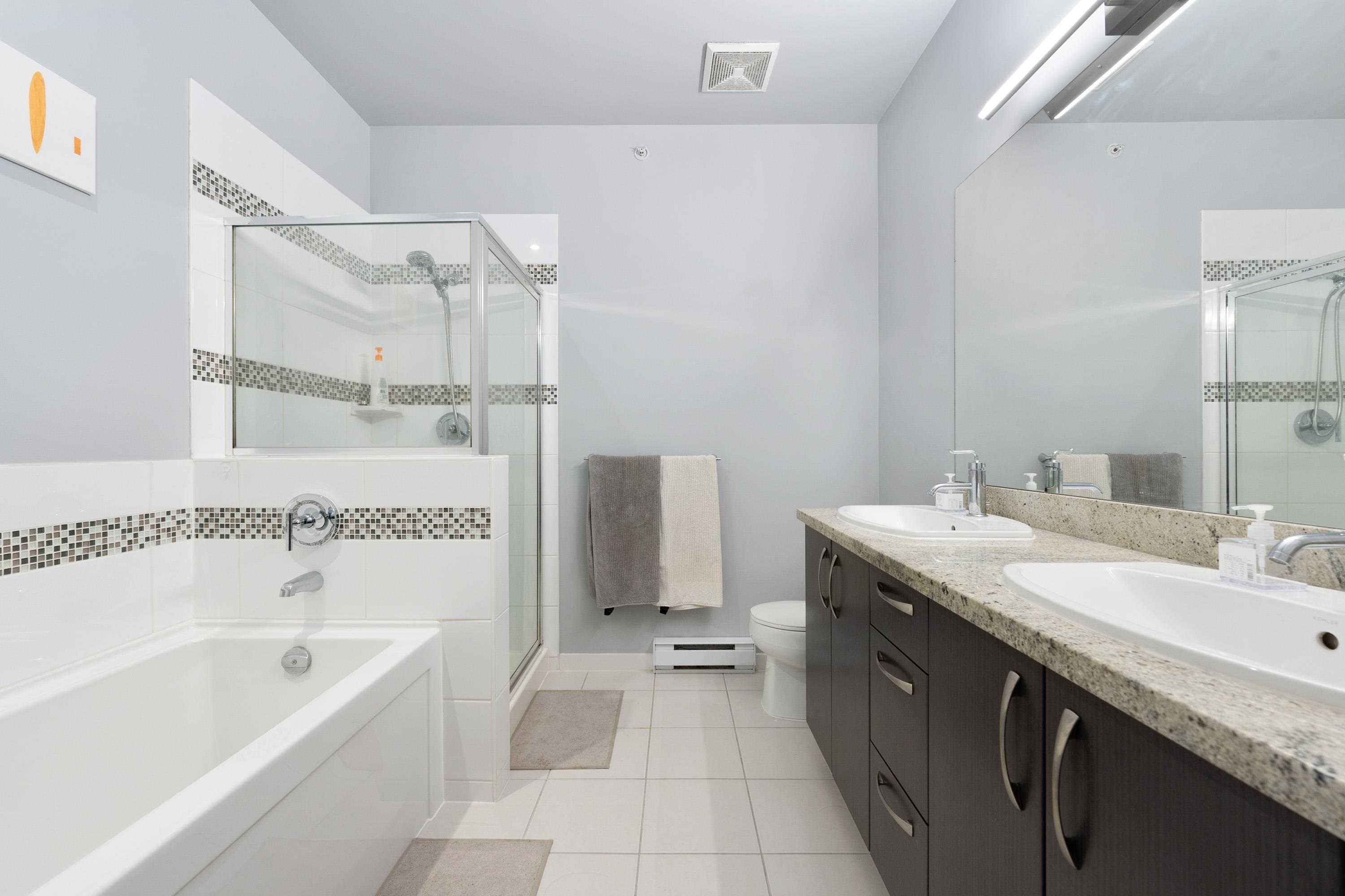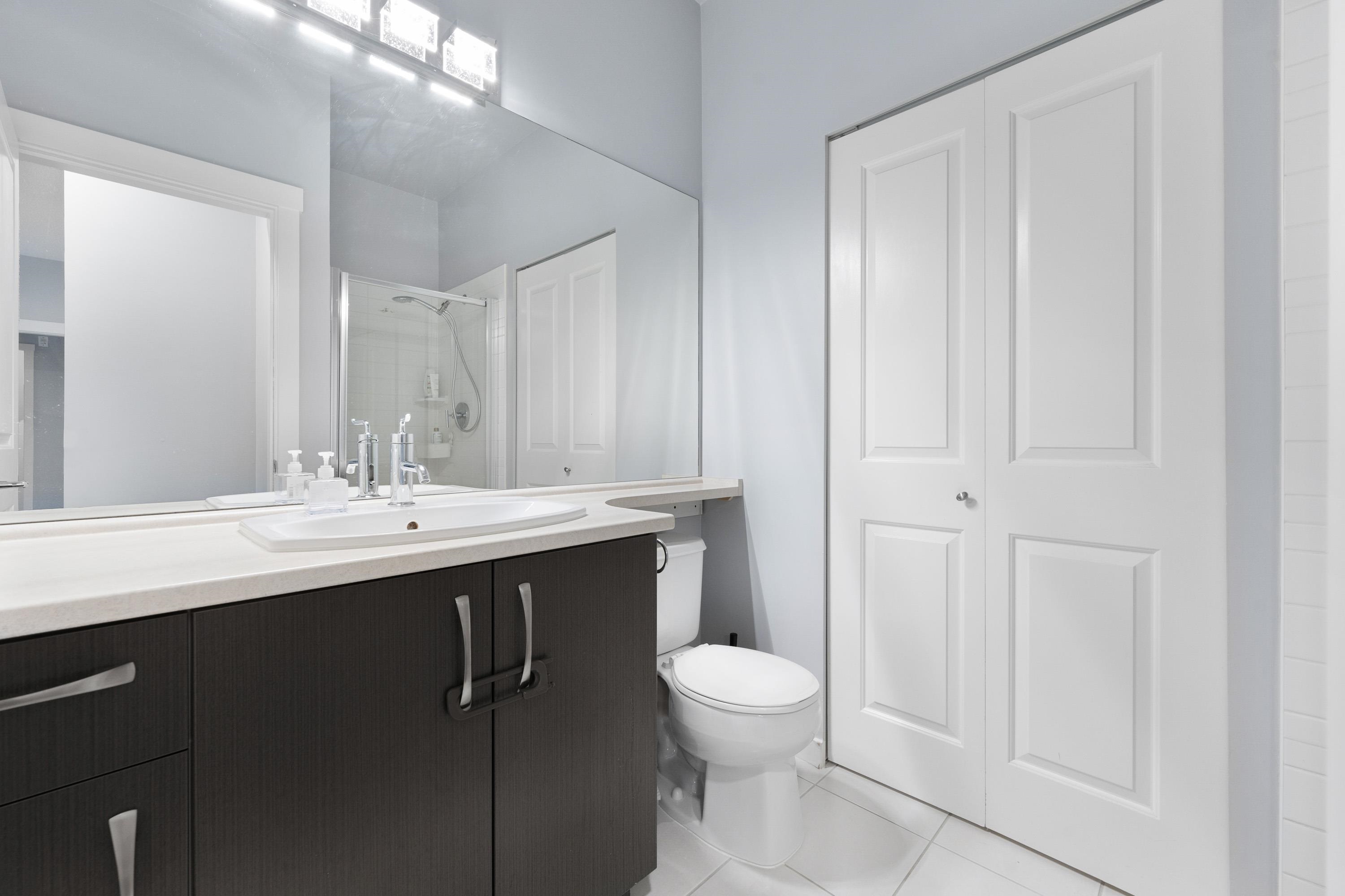 Well priced, Top-floor 2-bedroom, 2-bath condo with 2 parking stalls, soaring 10.5 ft ceilings, and a bright, spacious layout with bedrooms on opposite sides for added privacy. Features include a primary suite with walk-in closet and 5-piece ensuite, modern LED lighting with fan/light combos, roller shades, and blackout blinds. Conveniently located steps to Walmart, banks, restaurants, and just minutes to Richmond's top shopping and community centers-this rare find won't last! Open House September 6 Sat 2-4