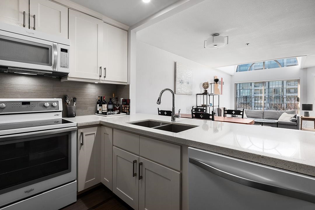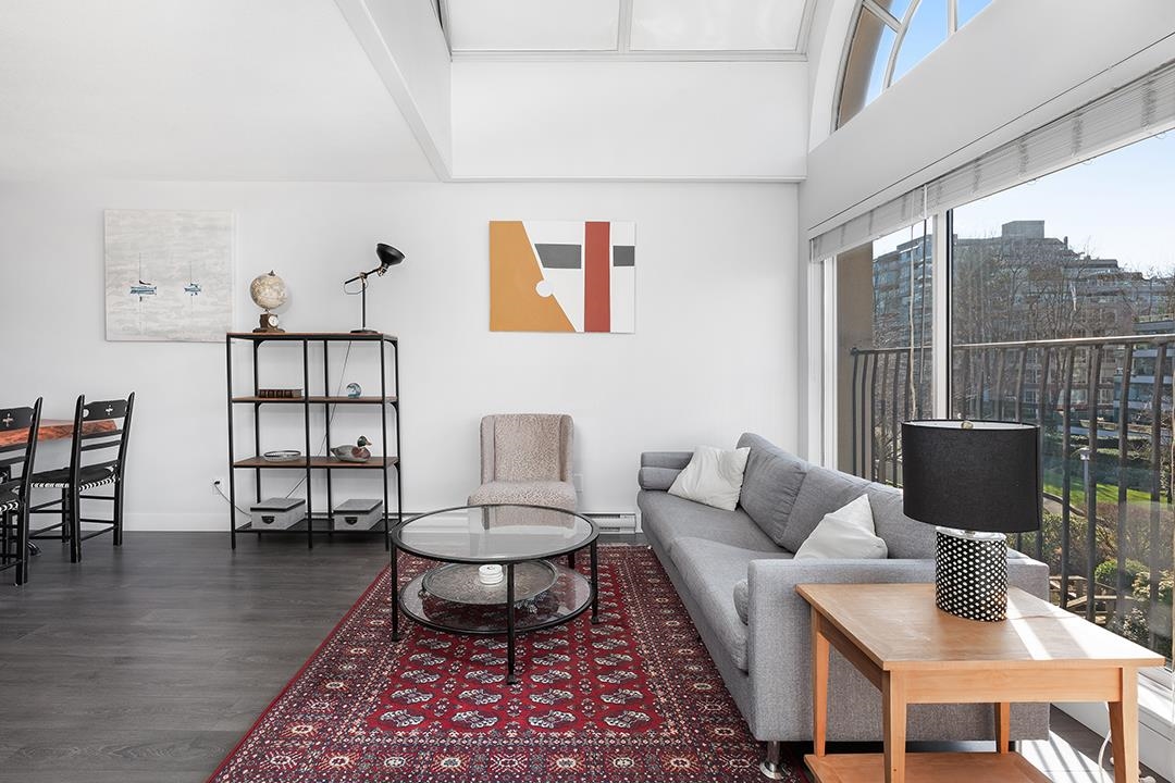 Arguably the best 1-bedroom suite in the building! This extensively renovated penthouse at Henley Court offers premium positioning with breathtaking views of False Creek, the marina, downtown skyline & lush gardens. Featuring 736 sq ft of bright, open living space with vaulted ceilings, beautiful skylights, gas fireplace & open-concept kitchen. The spacious living area flows to a private 65 sq ft balcony—perfect for relaxing waterfront mornings. Located directly on the Seawall, enjoy the best of Olympic Vil...