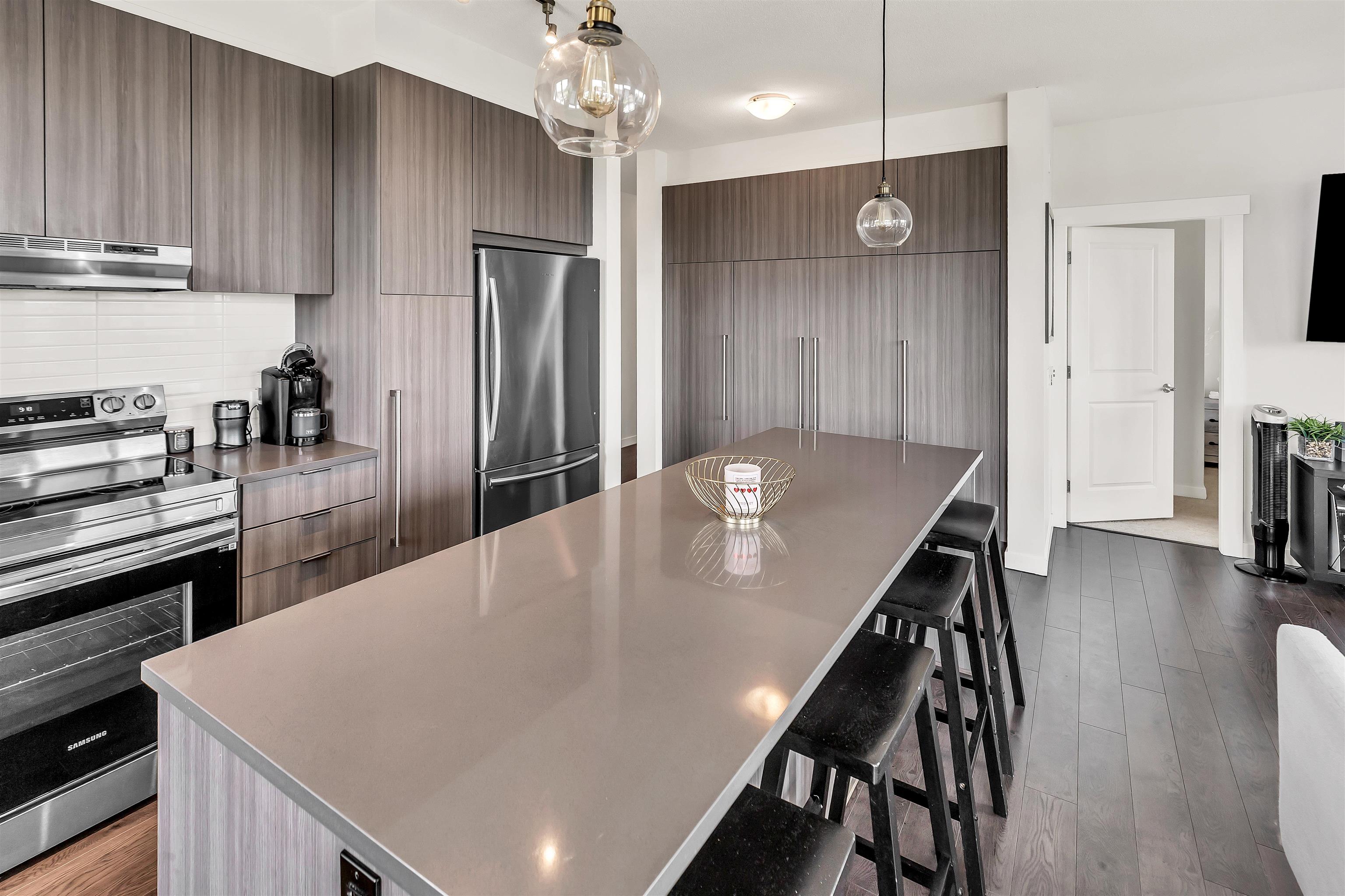 TOP FLOOR CORNER UNIT at ELMSTONE by Polygon! This is one of the largest 2-bedroom, 2-bathroom floorplan available on the top floor with over 1000sqft of living space—featuring soaring 10-foot ceilings and an oversized private balcony. The primary bedroom offers a spacious walk-in closet and a luxurious ensuite with double sinks and a large walk-in shower. Enjoy a bright, open-concept kitchen with a generous island and sleek stainless steel appliances. Elmstone residents enjoy access to a 9,000 sq ft privat...