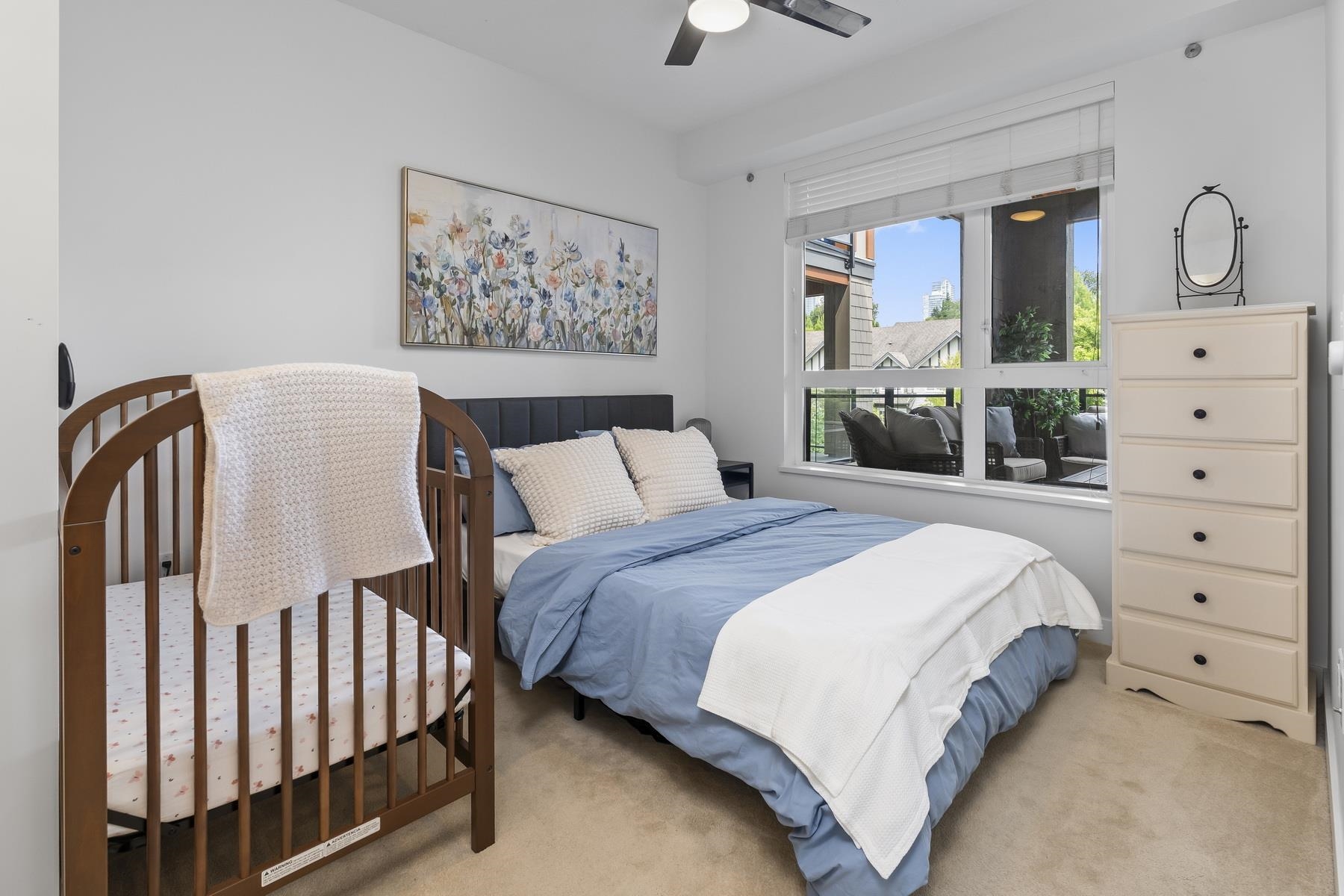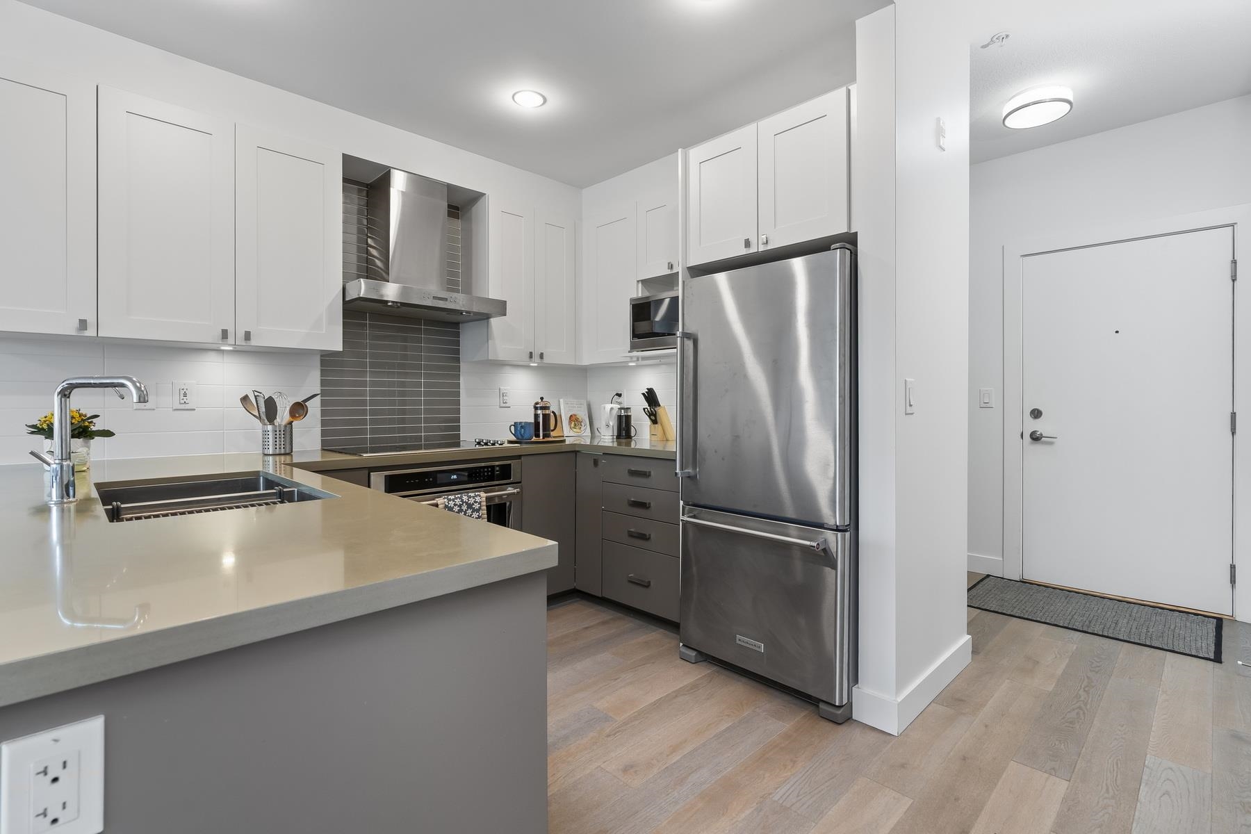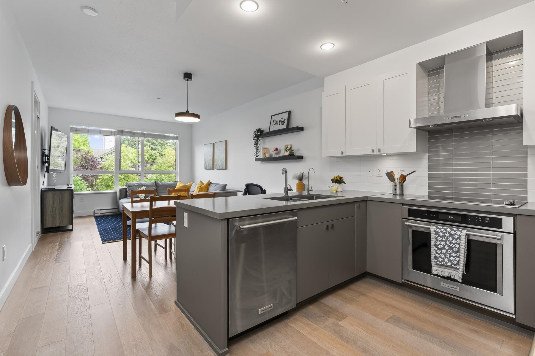 Built by Ledingham McAllister. Lots of privacy, on a quiet street, easy walk to the Skytrain, Lougheed Mall, Cameron Park and Recreation Center (under construction) and Bell Park. 10 min. drive to SFU. This stylish 1-bedroom + den is a spacious 665 sq. ft. home plus 73 sq. ft. covered balcony totalling 738 sq. ft. of living. Enjoy a sleek kitchen with quartz counters & stainless steel appliances, an open layout & versatile den perfect for home office or creative space, a modern bathroom with a soaker tub...