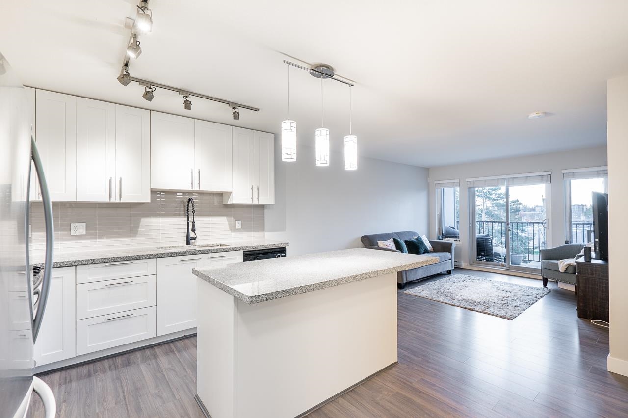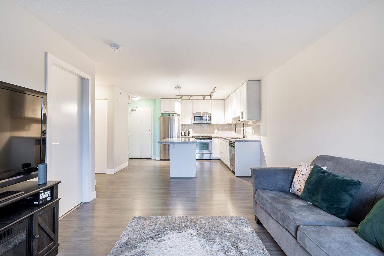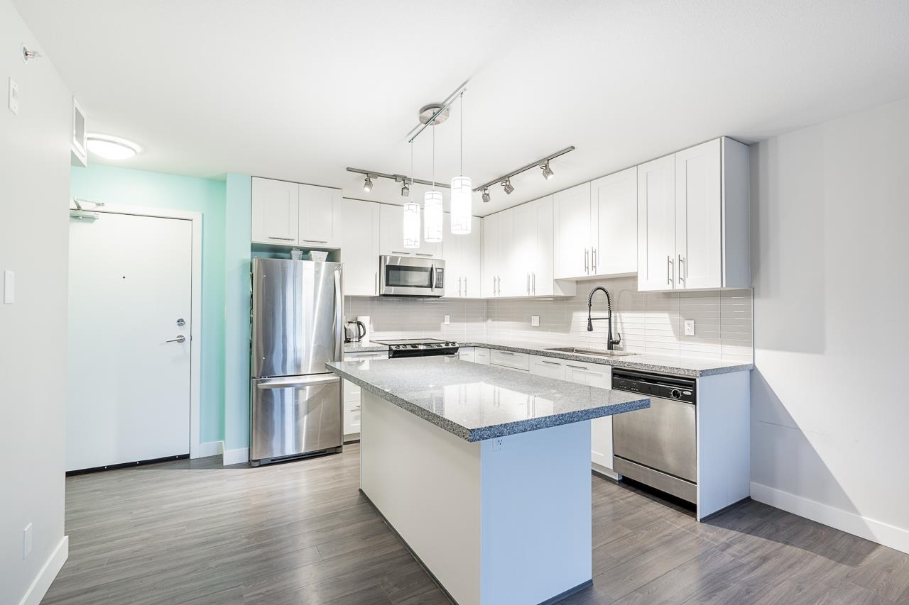 EDGE ON EDGE - Immaculate South-East facing, bright 4th floor 1 BED+PLUS DEN /1 Bath suite in the popular Edge on Edge built by Maclean Homes! Open concept floor plan features 8' ceilings, granite counters, undermount sinks, kitchen w/shaker cabinets & S/S appliances. Large master with walkin closet & cheater ensuite. Front loading in-suite laundry & large den/office space. Covered deck with street parking all around, secure underground parking, 2 pets & rentals allowed! Steps to Shopping, Transit, Restaura...