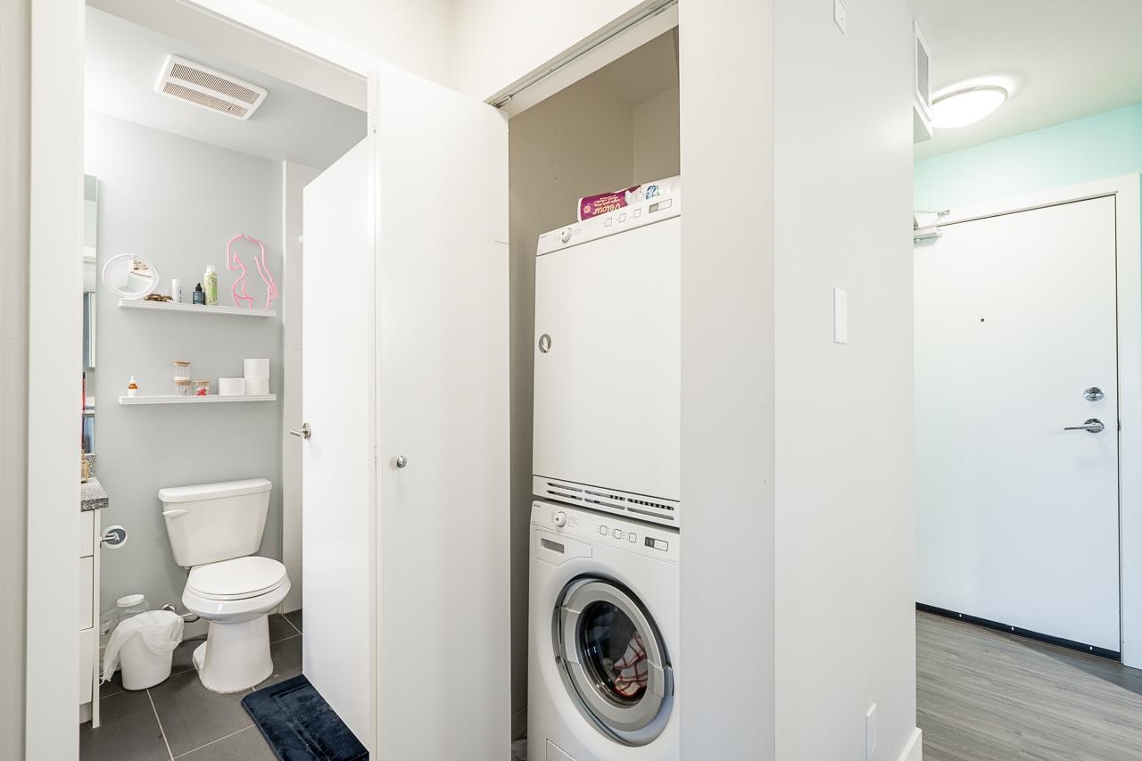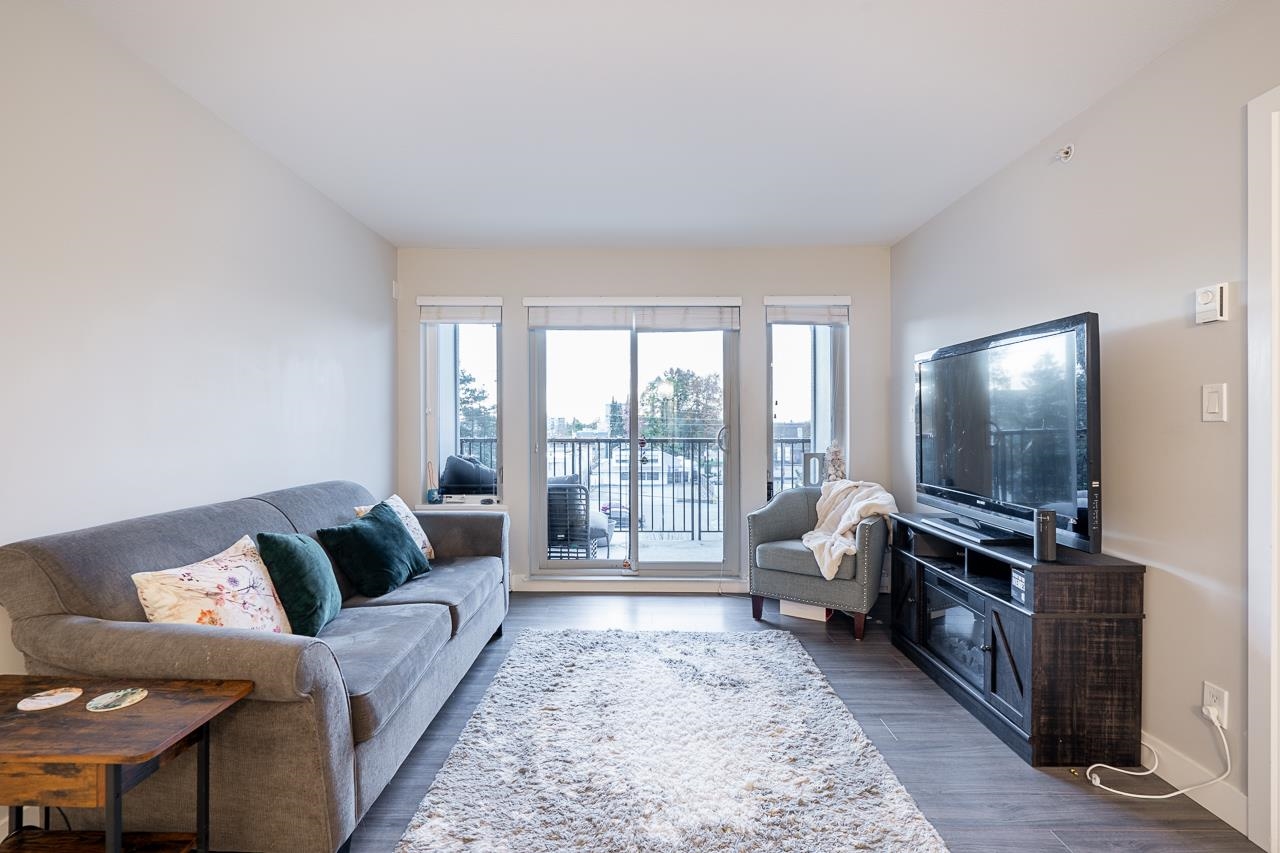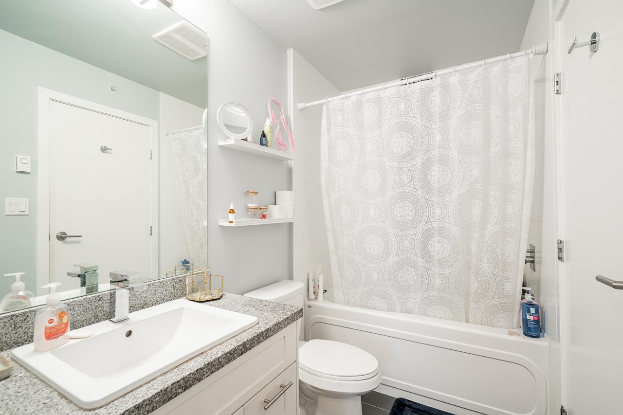 EDGE ON EDGE - Immaculate South-East facing, bright 4th floor 1 BED+PLUS DEN /1 Bath suite in the popular Edge on Edge built by Maclean Homes! Open concept floor plan features 8' ceilings, granite counters, undermount sinks, kitchen w/shaker cabinets & S/S appliances. Large master with walkin closet & cheater ensuite. Front loading in-suite laundry & large den/office space. Covered deck with street parking all around, secure underground parking, 2 pets & rentals allowed! Steps to Shopping, Transit, Restaura...
