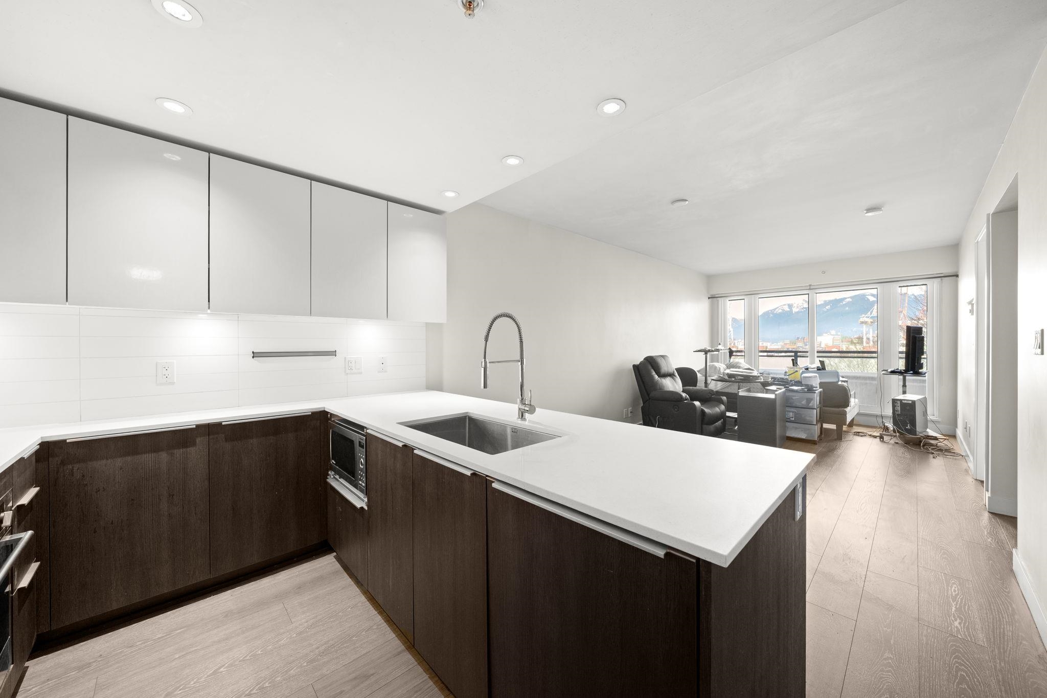 This top-floor, 1 bdrm + den at Boheme is perfectly placed where Commercial Dr & Hastings-Sunrise meet. An open layout w/ modern kitchen including integrated appliances, gas cooktop, quartz countertop, and a flexible den ideal for a home office or extra storage. Boheme residents enjoy access to a well-equipped fitness centre & residents’ lounge. Immerse yourself in this lively neighbourhood - steps from Earnest Ice Cream, Yolks, No Frills, & transit. 1 underground parking & 1 locker included. Pets and rent...