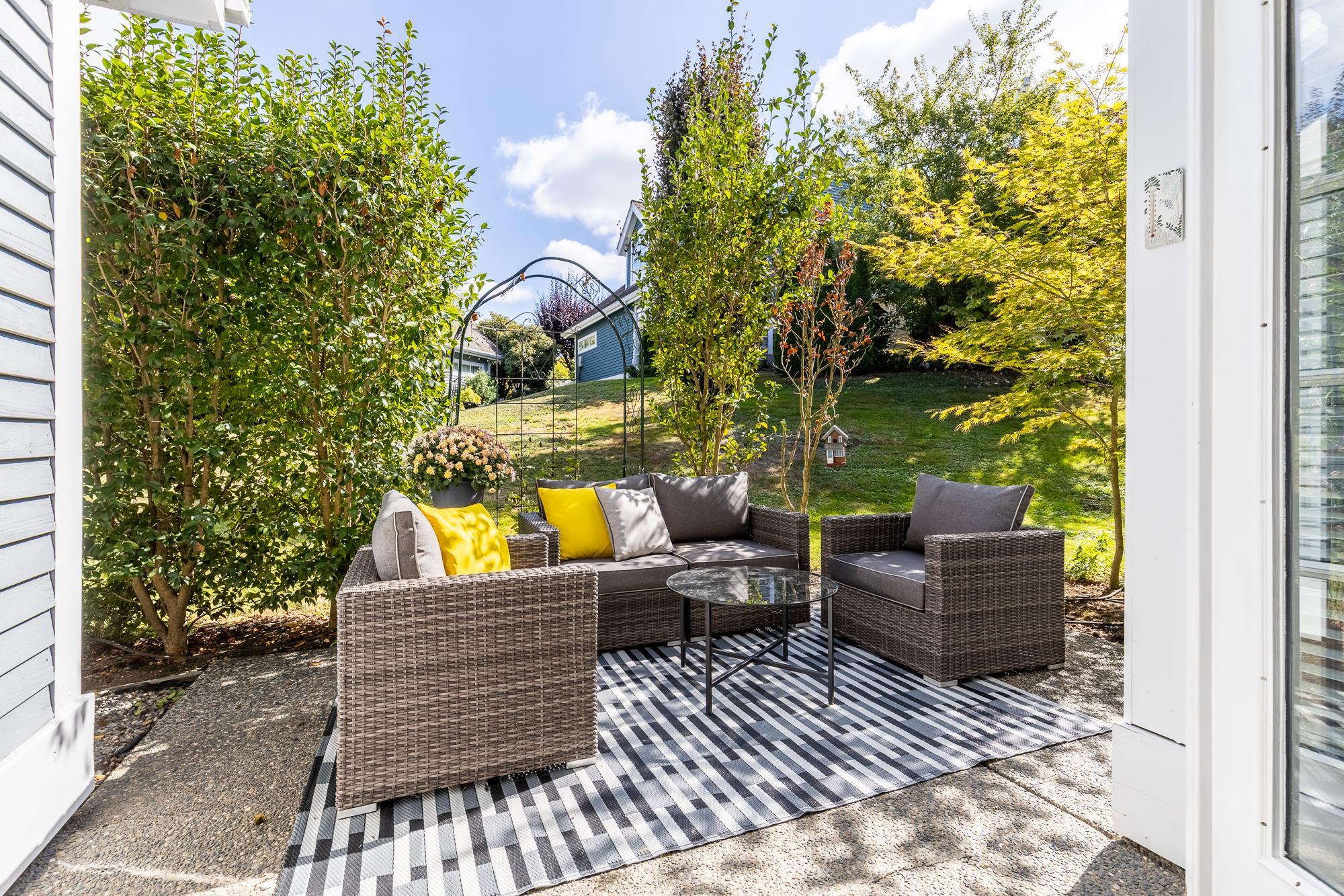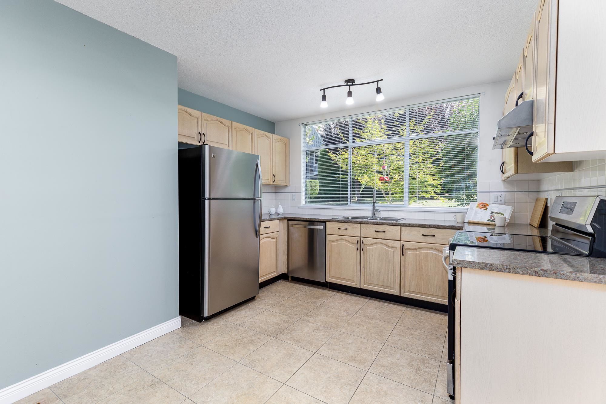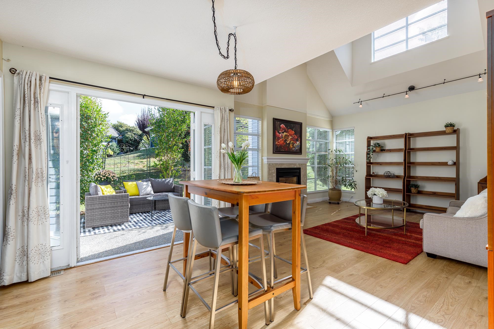 Award-Winning Waterford Ridge End Unit! Welcome to one of Langley’s best-managed complexes. This bright and spacious townhome features soaring vaulted ceilings up to 20 feet, an open-concept layout, a cozy gas fireplace, and large windows that flood the space with natural light. French doors off the dining area open to a private patio backing onto green space — perfect for relaxing or entertaining. The kitchen boasts a generous layout with an oversized window overlooking the greenbelt. You’ll love the th...