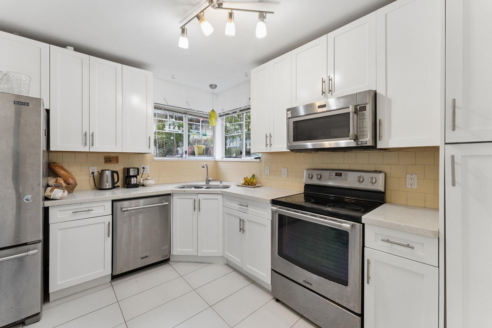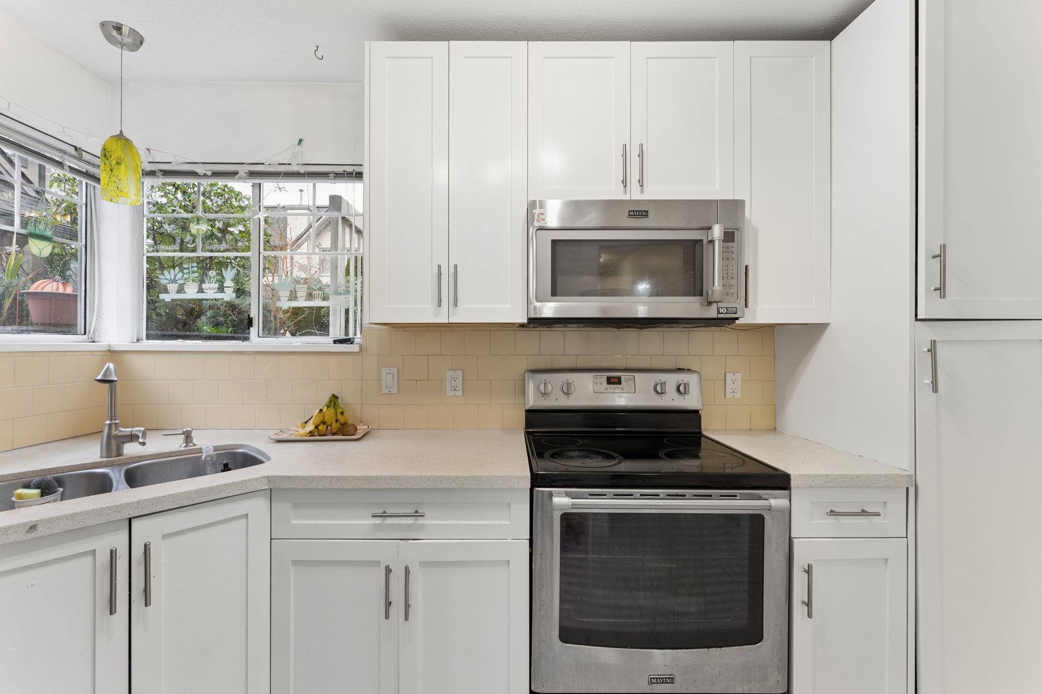 Spacious corner 2-bed, 2-bath townhome in the desirable Killarney neighbourhood, steps to Burnaby’s Central Park and minutes to Collingwood and Champlain Heights. Located in La Frontenac, a well-maintained gated complex with a proactive strata and welcoming community. This meticulously cared-for home features a generous kitchen, open living and dining area, and a large primary suite with space for a king-sized bed. The second bedroom is well-sized, plus a separate laundry room for added convenience. Updates...
