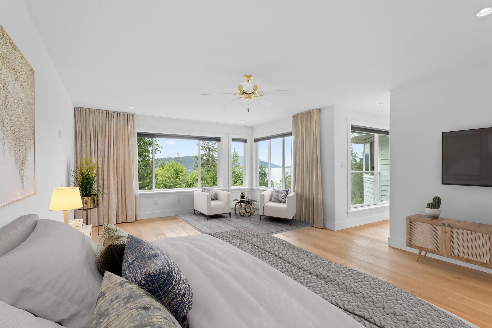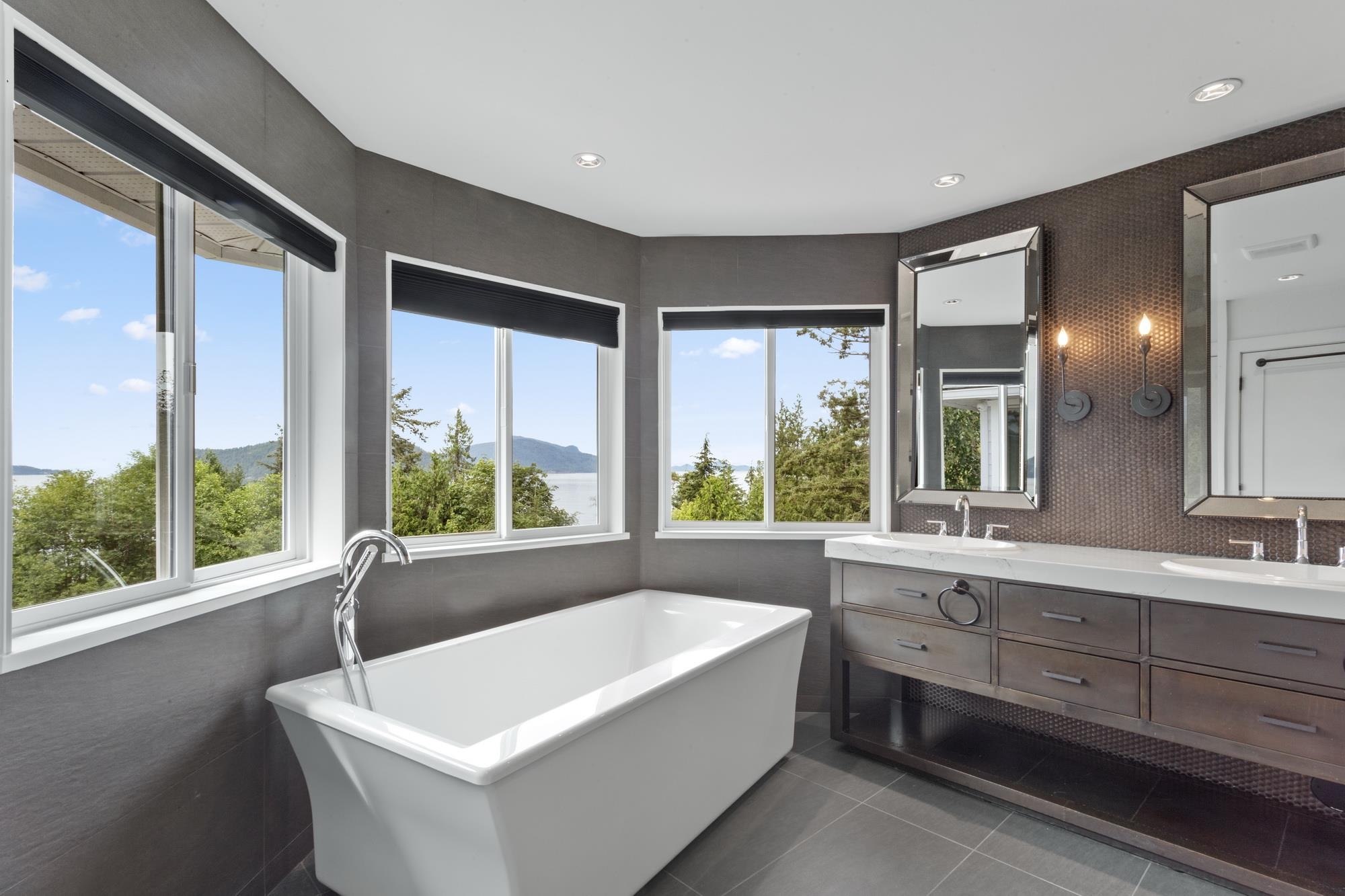LIONS BAY EXECUTIVE HOME. On one of Lions Bays’ best streets this beautifully renovated 2,867 sq ft 4 bed/3 bath ocean-view home is stunning; from the seamless flow of the entertainers' kitchen (upgraded kitchen appliances)/living areas to the primary bedroom/ensuite fit for royalty. New upgrades include heat pump central heating/cooling (dual electricity/gas power), humidity control, hospital-grade air filtration, water filtration, solar panelled power w/ back-up system (9 Tesla "Power Walls"), insulation,...