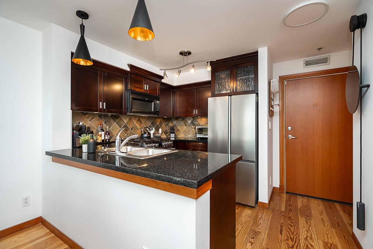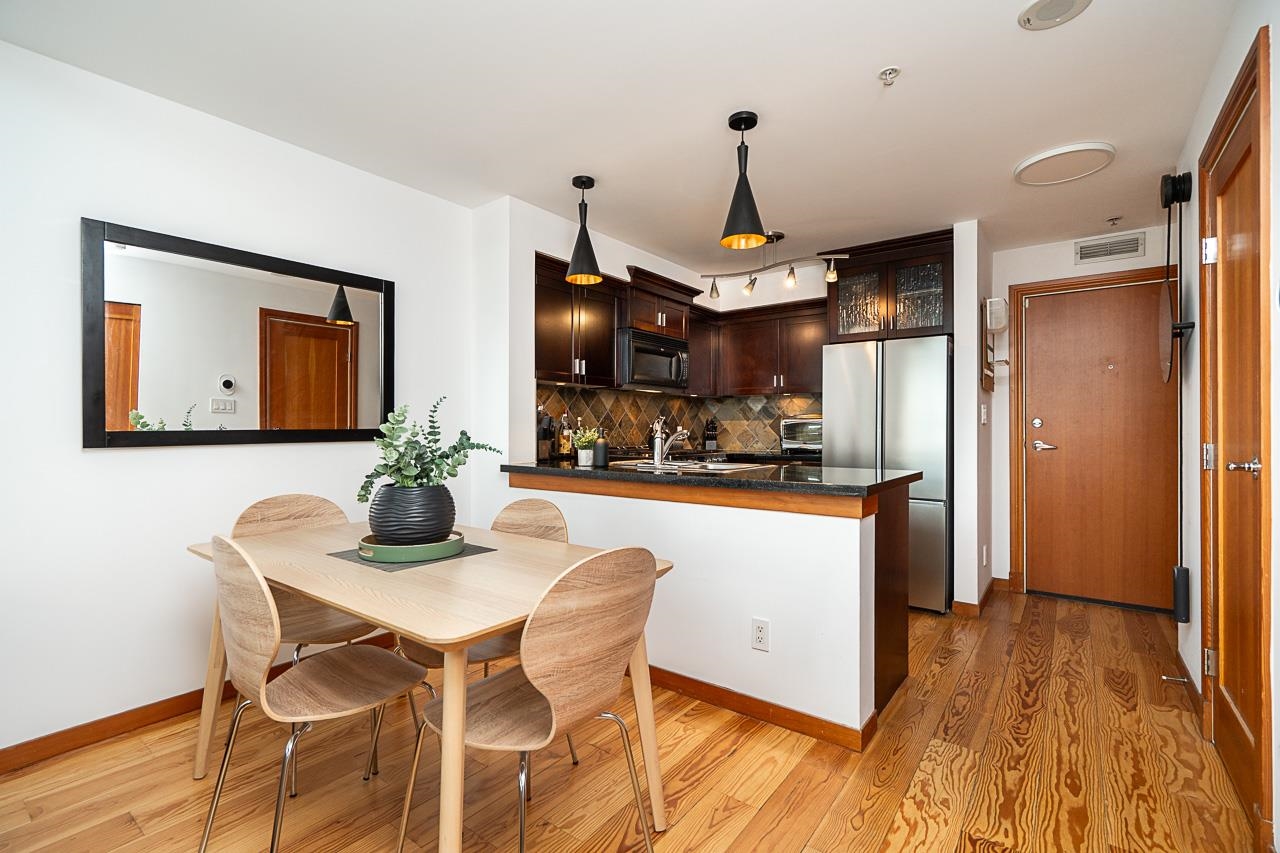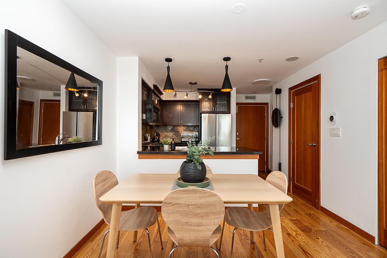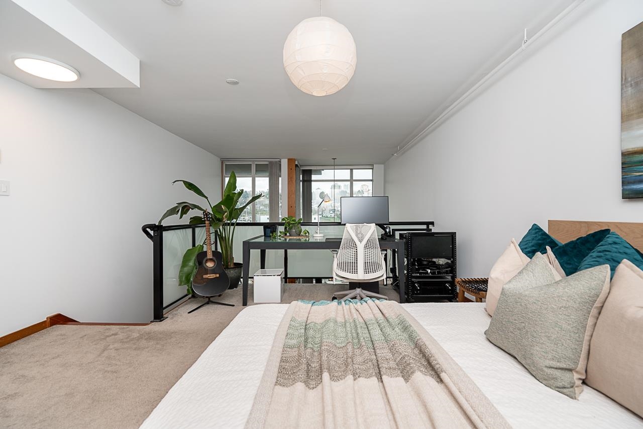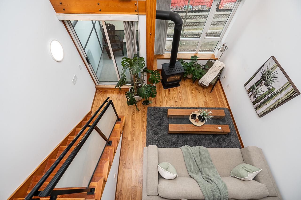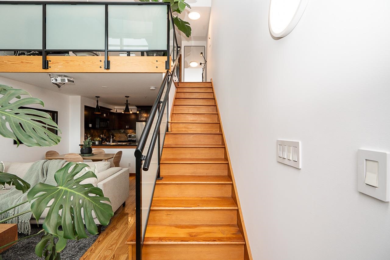 Welcome to Murano Lofts by Aragon Properties, where heritage charm meets modern loft living in a peaceful waterfront community. This bright two-level loft features 16’7” ceilings and expansive windows that fill the home with natural light. The open kitchen offers quartz countertops, a gas range, stainless steel appliances, and ample cabinetry. Upstairs, the spacious loft-style bedroom easily fits a king bed and includes a walk-in closet. Warm fir wood floors and a cozy natural gas fireplace add character. A...