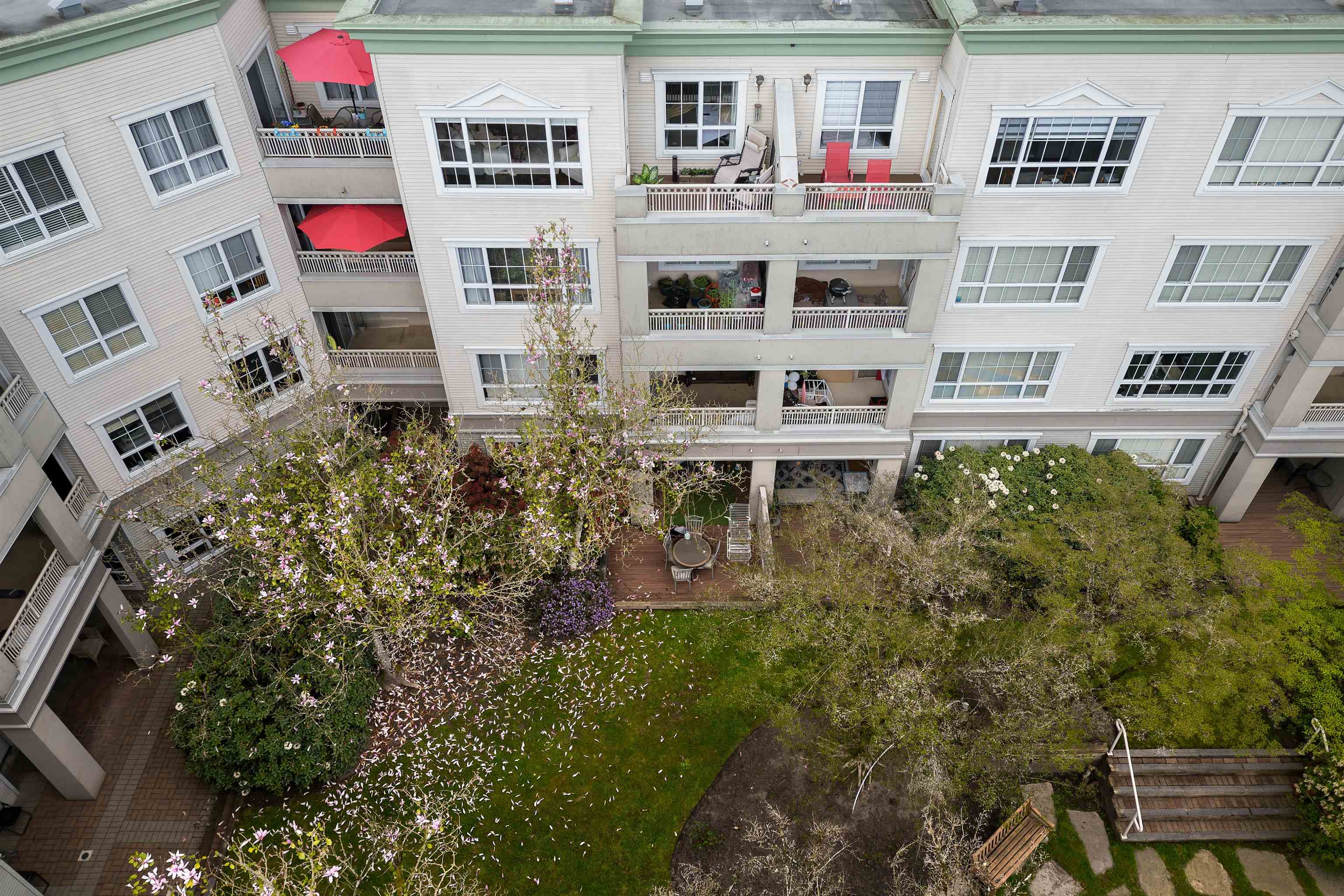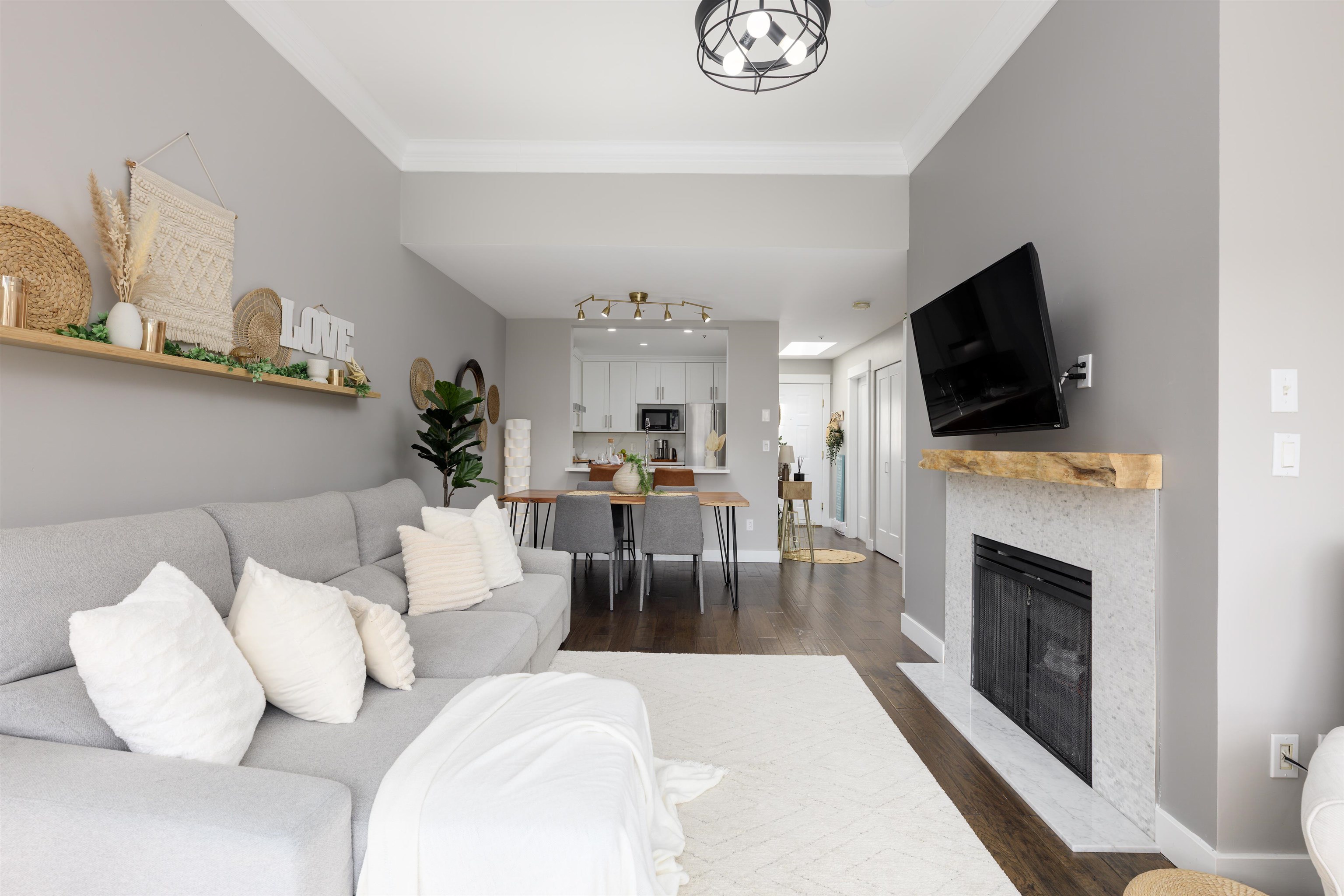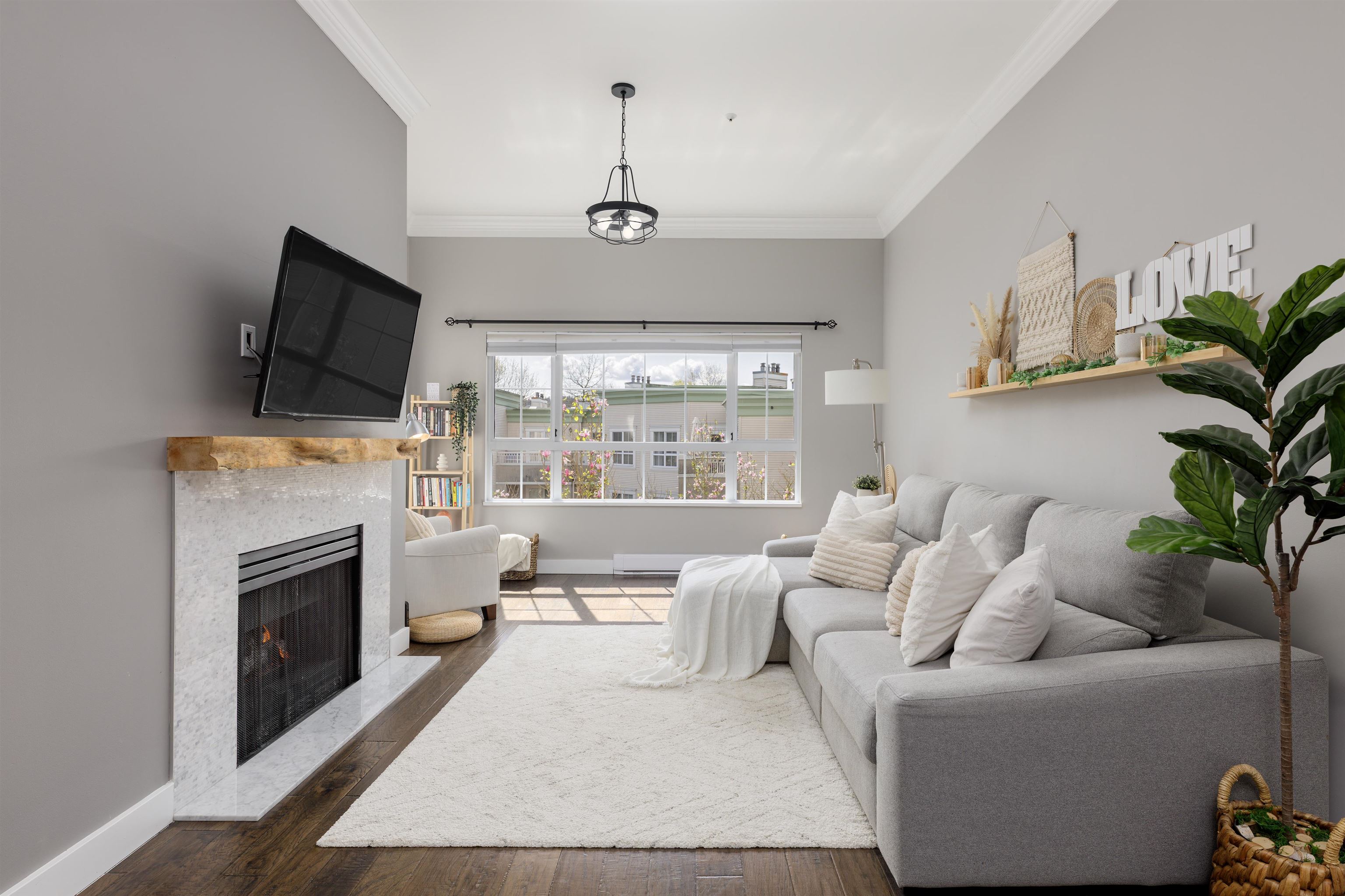 Welcome to this top-floor 1 bed, 1 bath gem in the heart of Coquitlam! Quiet and filled with natural light, this south-facing home features a skylight at the entry, a private patio with garden views, full-size in-suite laundry, cozy gas fireplace, and heated bathroom floors. Thoughtfully renovated with a modern kitchen and stylish updates throughout. The layout flows beautifully, making it perfect for relaxing or entertaining. Just steps to SkyTrain, Douglas College, City Centre Aquatic Complex, Lafarge Lak...
