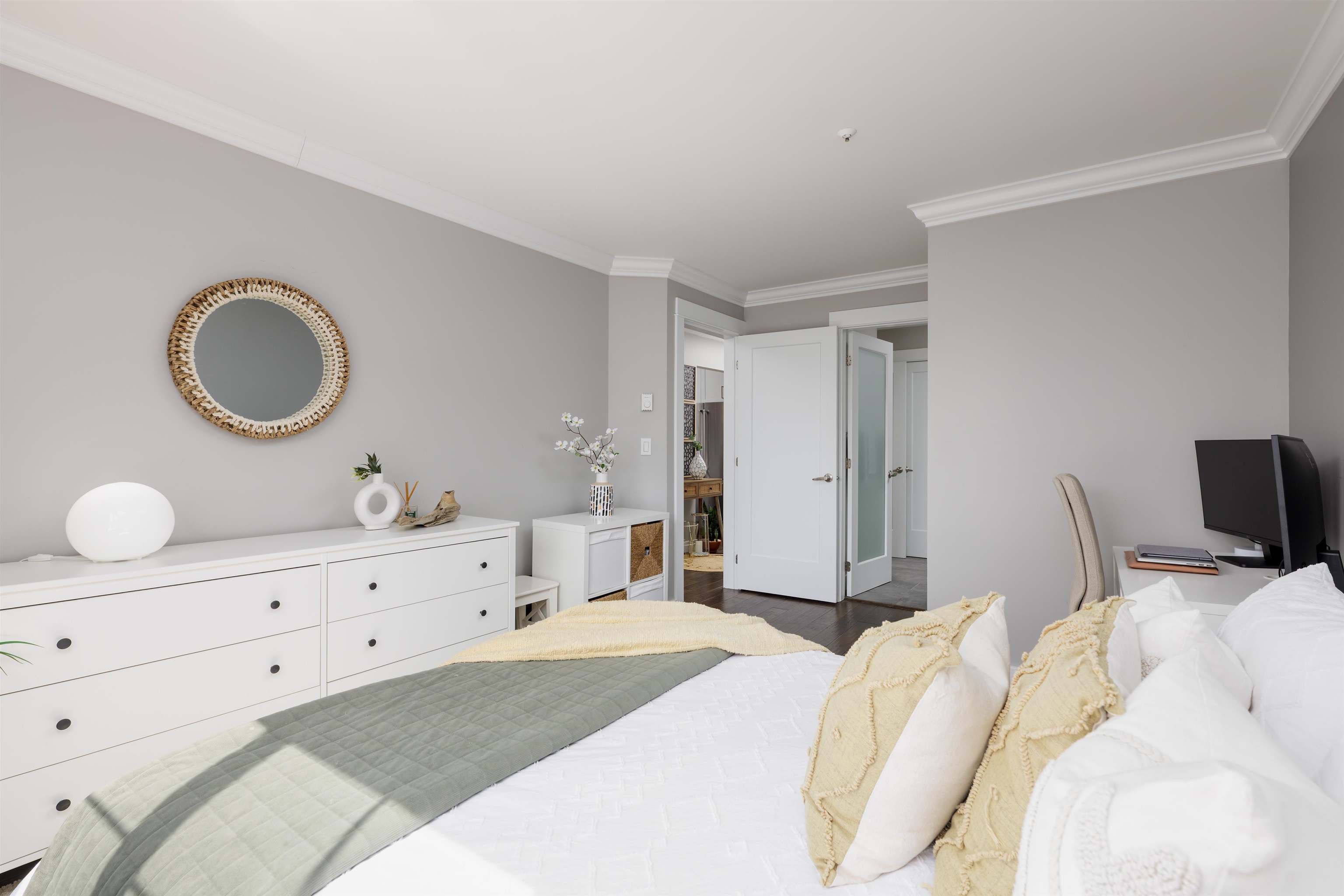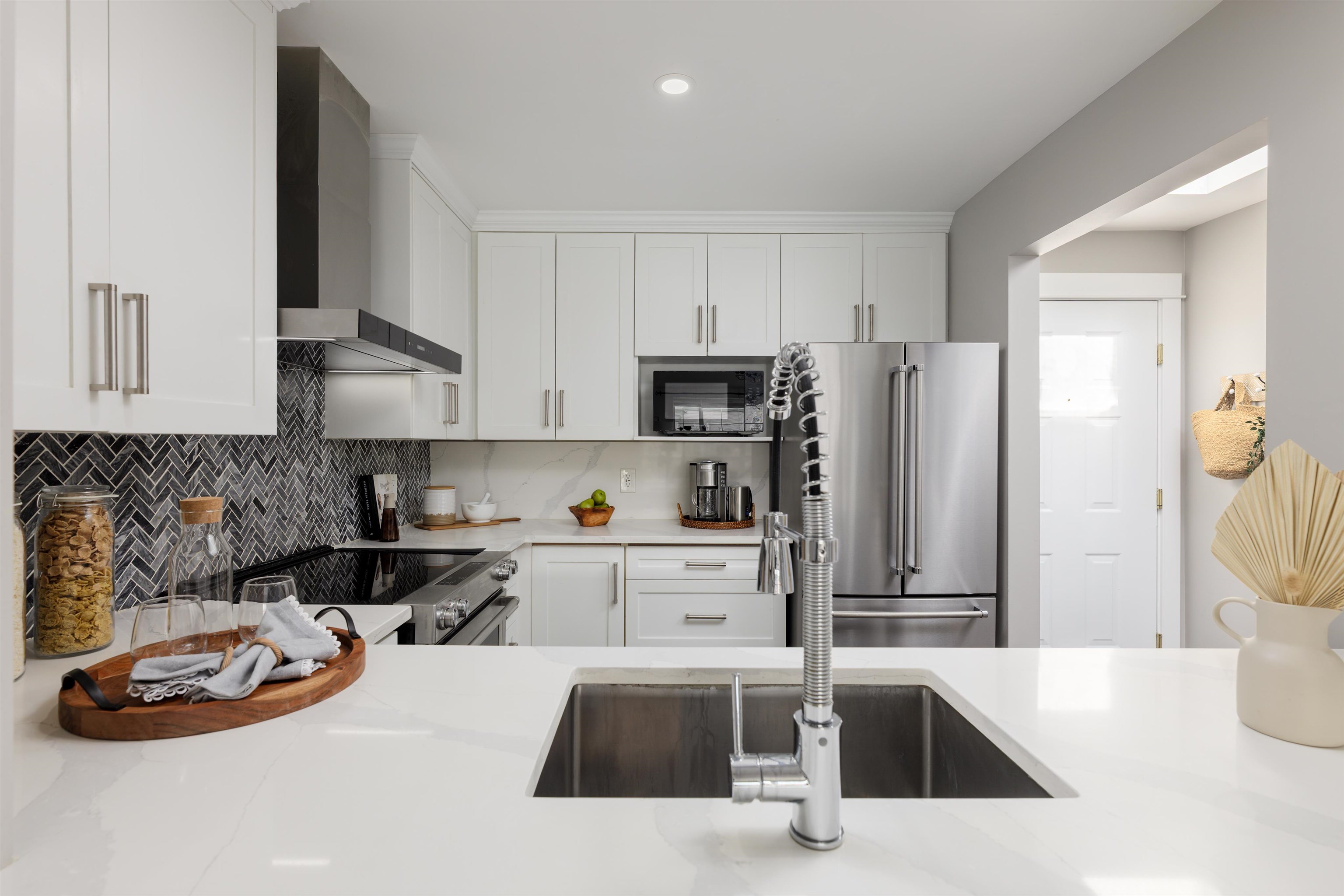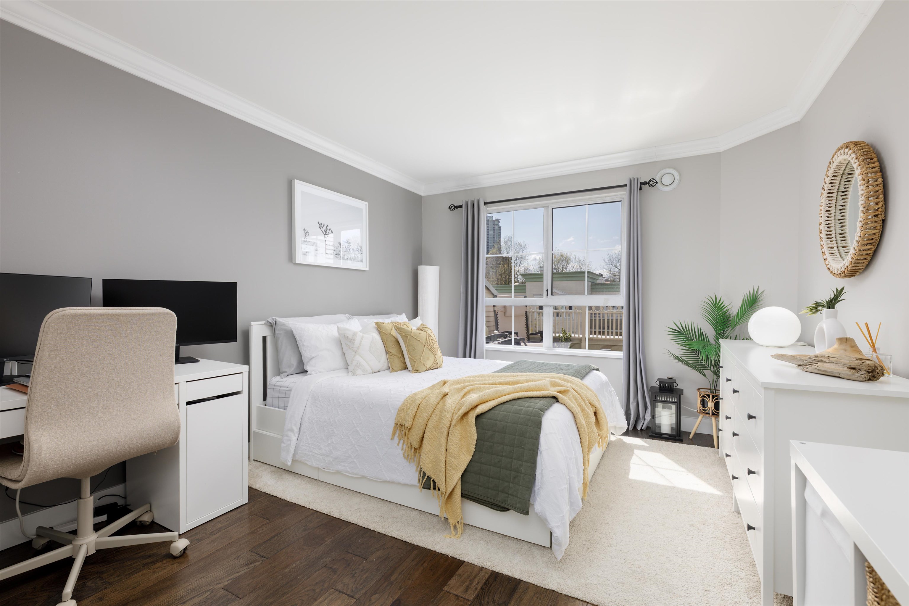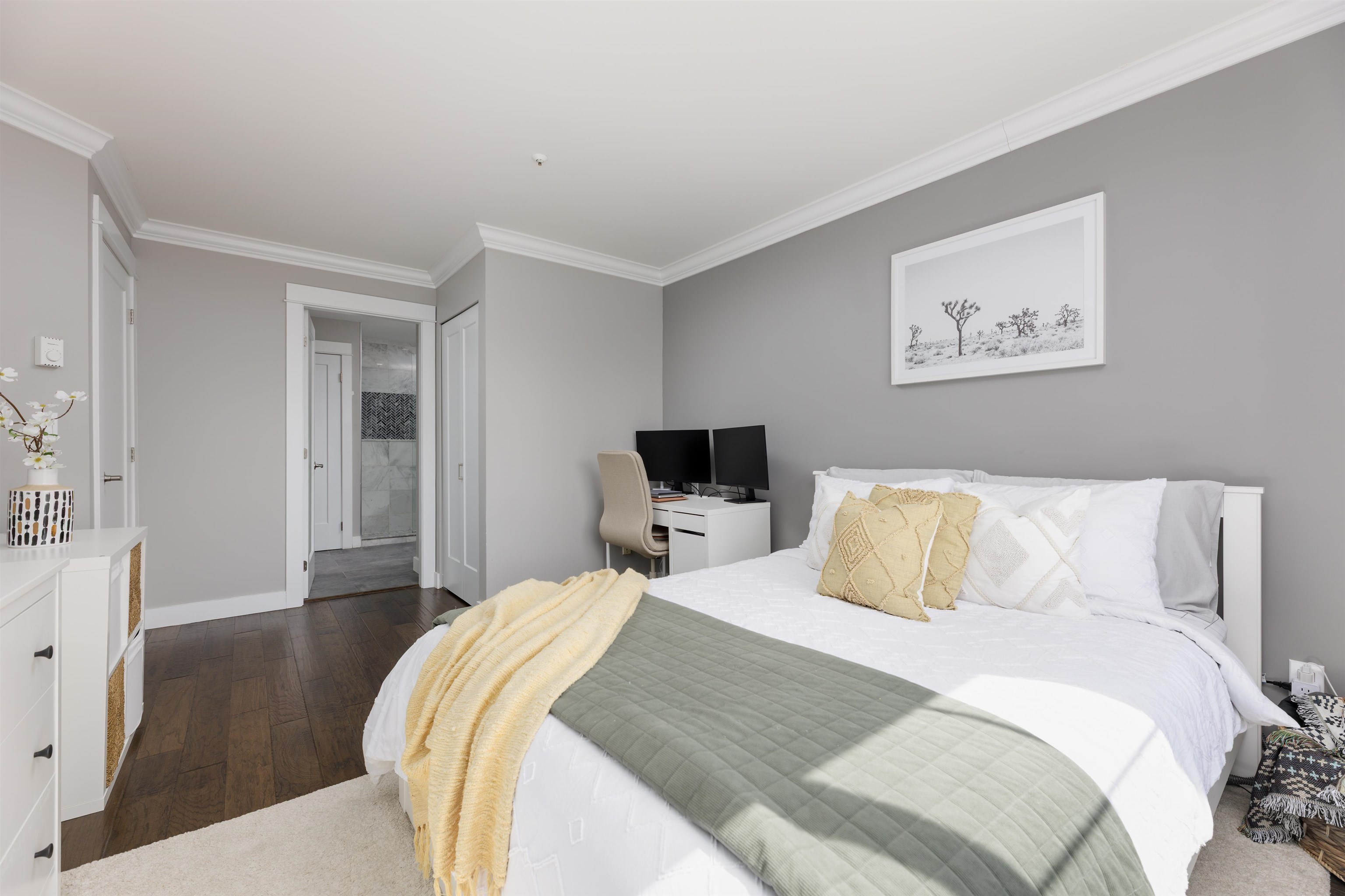 Welcome to this top-floor 1 bed, 1 bath gem in the heart of Coquitlam! Quiet and filled with natural light, this south-facing home features a skylight at the entry, a private patio with garden views, full-size in-suite laundry, cozy gas fireplace, and heated bathroom floors. Thoughtfully renovated with a modern kitchen and stylish updates throughout. The layout flows beautifully, making it perfect for relaxing or entertaining. Just steps to SkyTrain, Douglas College, City Centre Aquatic Complex, Lafarge Lak...