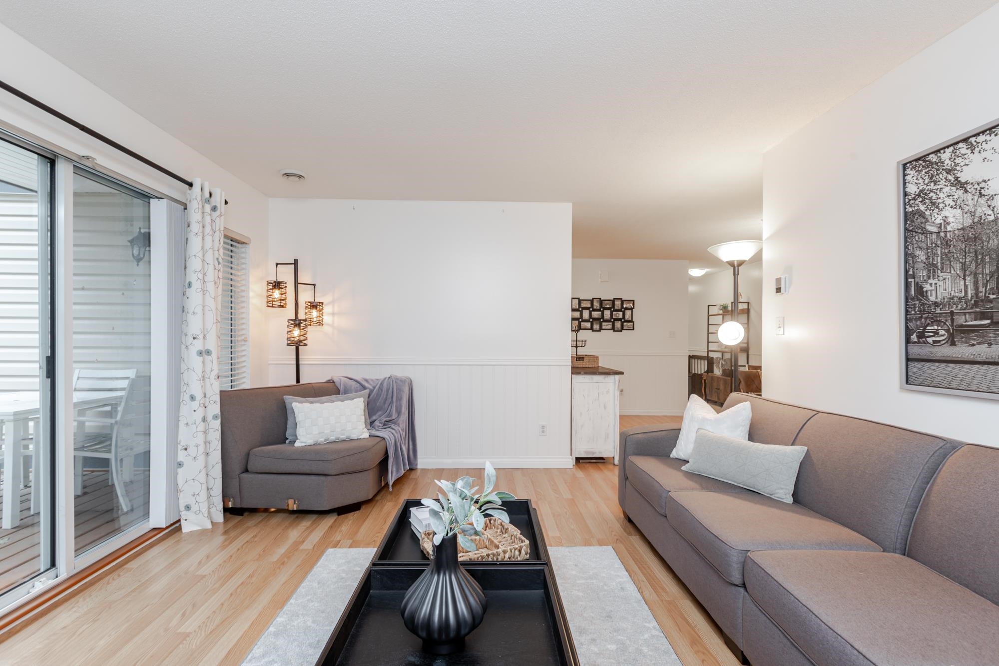This charming ground-level corner townhome in the heart of Langley City offers 2 bedrooms, 2 full bathrooms, & 1151 square feet of living space on one level. Nestled in a quiet, well-maintained complex of 50 units. This home has a private deck off the patio perfect for relaxing or entertaining. Features brand new washer&dryer and hot water tank, newer carpets and paint (2015), upgraded toilets & sinks. Wainscoting in the foyer and dining area adds warmth and character, while the layout offers comfortable fl...
