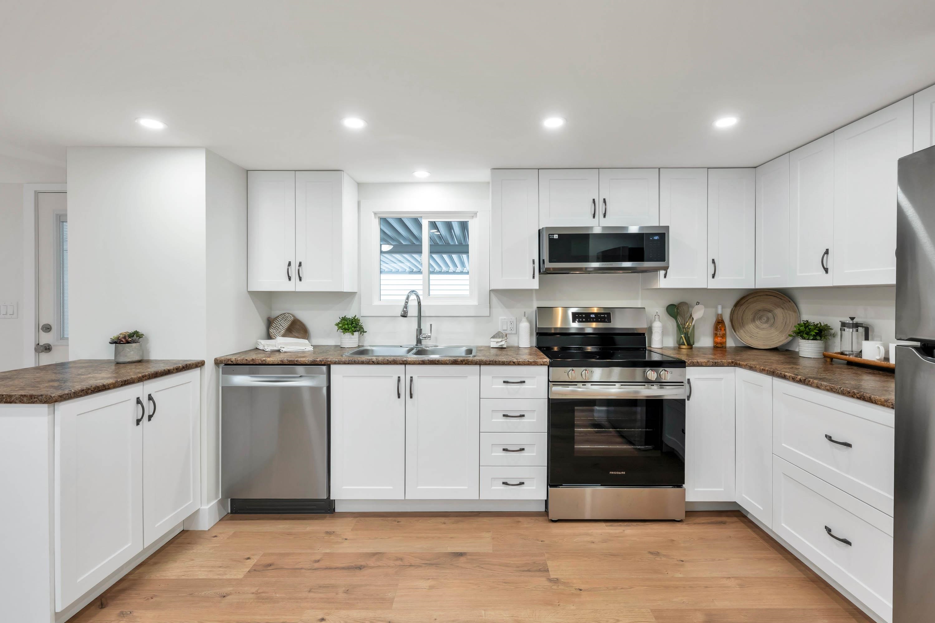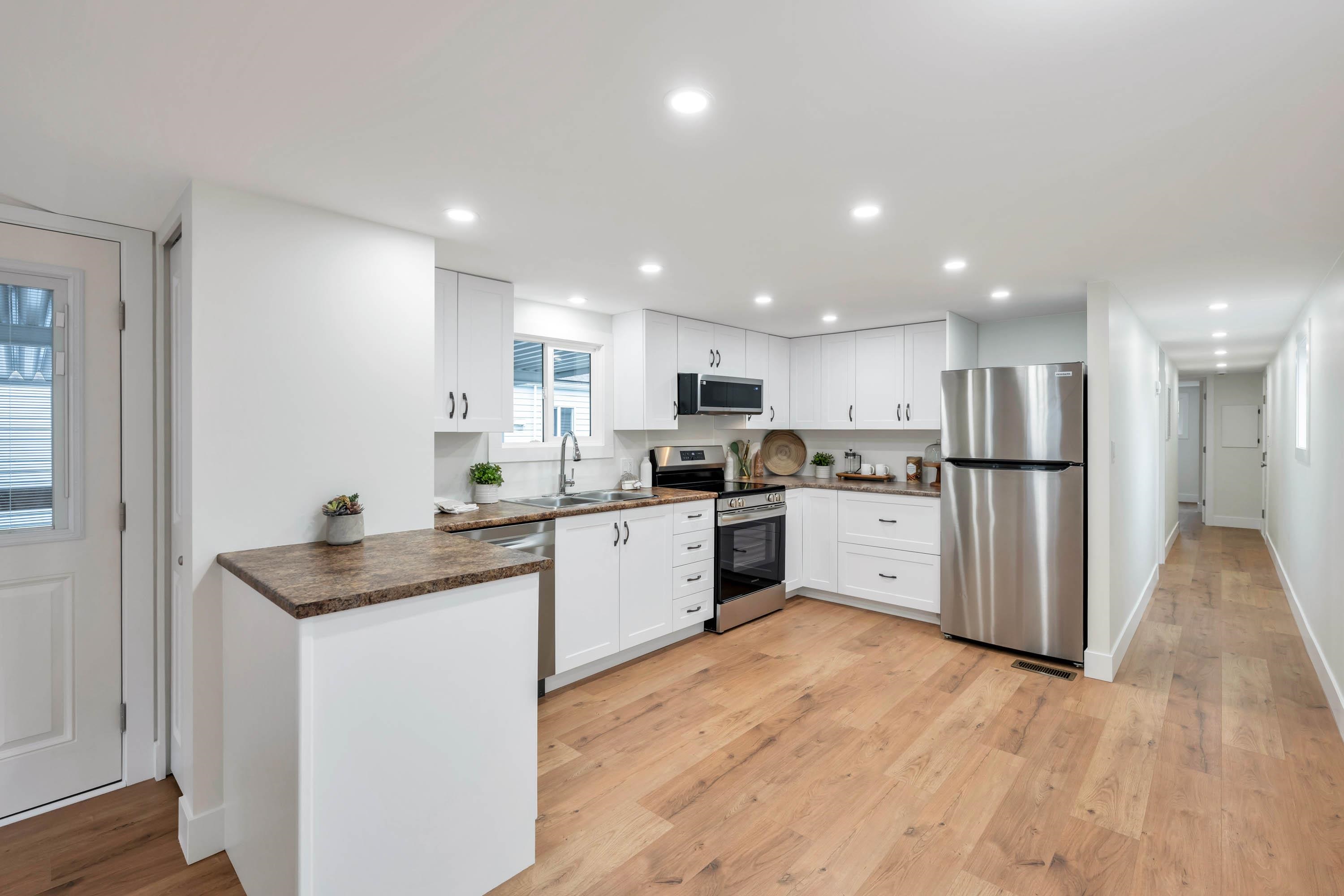 This is the one! Completely renovated from top to bottom this beautiful 2 bdrm/1 bthrm manufactured home is move in ready! Enjoy peace of mind with BRAND NEW; roof, siding, windows, doors, walls, flooring, ceiling, lighting, kitchen, bathroom, laundry, appliances & hot water tank. Step outside to your new front entrance deck & white picket fenced garden perfect for morning coffee or relaxing in the afternoon sun. Forest Green Estates in Walnut Grove is a tranquil 55+ community nestled among mature trees & n...