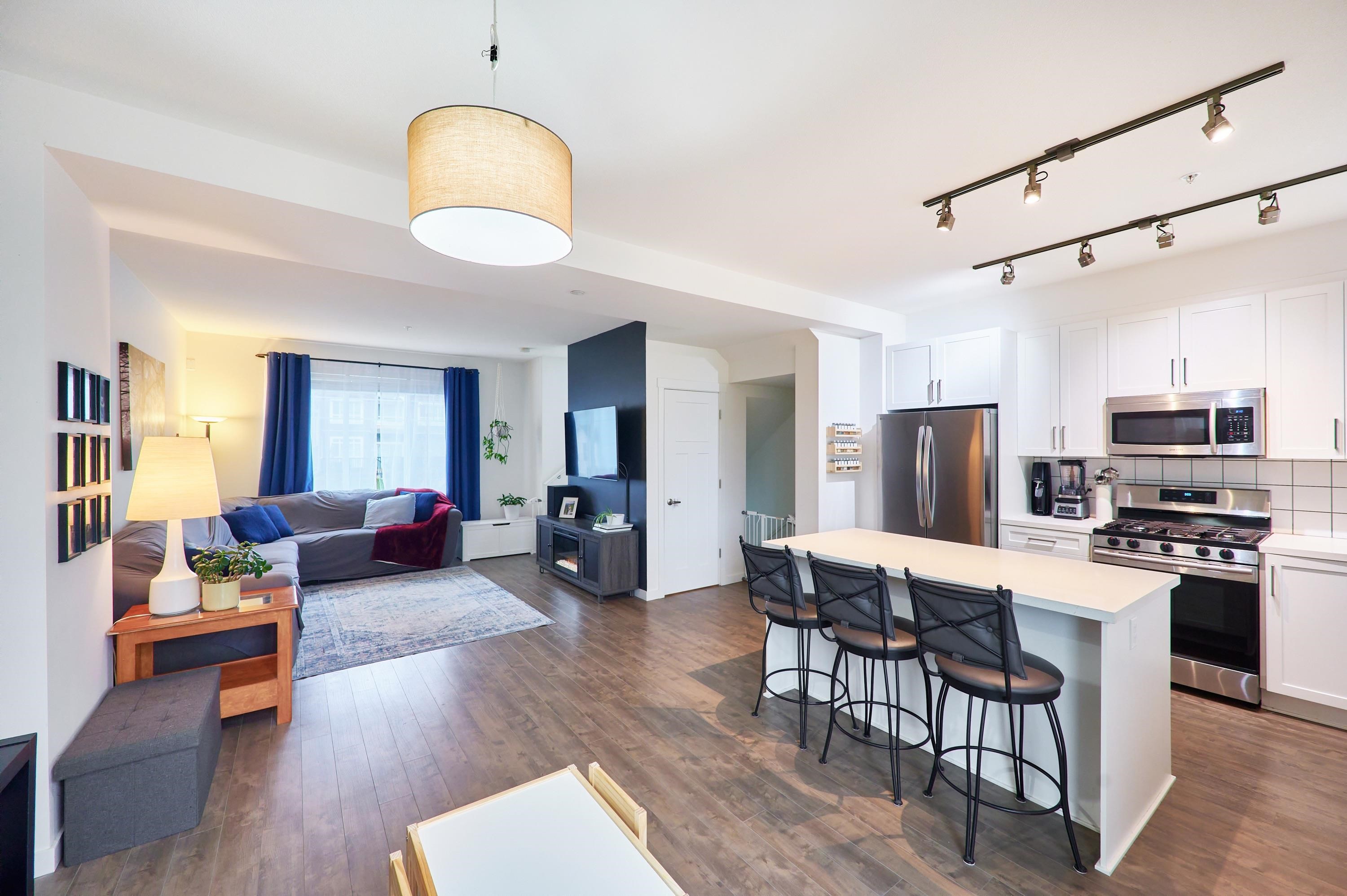 Experience elevated living in this stunning 3-storey townhome, perfectly designed for modern lifestyles. This great find features 3 spacious bedrooms plus a versatile den, ideal for a professional home office. A standout feature is the exceptional parking capacity: a large double garage complemented by additional driveway parking for 2 more vehicles. The bright, open-concept main floor is built for entertaining, centered around an oversized kitchen island and a premium gas stove. Retreat to a primary suite ...