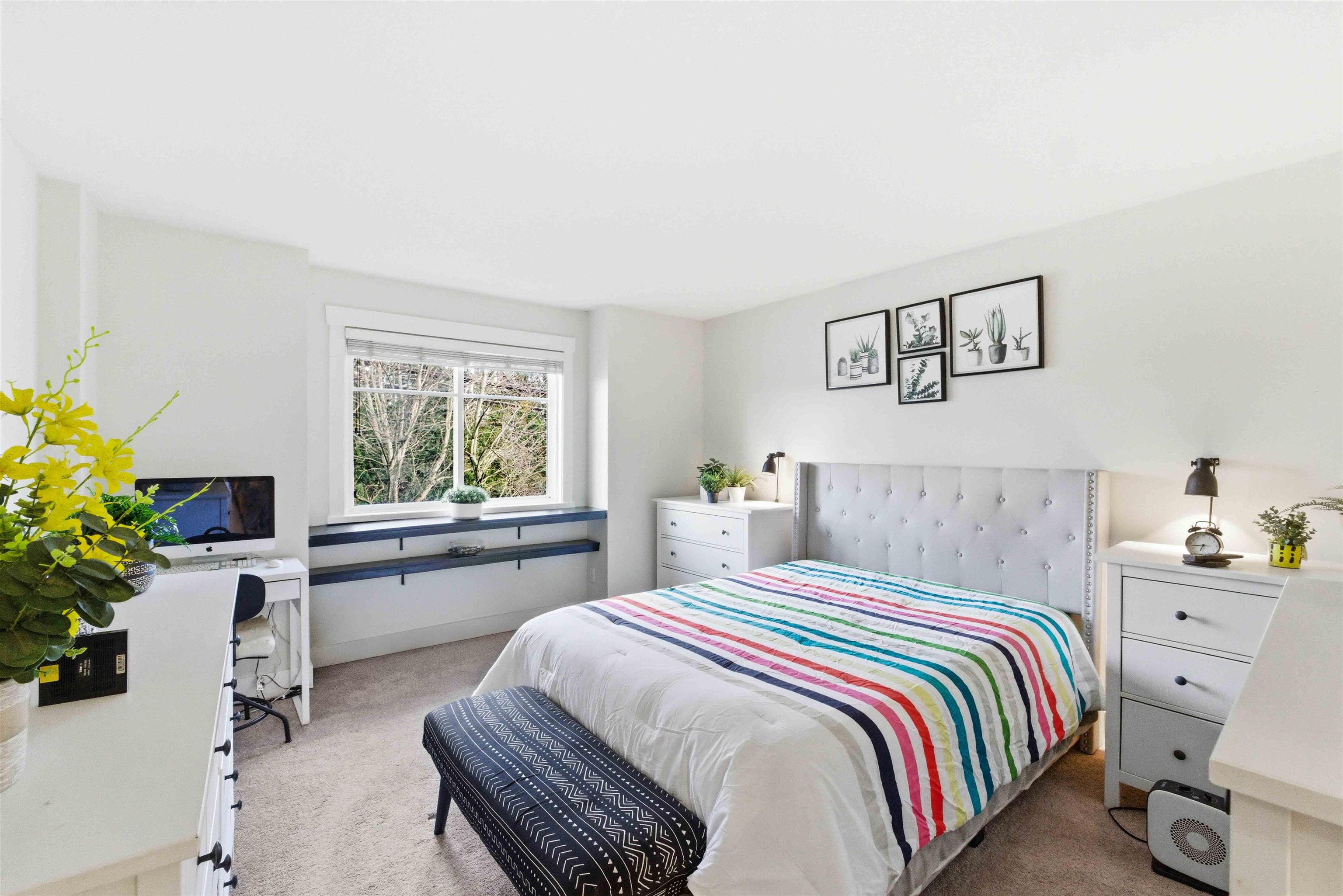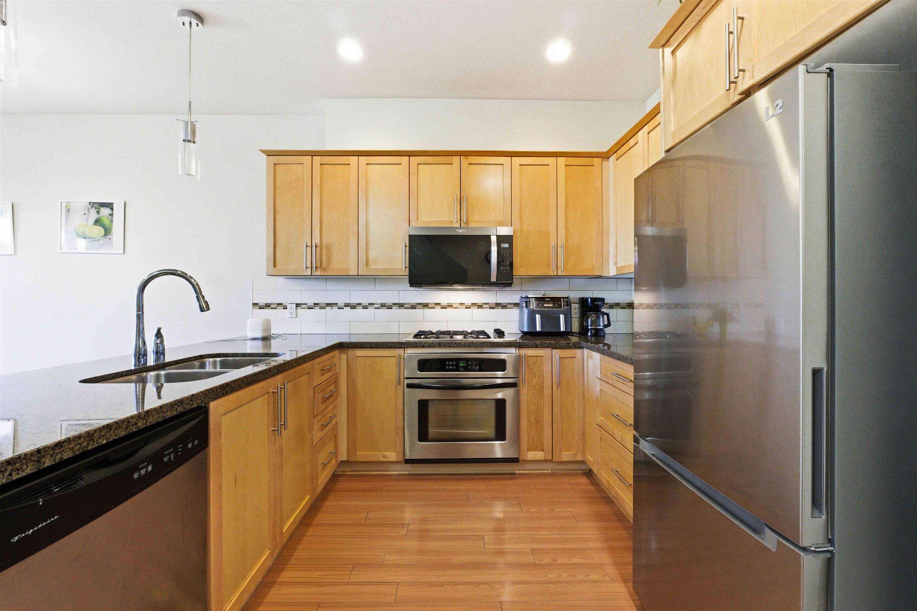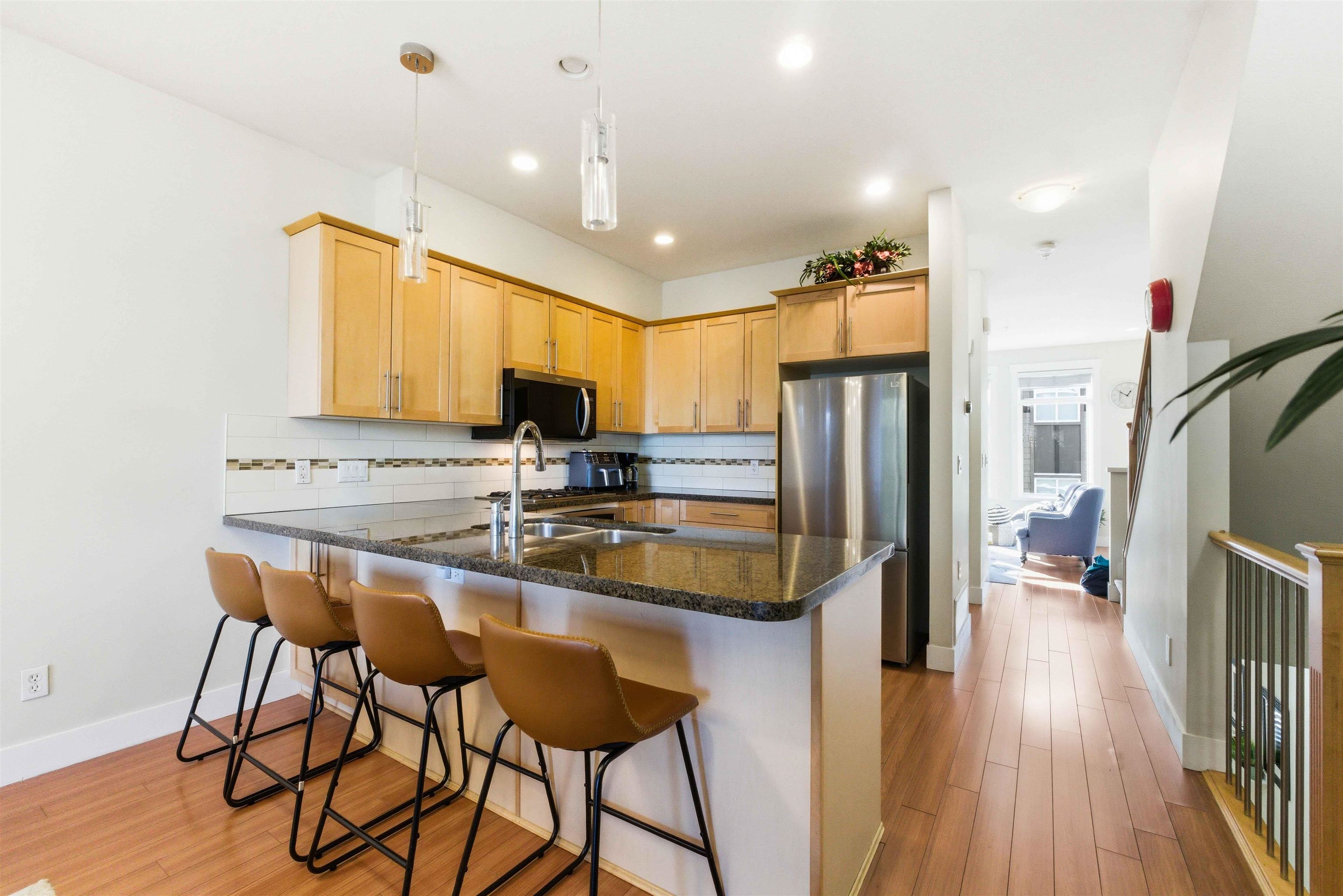 Discover the perfect family home in the popular "Windsong" complex. This lovely 3-bedroom 3-bathroom townhouse features 9ft ceiling, an open-concept main floor with a bright kitchen offering granite counters, stainless steel appliances, and a gas stove. The adjacent family and dining area opens via sliding doors to a private outdoor patio, ideal for summer BBQs. Relax in the sun-drenched living room centered around a cozy gas ledgestone fireplace. Upstairs is a Master Bedroom with an ensuite and his and her...