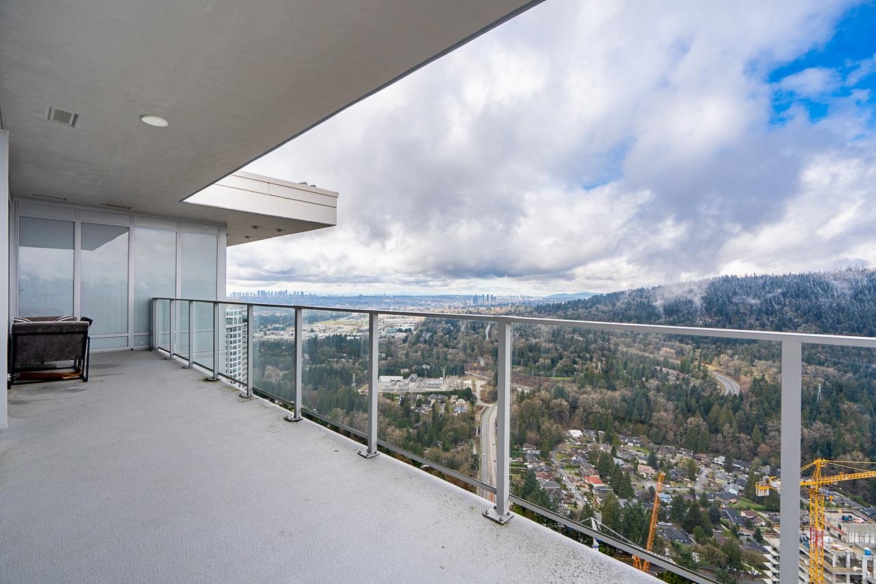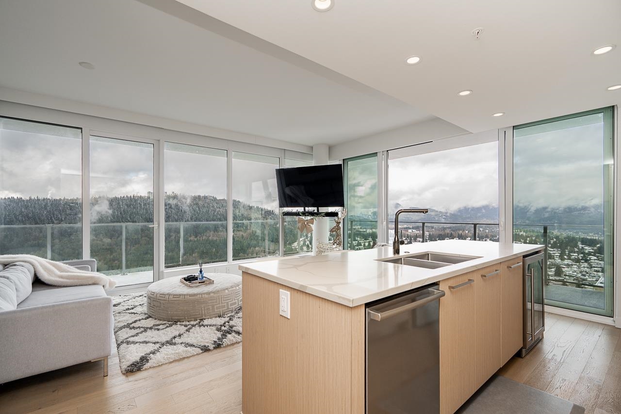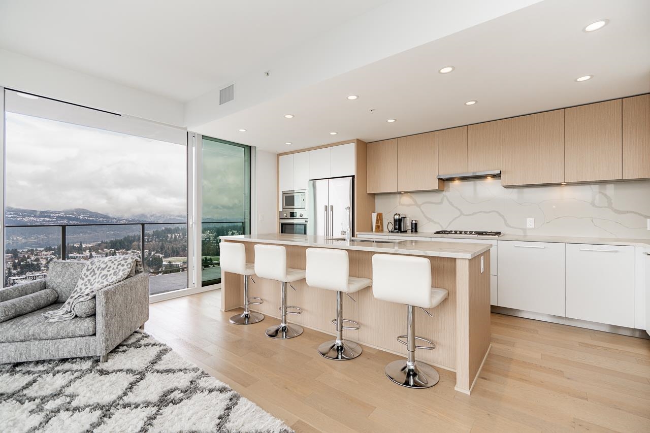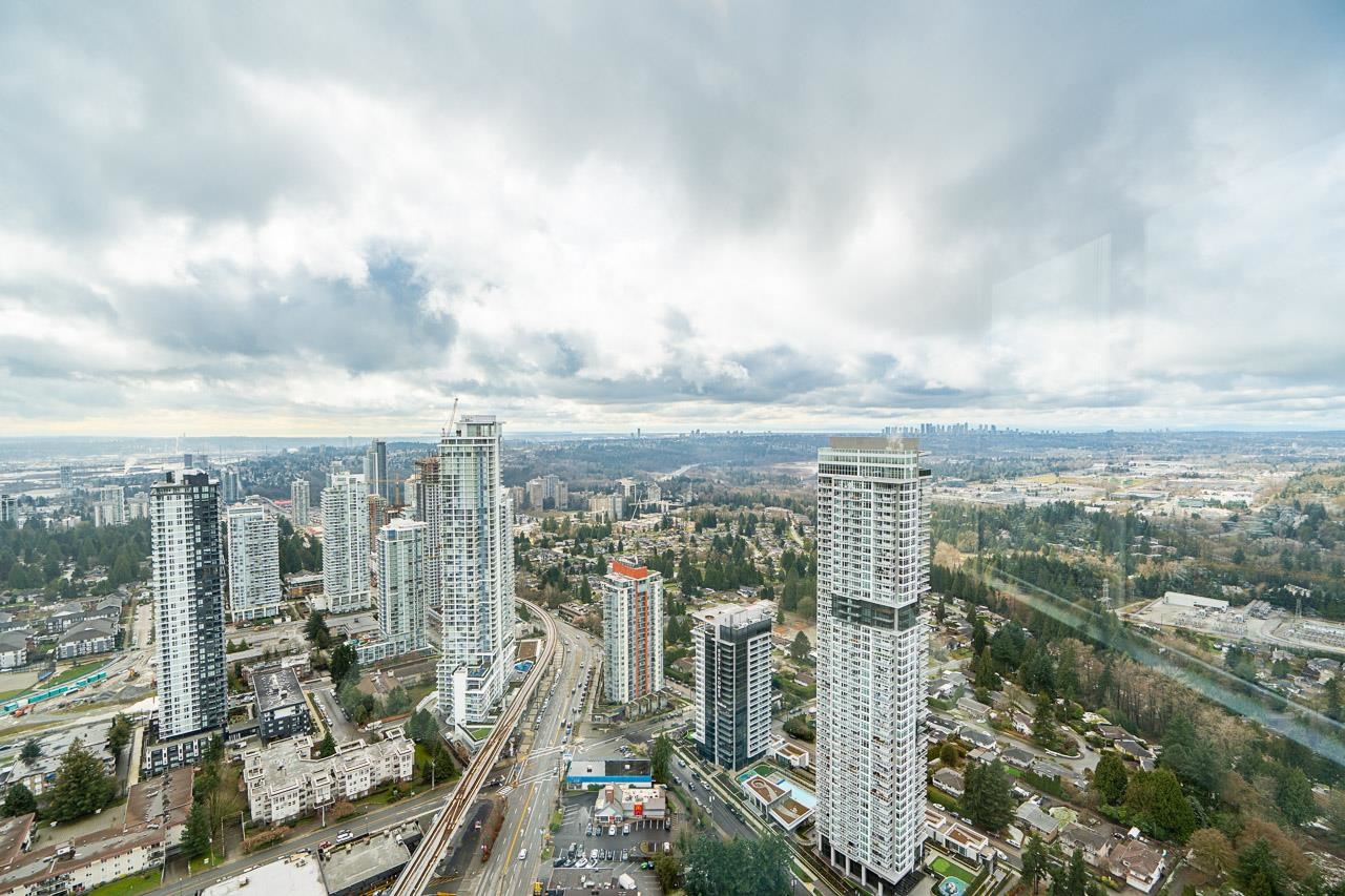 PENTHOUSE @ Clark & Como HIGH UP on 48th Floor!! 3 Bed + Den Corner offering approximately 1,400 sq ft of bright living space w/panoramic 360 water, mountain & city views from every room. Wrap around Balcony facing North, West, Primary bdrm facing South. Modern kitchen features lge island w/ High End appliances, wine cooler, gas stove, built-in oven, & built-in microwave perfect for cooking & entertaining. Enjoy the rare bonus 3 CAR PARKING STALLS + a double sized STORAGE locker. Located steps to Burquitl...