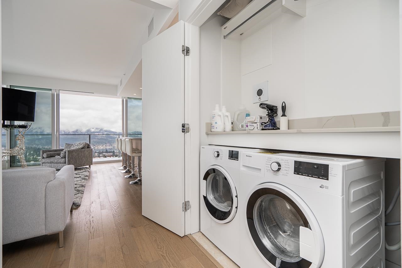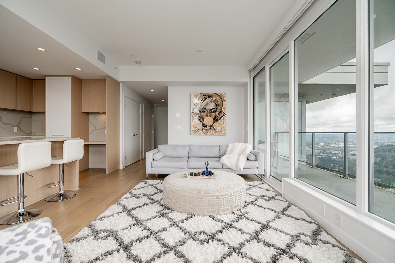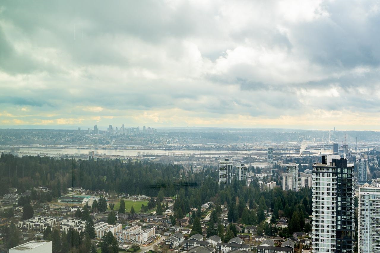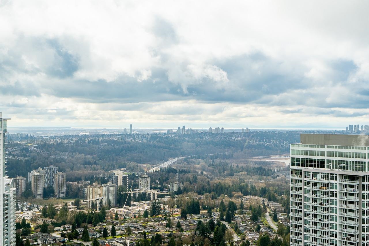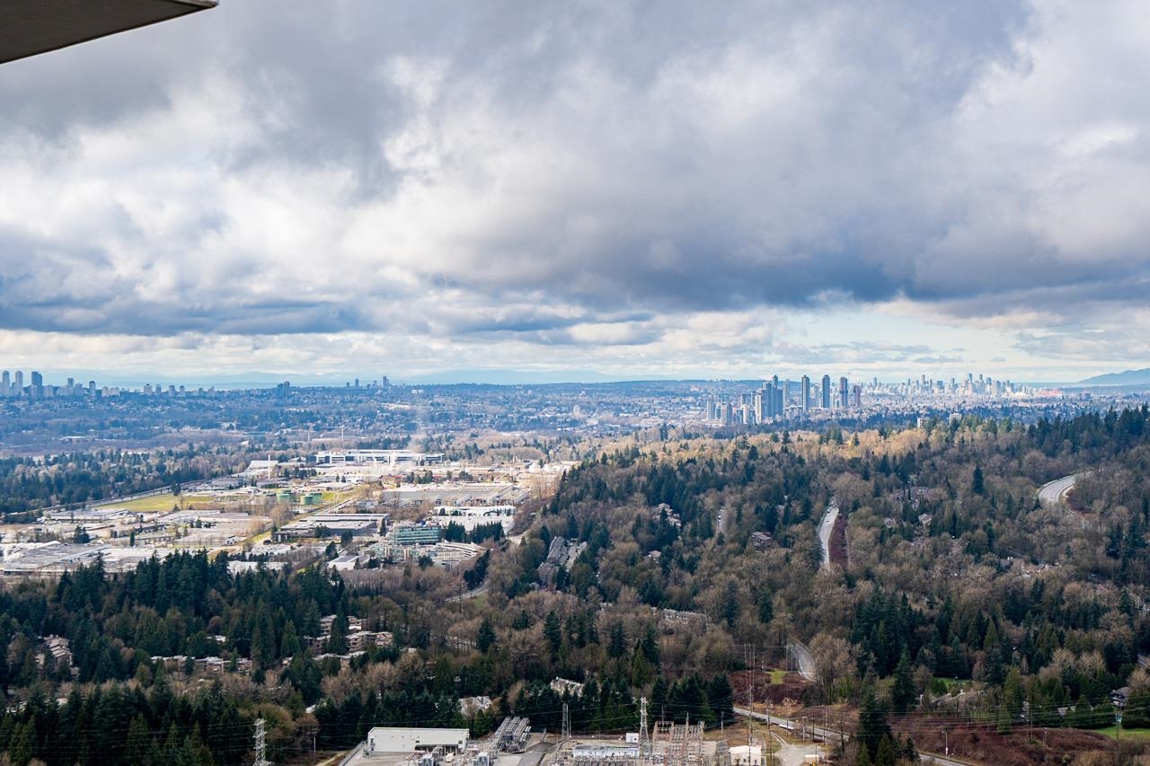 PENTHOUSE @ Clark & Como HIGH UP on 48th Floor!! 3 Bed + Den Corner offering approximately 1,400 sq ft of bright living space w/panoramic 360 water, mountain & city views from every room. Wrap around Balcony facing North, West, Primary bdrm facing South. Modern kitchen features lge island w/ High End appliances, wine cooler, gas stove, built-in oven, & built-in microwave perfect for cooking & entertaining. Enjoy the rare bonus 3 CAR PARKING STALLS + a double sized STORAGE locker. Located steps to Burquitl...