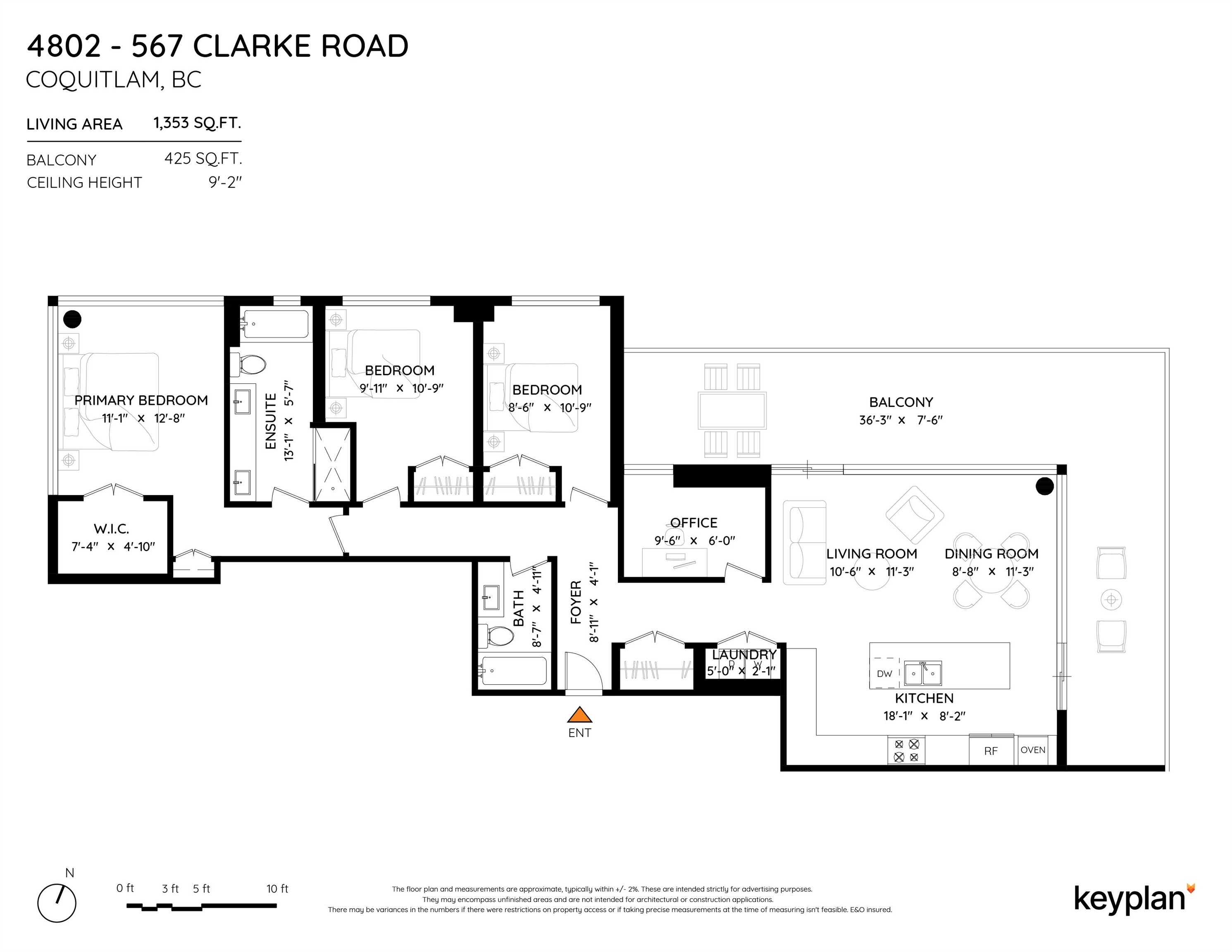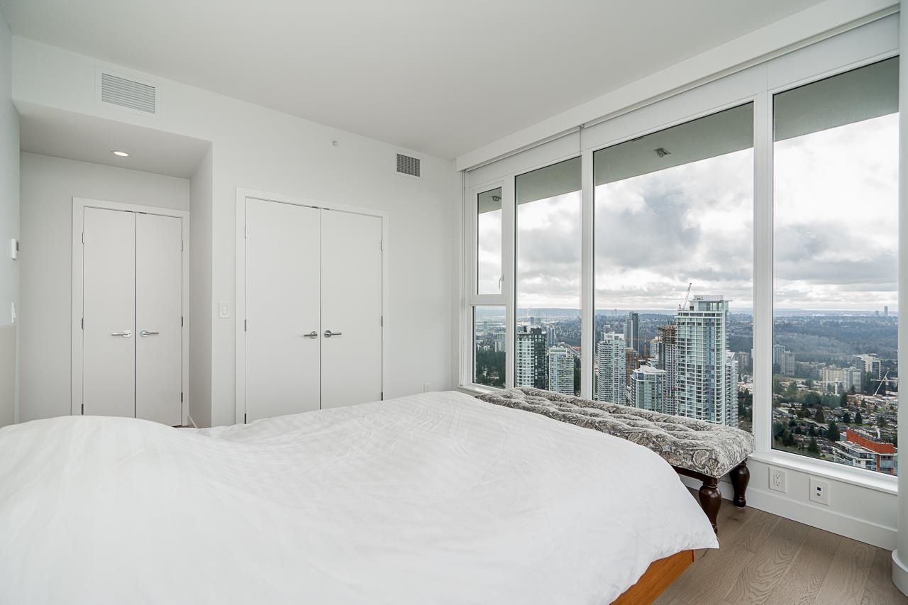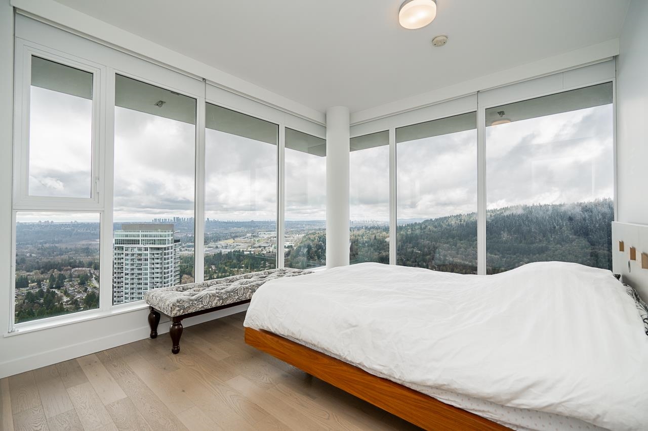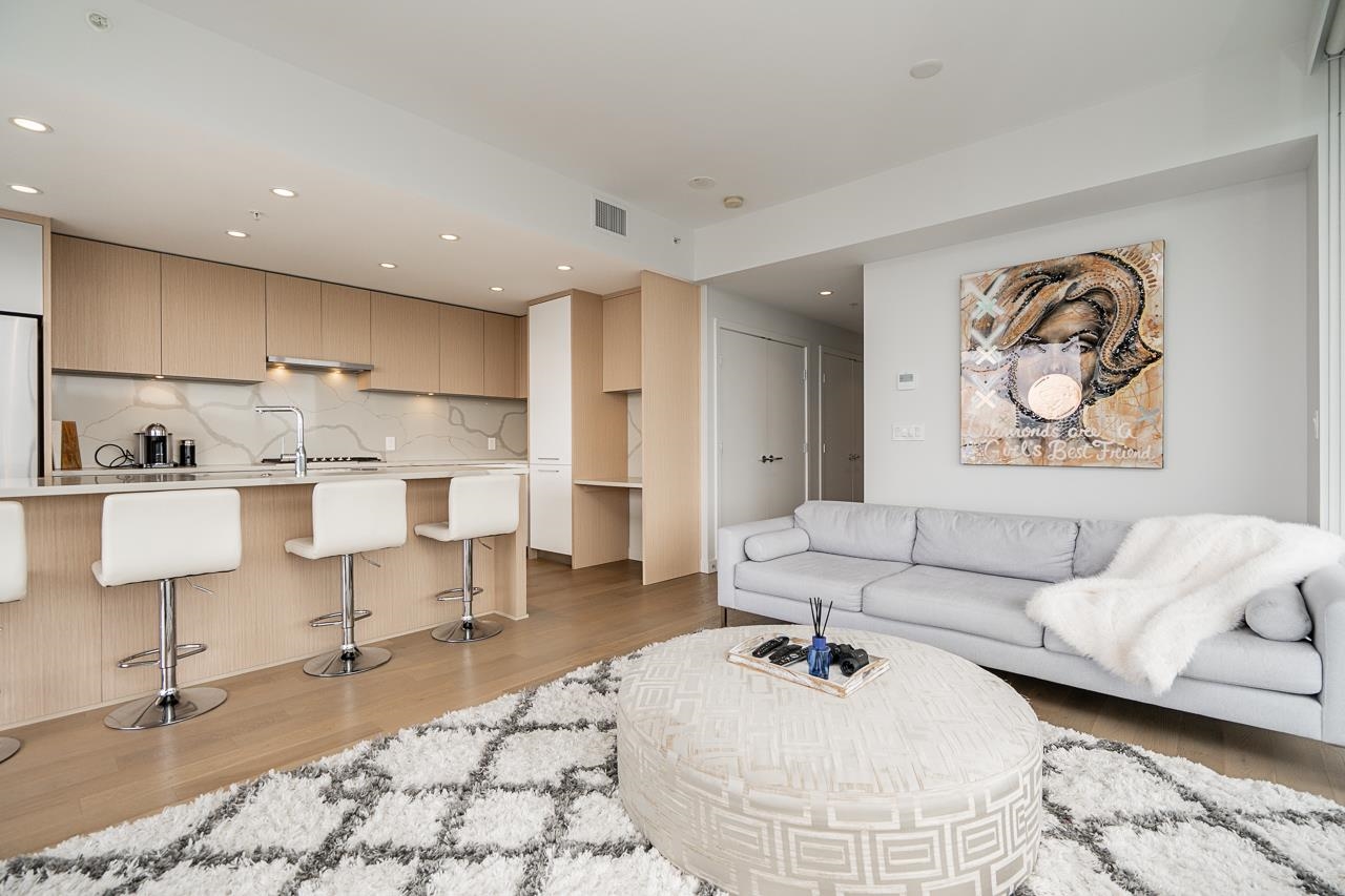 PENTHOUSE @ Clark & Como HIGH UP on 48th Floor!! 3 Bed + Den Corner offering approximately 1,400 sq ft of bright living space w/panoramic 360 water, mountain & city views from every room. Wrap around Balcony facing North, West, Primary bdrm facing South. Modern kitchen features lge island w/ High End appliances, wine cooler, gas stove, built-in oven, & built-in microwave perfect for cooking & entertaining. Enjoy the rare bonus 3 CAR PARKING STALLS + a double sized STORAGE locker. Located steps to Burquitl...