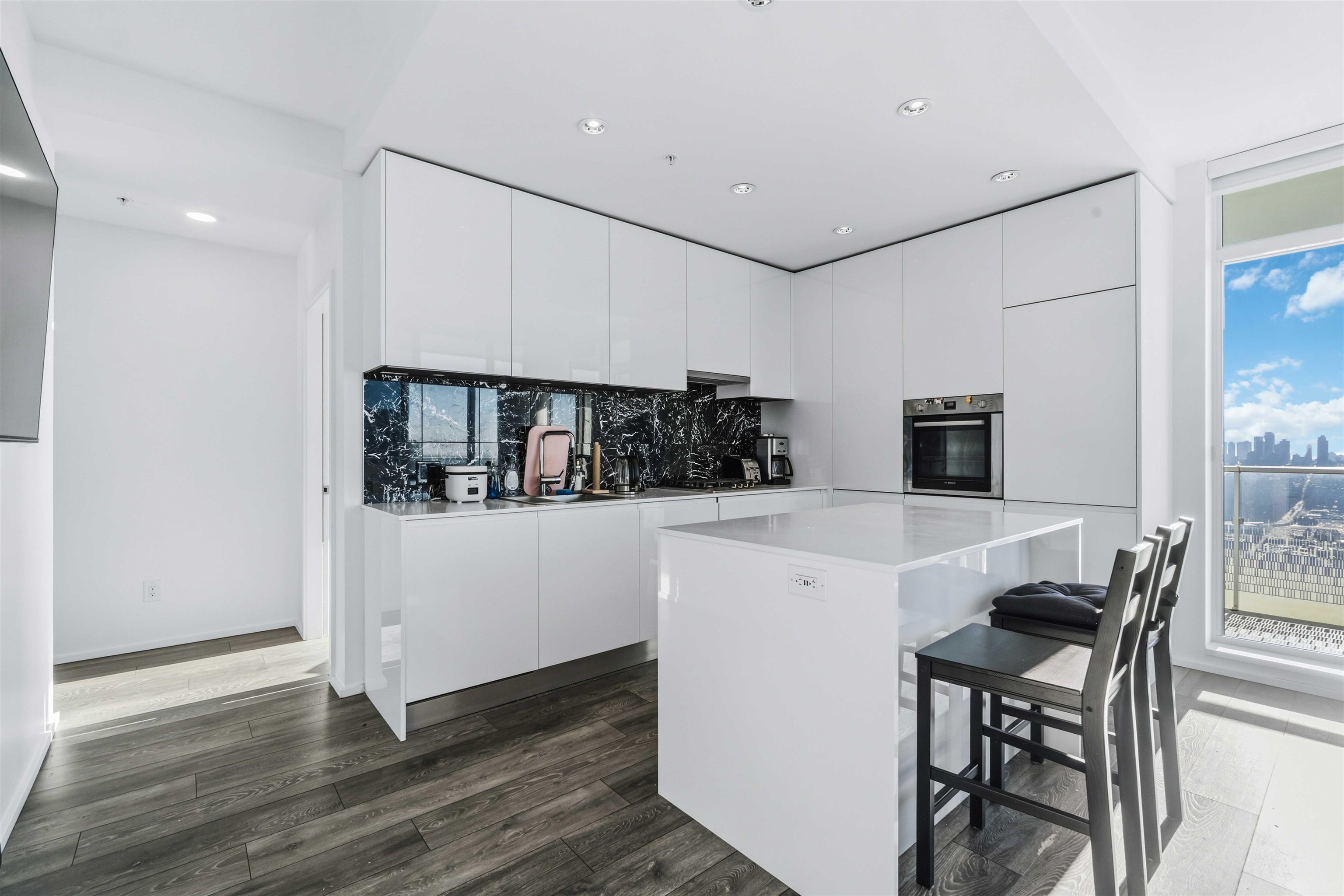 This southwest-facing corner 2 bedroom, 2 bathroom home by Shape Properties offers 777 SF of well-designed living space. The modern gourmet kitchen features quartz countertops and Bosch appliances, while the primary bedroom includes a spa-inspired ensuite. A 384 SF wraparound balcony and floor-to-ceiling windows provide abundant natural light and stunning mountain and city views from every room. Ideally located in the heart of Brentwood, just steps to shopping, transit, and the SkyTrain, with an easy 30-mi...