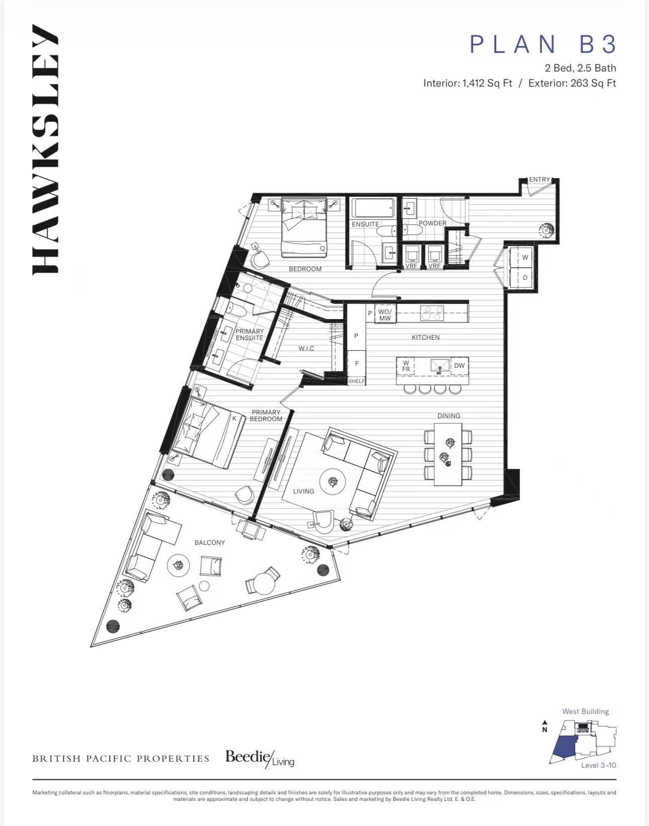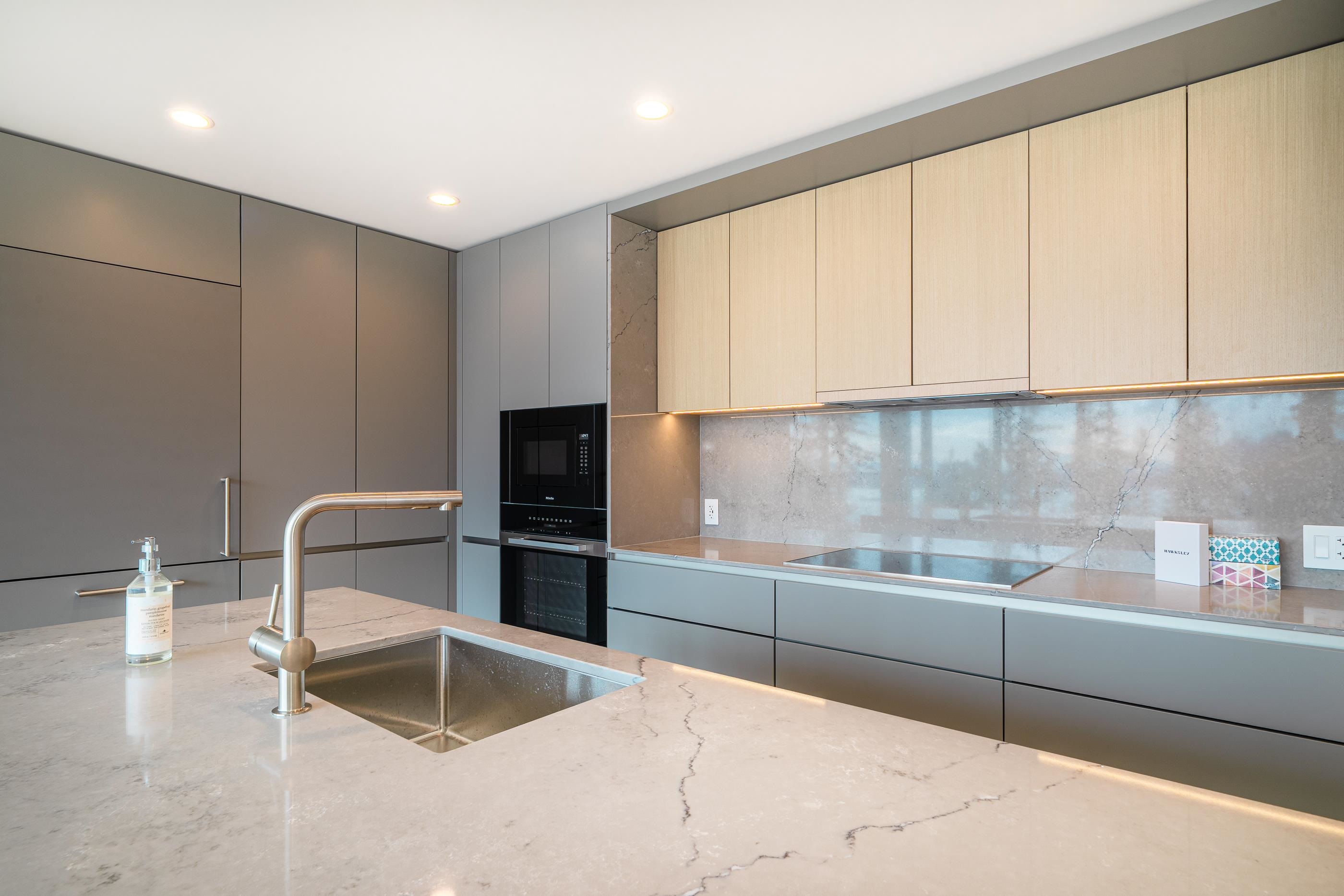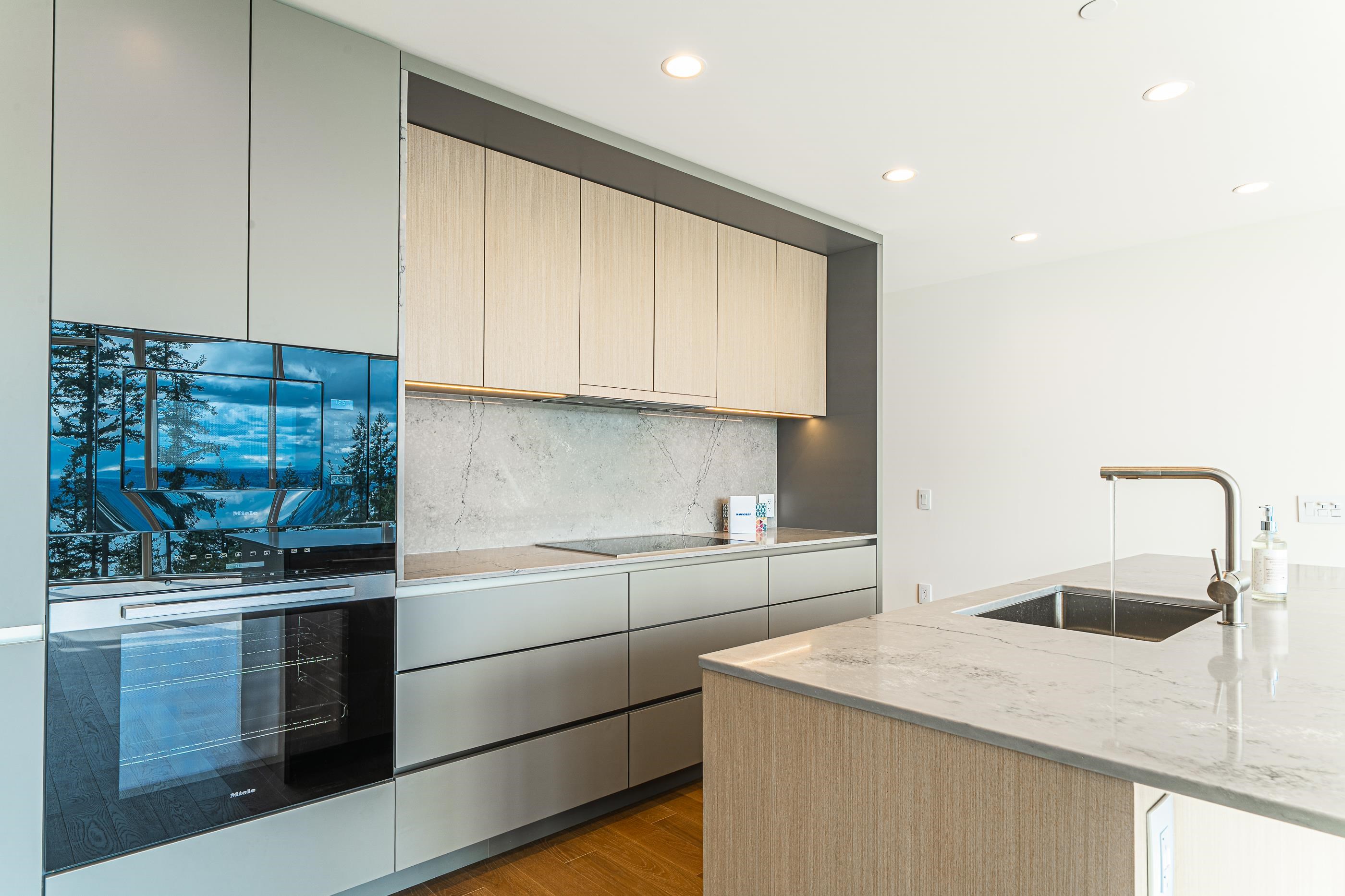 Brand new 1,412 sq. ft. home featuring 2 bedrooms, 3 bathrooms, and 2 parking stalls. along with engineered hardwood flooring, air conditioning, expansive windows, and peaceful forest and ocean views. The unit also includes an in-suite washer and dryer for your convenience. The kitchen is equipped with integrated Miele and Liebherr appliances, while the luxurious bathroom offers a functional pull-out cabinet for added storage. Residents of Hawksley enjoy access to co-working and study spaces, a workshop, mu...