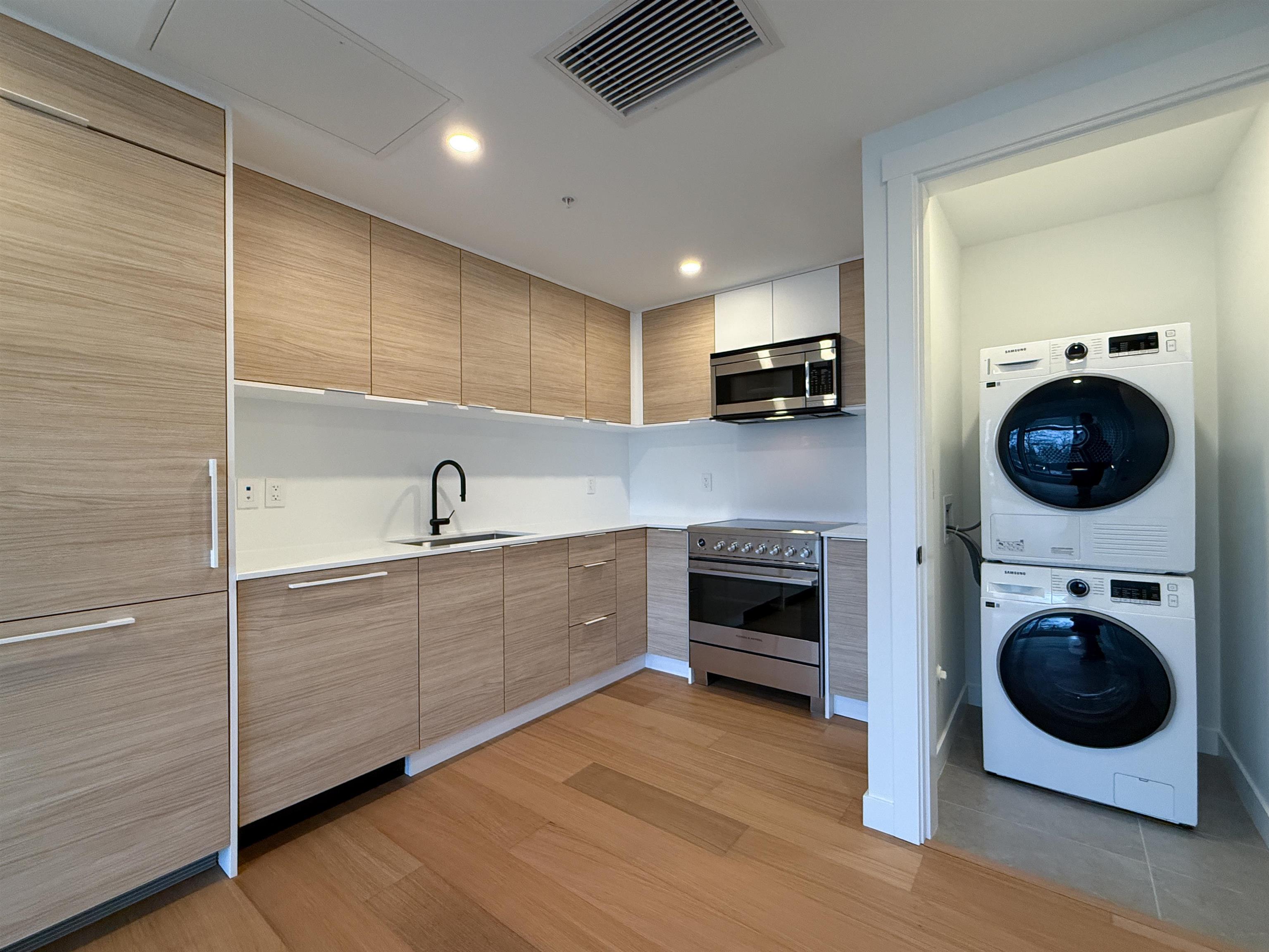 2beds+flex and 2 full baths South facing overlooking Lanagara College Green athletic fields. 784sf and 73sf ( Balcony) “AVA” -Brand new-bright south-facing 2 beds + flex, 2 baths top floor unit in front of Langara College. No unit above so it’s quiet. Versatile flex space ideal for a home office with built-in desk and closet. Private balcony with open views overlooking Langara College and green athletic fields. Features hardwood flooring, in-suite laundry, electric stove, forced-air heating & A/C. Includ...