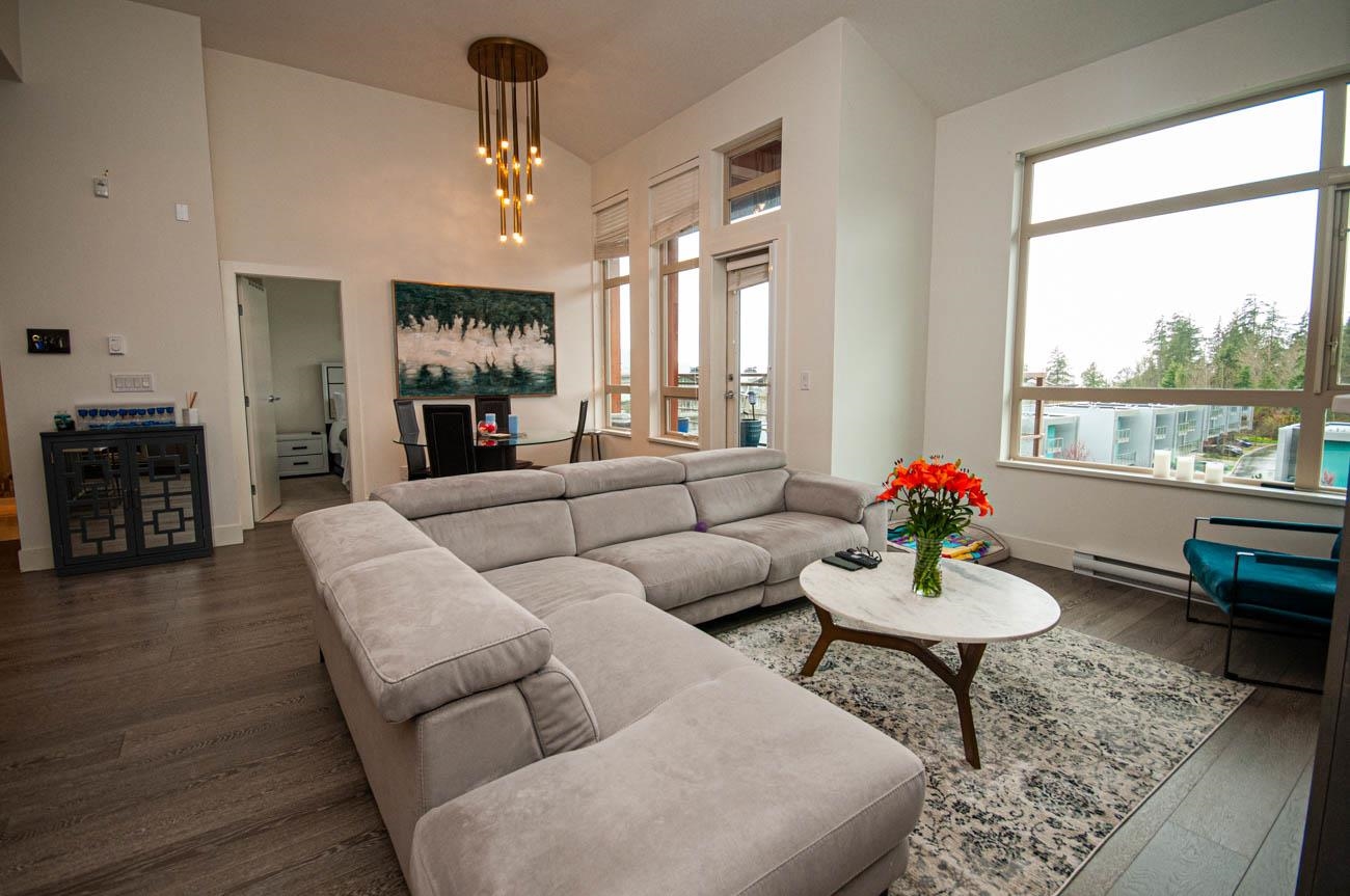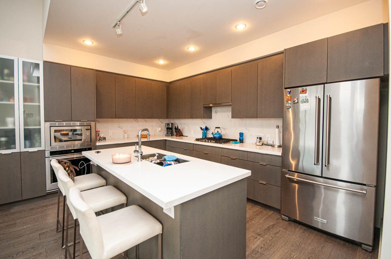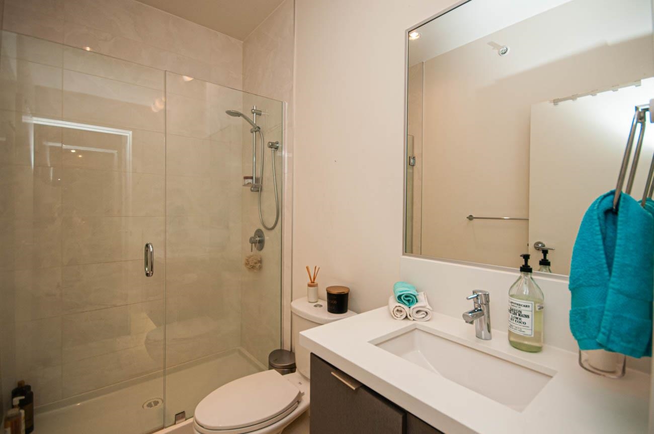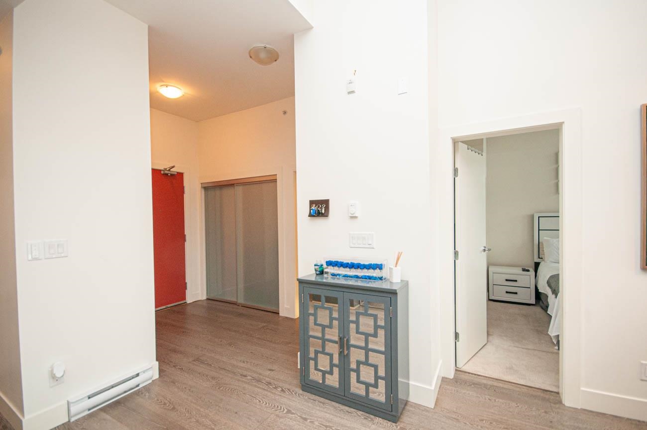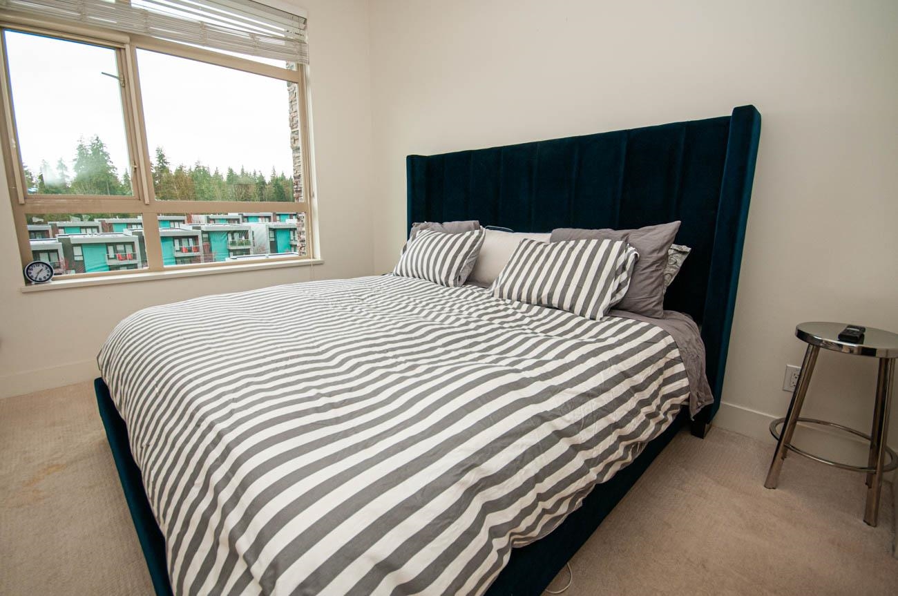 Beautifully furnished incredible 2 bedroom unit in Seymour Village complex in North Vancouver! With high ceilings, luxury finishes, and stunning West facing views, this unit offers privacy and high-end living. With an open plan kitchen, dining, and living area, you will have plenty of space to entertain and relax. An office or den comes with built-in custom cabinetry and shelving. A large patio is perfect for relaxing and enjoying the view in the warm summer months. The spacious master bedroom, has a walk-i...