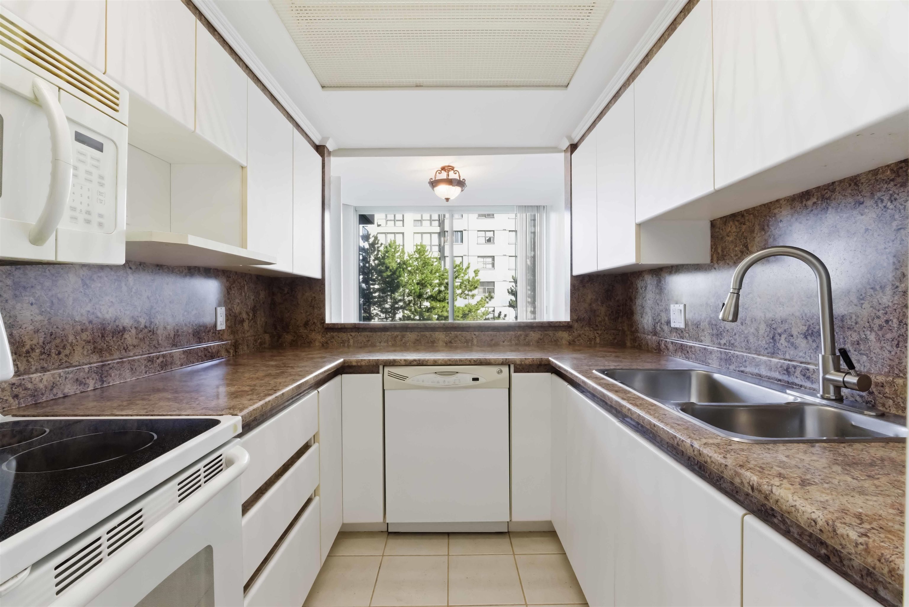 Large 1 bed + den in Surrey Central. Enjoy mountain views and unbeatable convenience in this spacious, well-maintained home offering 826 sq ft of functional living space. Quietly located on the desirable northwest side of the building, this freshly painted unit features 2 bathrooms, an oversized den easily suitable as a second bedroom, cozy gas fireplace, two balconies, and brand new washer and dryer. Steps to Gateway Station for an easy commute. 1 parking spot and 1 storage locker.