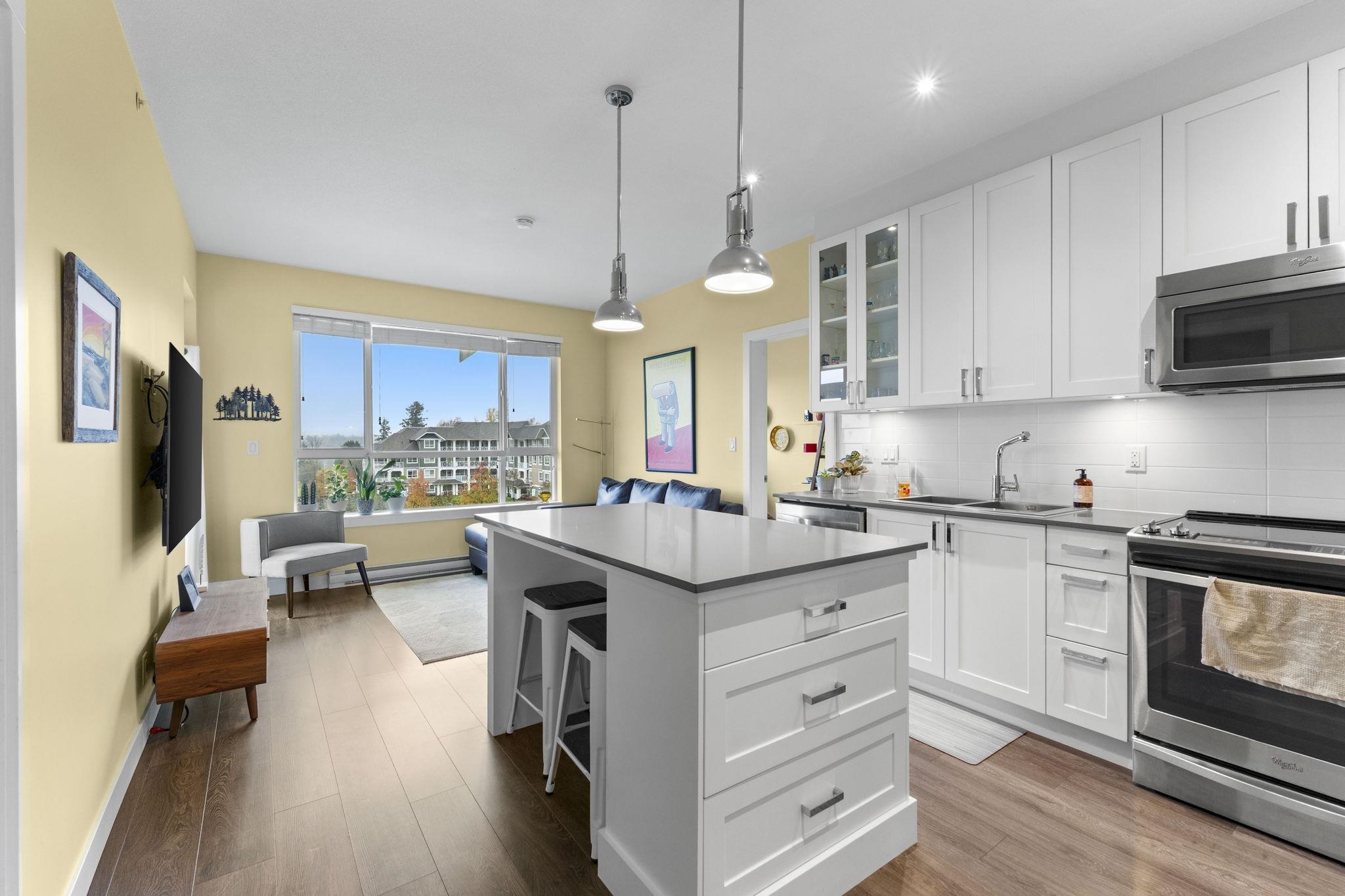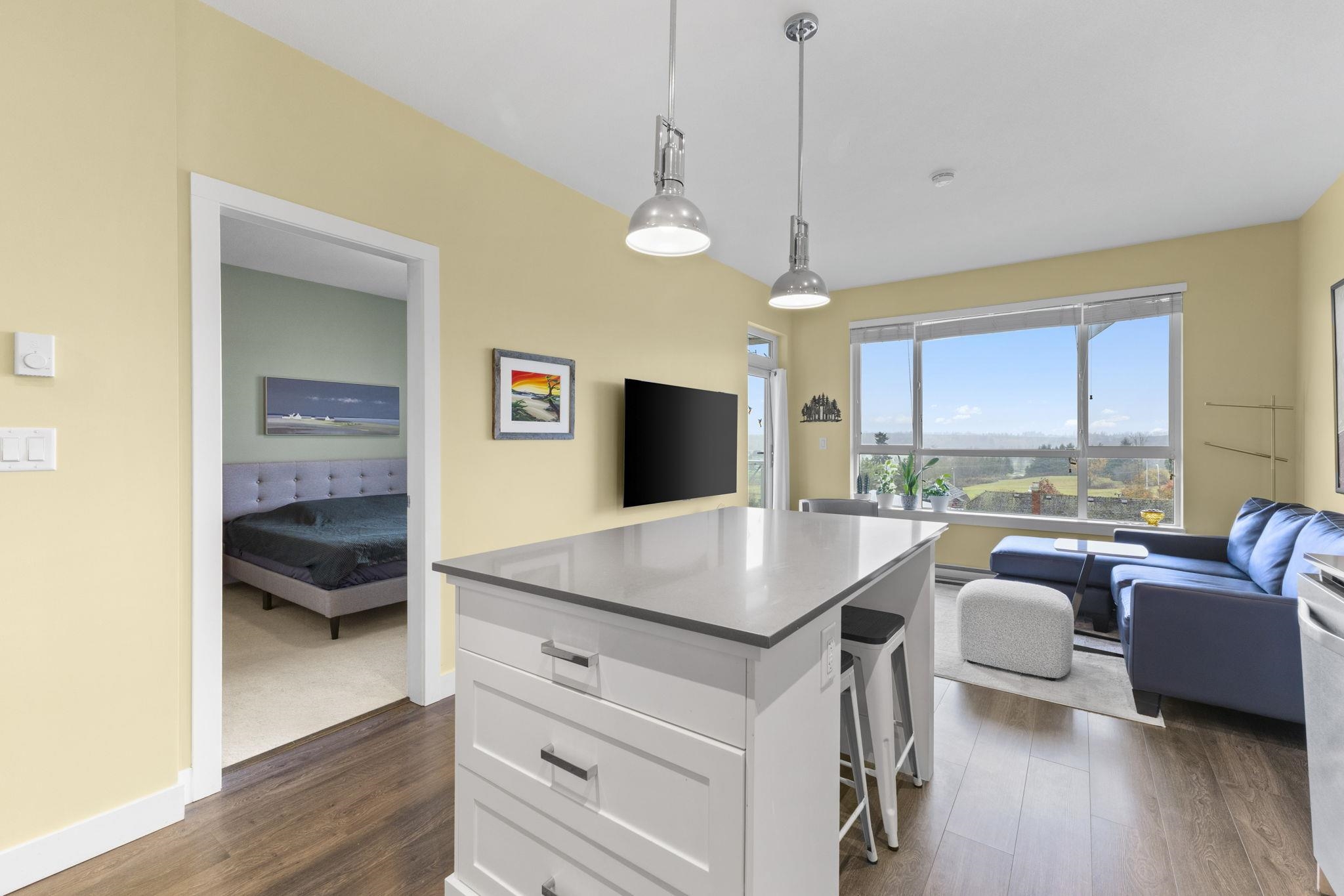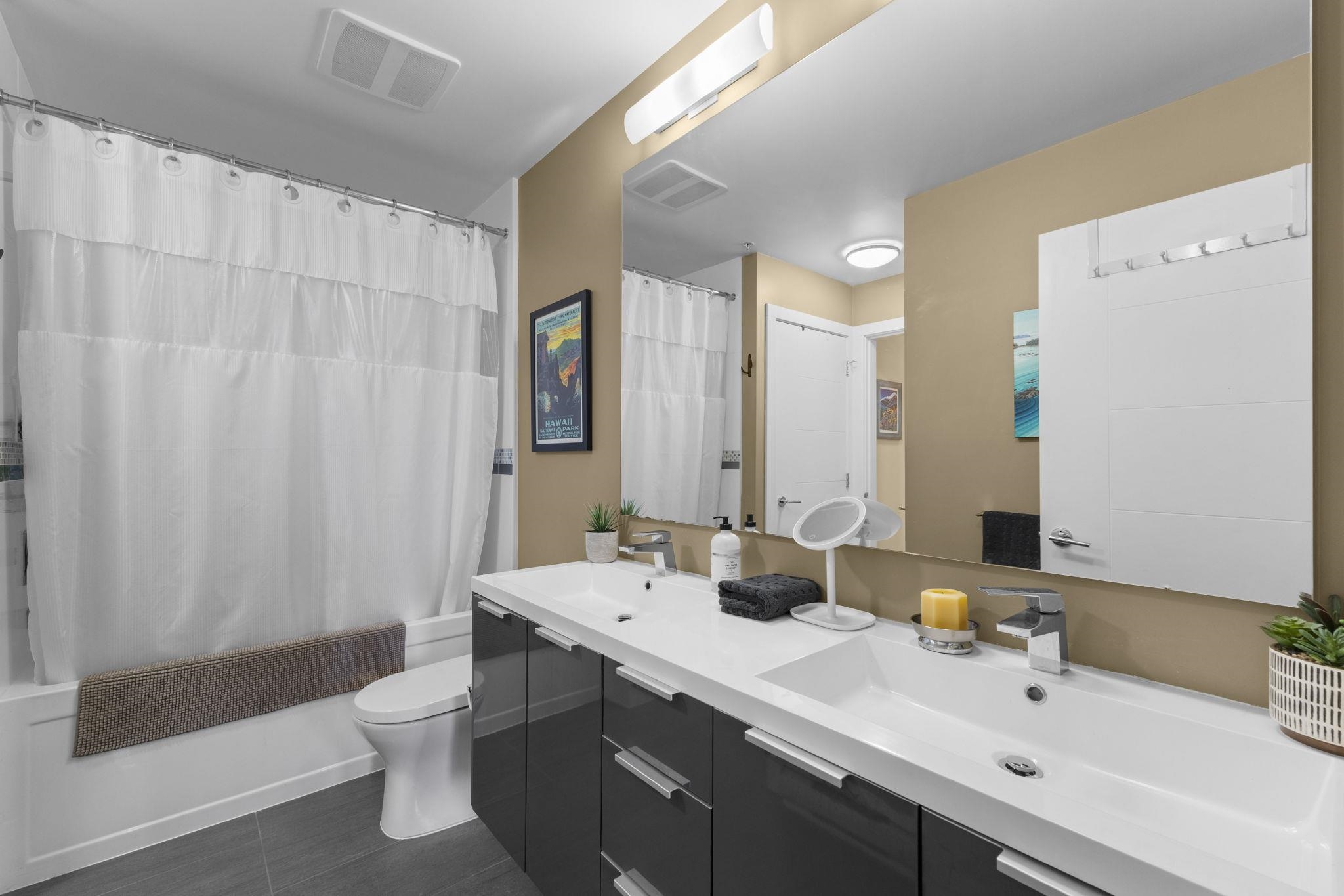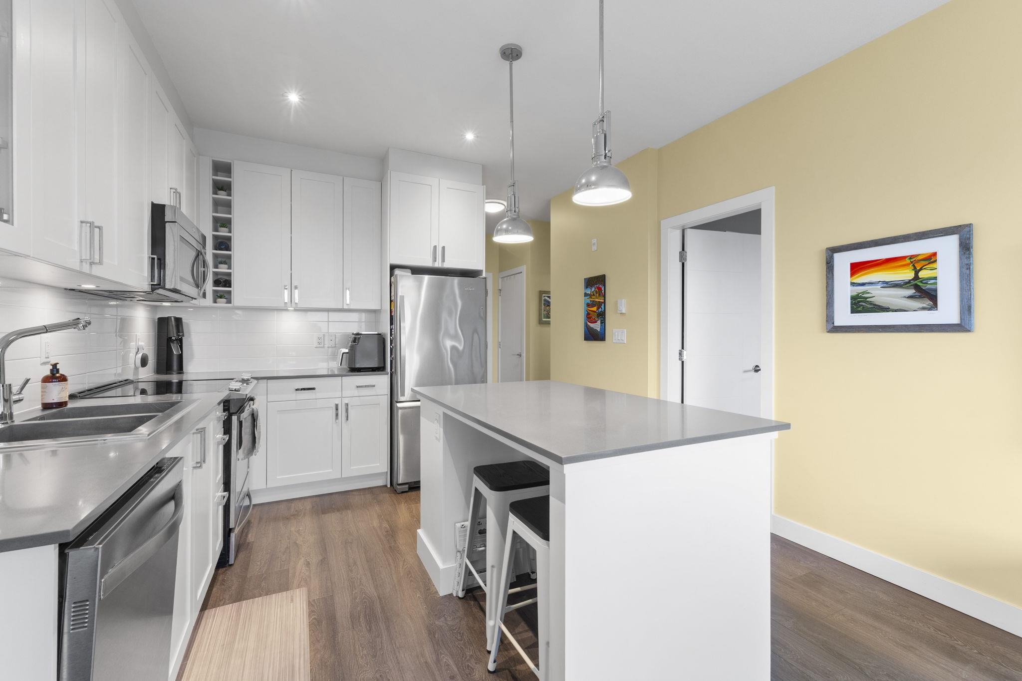 Welcome to The Ridge at Bose Farms! This charming 2 bed + den, 1 bath home offers stunning mountain and valley views. Features include an open floorplan, upgraded s/s appliances, quartz countertops, oversized island, in-suite laundry, and a spa-inspired ensuite with double sinks, deep soaking tub, and heated floors. 2 PARKING AND A HUGHE LOCKER! Enjoy the peaceful, private view from your large covered balcony. Incredible amenities: garden plots, guest suites, playground, gym, yoga studio, craft room, theatr...