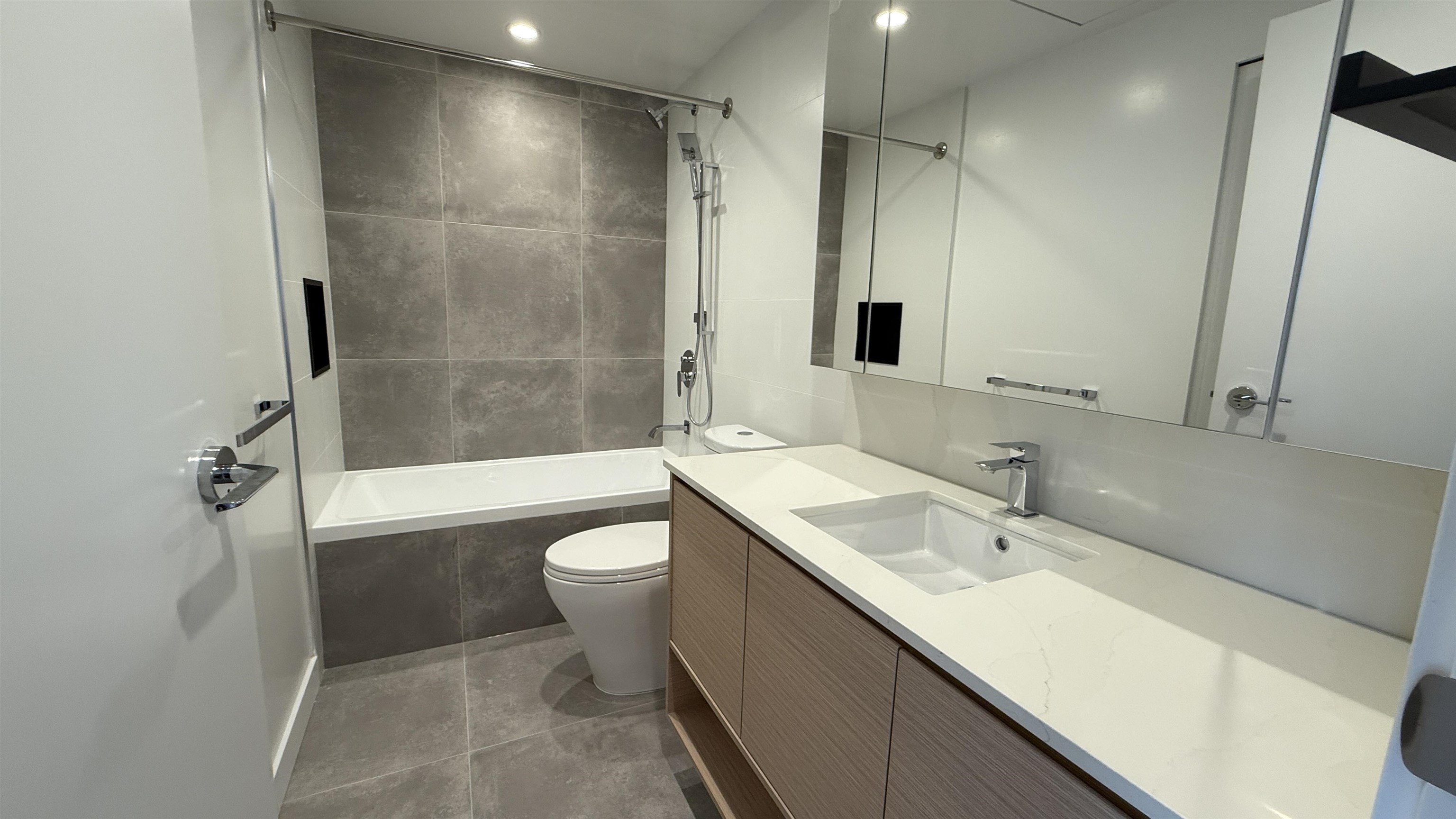 King George Hub's Plaza One by PCI Developments. This Brand new 1bedroom South West facing home features floor to ceiling windows w/ an abundance of natural light, Chef ready integrated kitchen, Spa-like Bathroom, Spacious Patio for entertaining, air conditioning & premium Fulgor Milano stainless-steel appliance. Excellent Amenities like On Site Caretaker, Rooftop Lounges w/ BBQ's, Children's Playground, Co-work & Library Space, Theatre Room & Fitness Hub, etc. With steps to SkyTrain, Save-On-Foods, Rexall,...