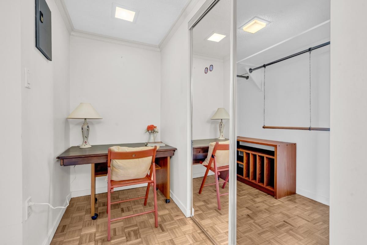 Welcome to an exceptional downsizing opportunity that delivers comfort, quality, and livability-without sacrificing space or lifestyle. This beautifully appointed top floor, 2 level, concrete residence offers a thoughtful floor plan ideal for those transitioning from a family home, with generous principal rooms, flexible den space perfect for a home office, guest room, or caregiver use, and a calm, elegant atmosphere throughout. The home has been carefully positioned for ease of living, featuring excellent ...