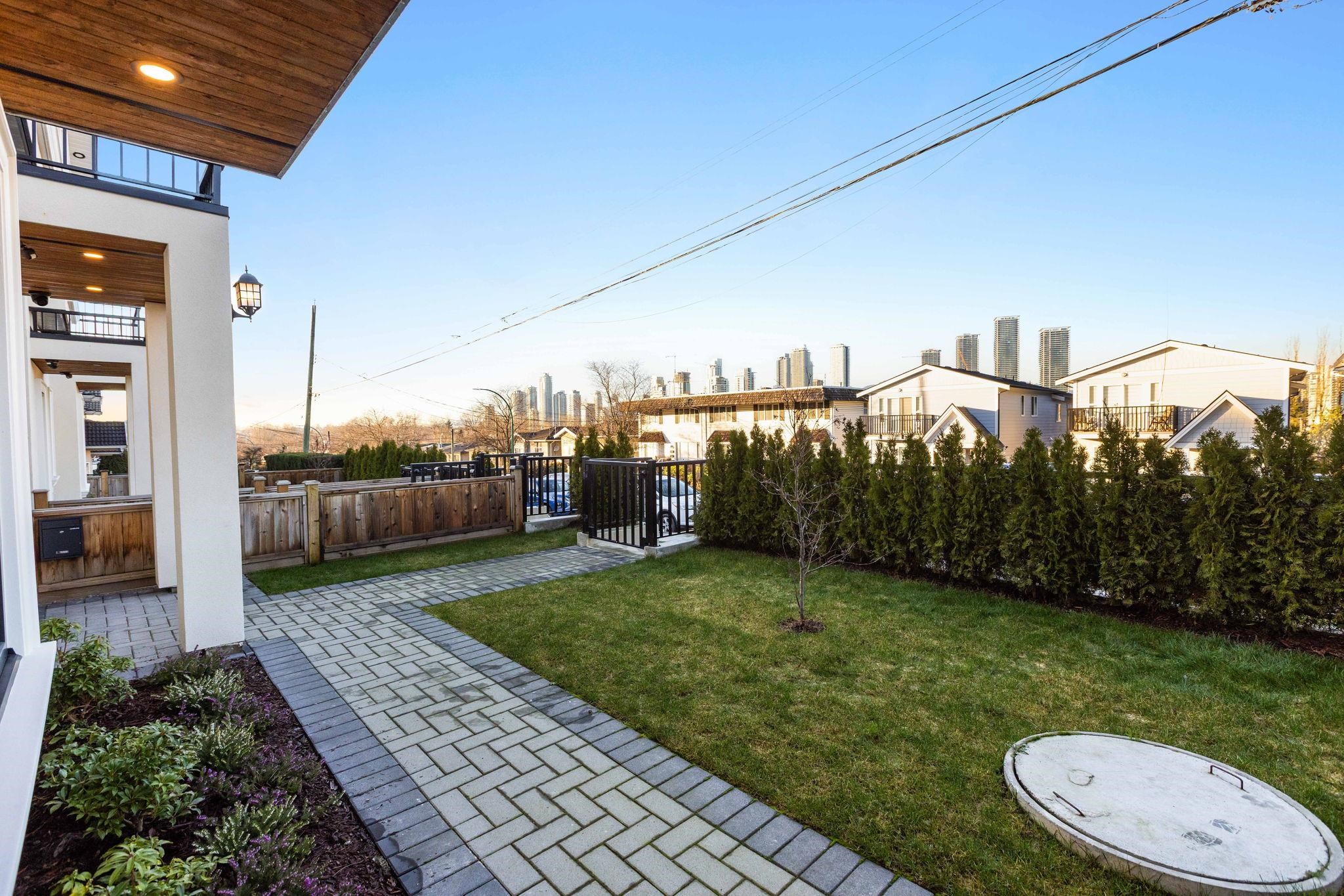 Front Unit Half Duplex" -Stunning Brand-New Custom built by a trusted local builder, offering 1,372 sq.ft. of thoughtfully designed living space with 5 bedrooms and 2 bathrooms. Premium features include HRV, hot water radiant heat, A/C with heat pump, security system with cameras, gas stove, and a cozy fireplace. Step outside to a beautifully sized front yard—perfect for summer entertaining. This home also offers a one-car garage, potential 2 bedroom rental suite, no strata fees, and a 2-5-10 Home Warranty....