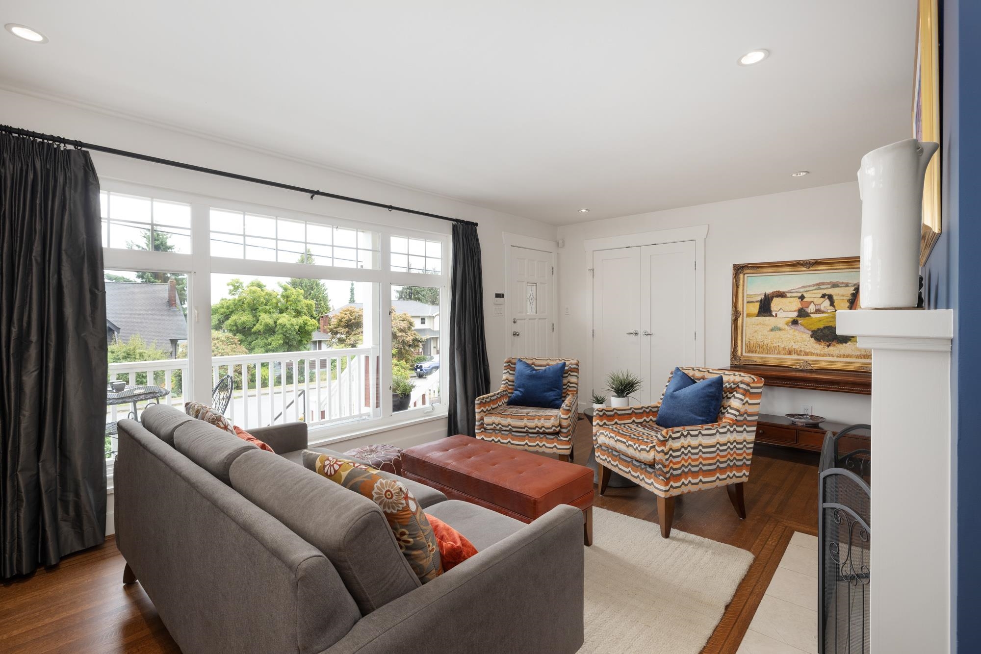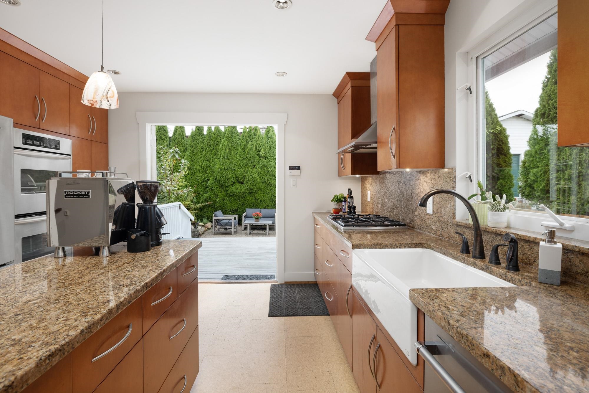 Spectacular transformation from 50's bungalow to a bright, open plan Arts and Crafts Modern by RJR Construction. 2005 Georgie Award Finalist featured in various publications.Perennial easy care front garden with pathway to a welcoming covered veranda. Sunny living room with wood burning fireplace & city skyline views. Chef's kitchen with warm wood cabinets, cork floors, stainless appliances, granite countertops, centre island & adjoining dining/family area with french doors to extremely private, fully fence...