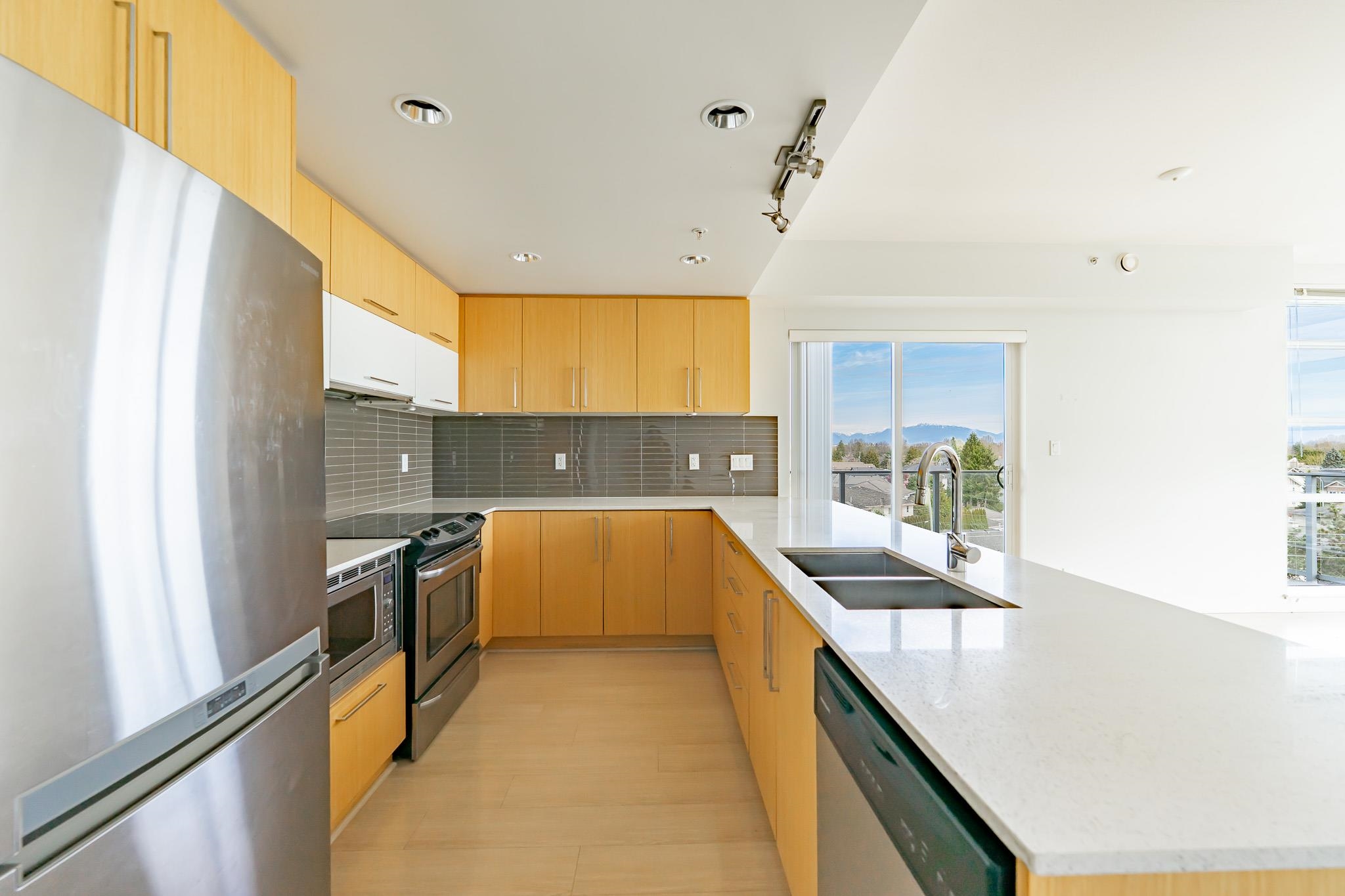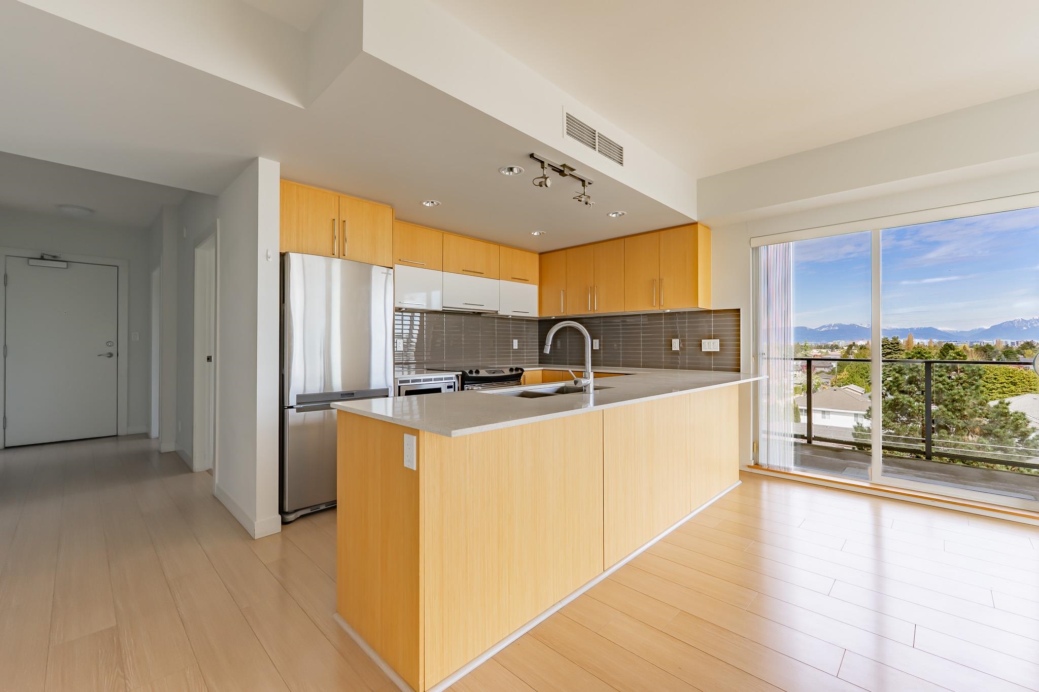 Located in the highly desirable Broadmoor neighborhood, this bright and peaceful two bedrooms and 1 den home features a large balcony. The unit offers a spacious living and dining area, complemented by a modern kitchen with quartz countertops. Enjoy unbeatable convenience with supermarkets, banks, and restaurants just steps away. Situated in a top-tier school catchment, it is within walking distance to Maple Lane Elementary and London Secondary. Easy to show and priced to sell-don't miss this opportunity.
