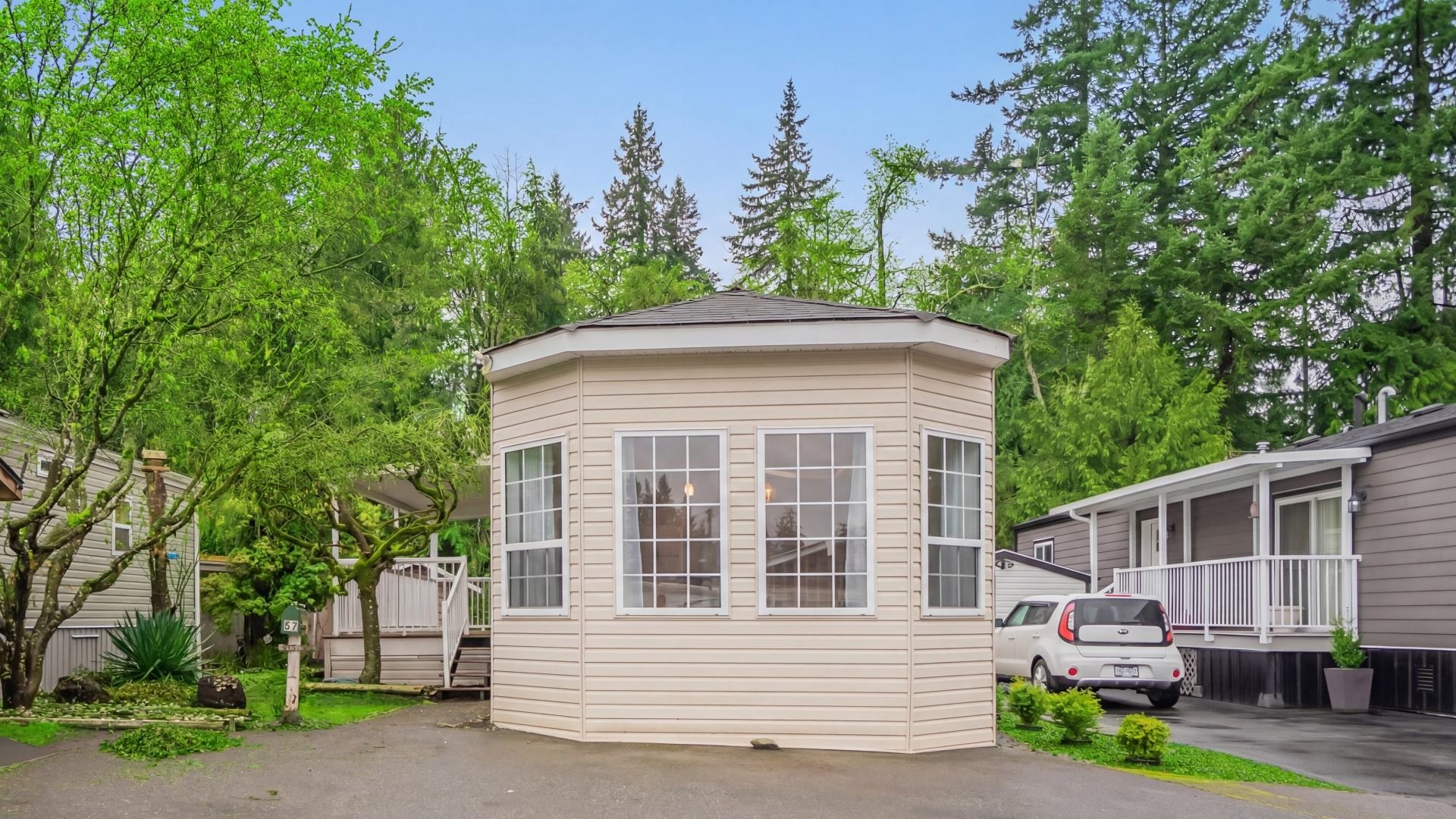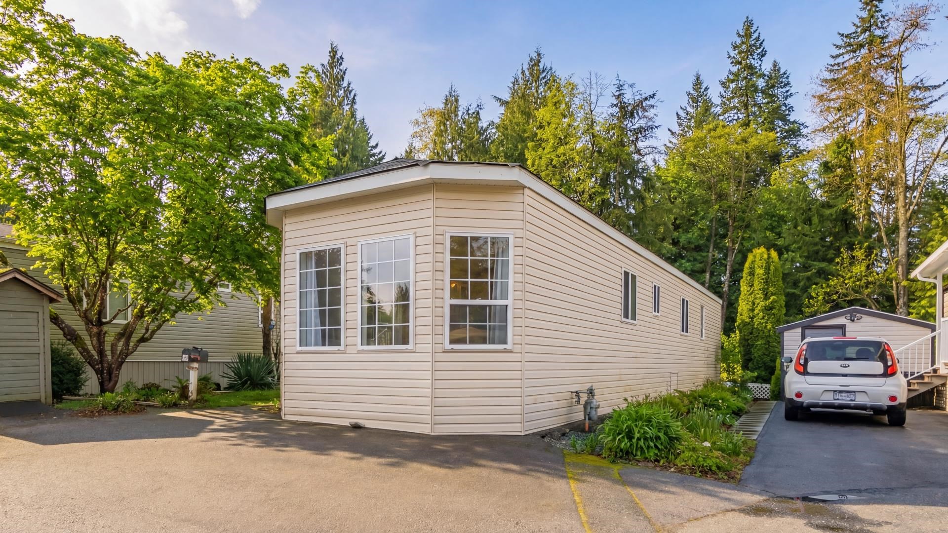 Welcome to #52 at Brookswood Estates – affordable living in one of the Fraser Valley’s most desirable 55+ communities. NO PAD RENTAL! Ownership includes a 1/72 share of 9.71 acres with just $160/month maintenance. This 925 sq ft single-wide is bright and open with lots of natural light. The home offers 2 bedrooms, bright kitchen with abundant cabinetry, plus in-suite laundry. Enjoy the covered sundeck, and detached shed for extra storage, plus additional scooter garage. Well maintained with potential to upd...
