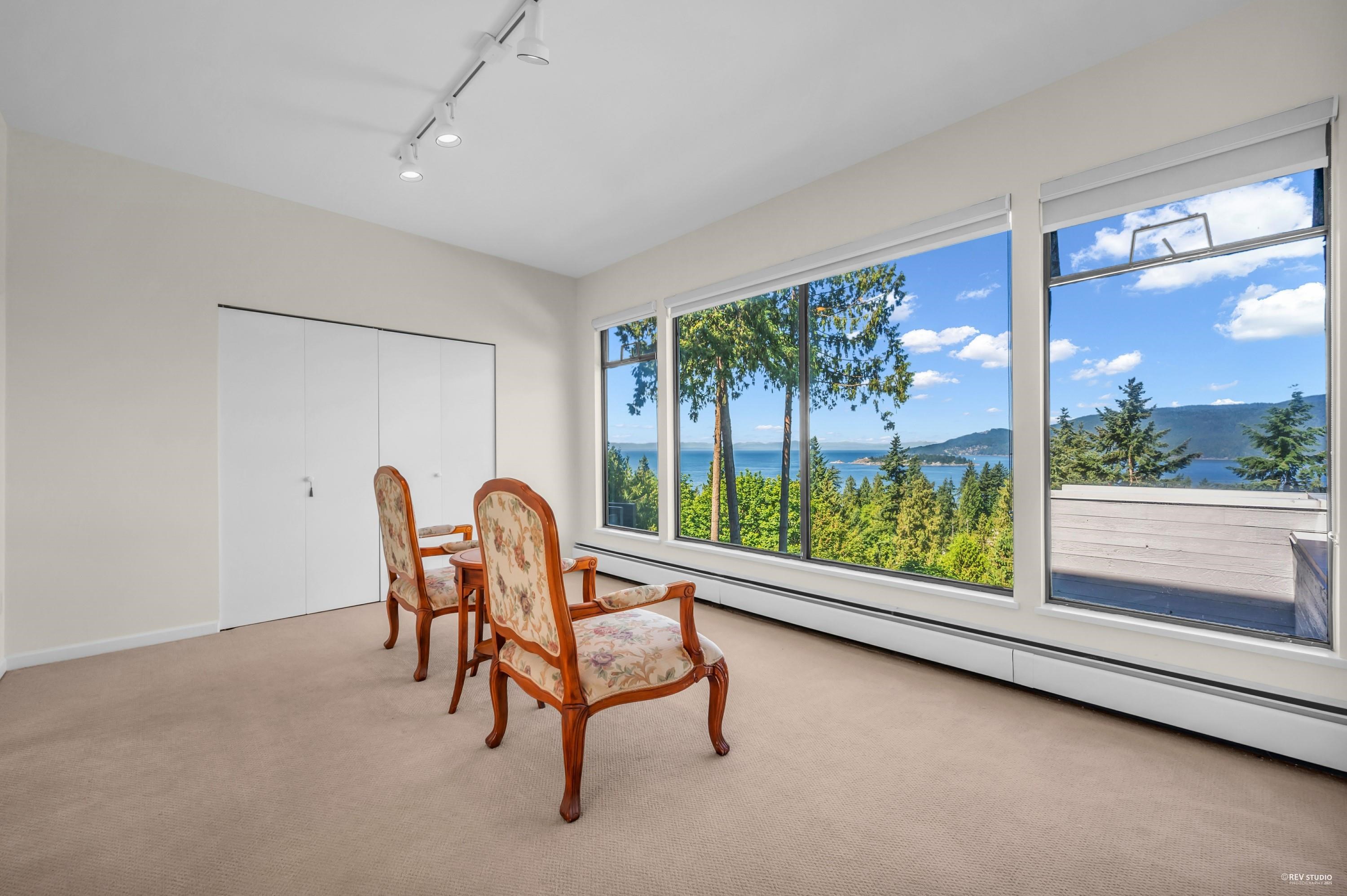 Enjoy stunning views of Howe Sound from this contemporary three-level home, designed by the renowned Arthur Erickson and tucked away on a quiet cul-de-sac. Soaring floor-to-ceiling windows fill the interiors with natural light and showcase the surrounding beauty. The main level features spacious living and family rooms that open onto a large deck, perfect for entertaining. Upstairs, the generously sized primary suite offers a 5-piece ensuite and its own private deck. The lower level includes a second primar...
