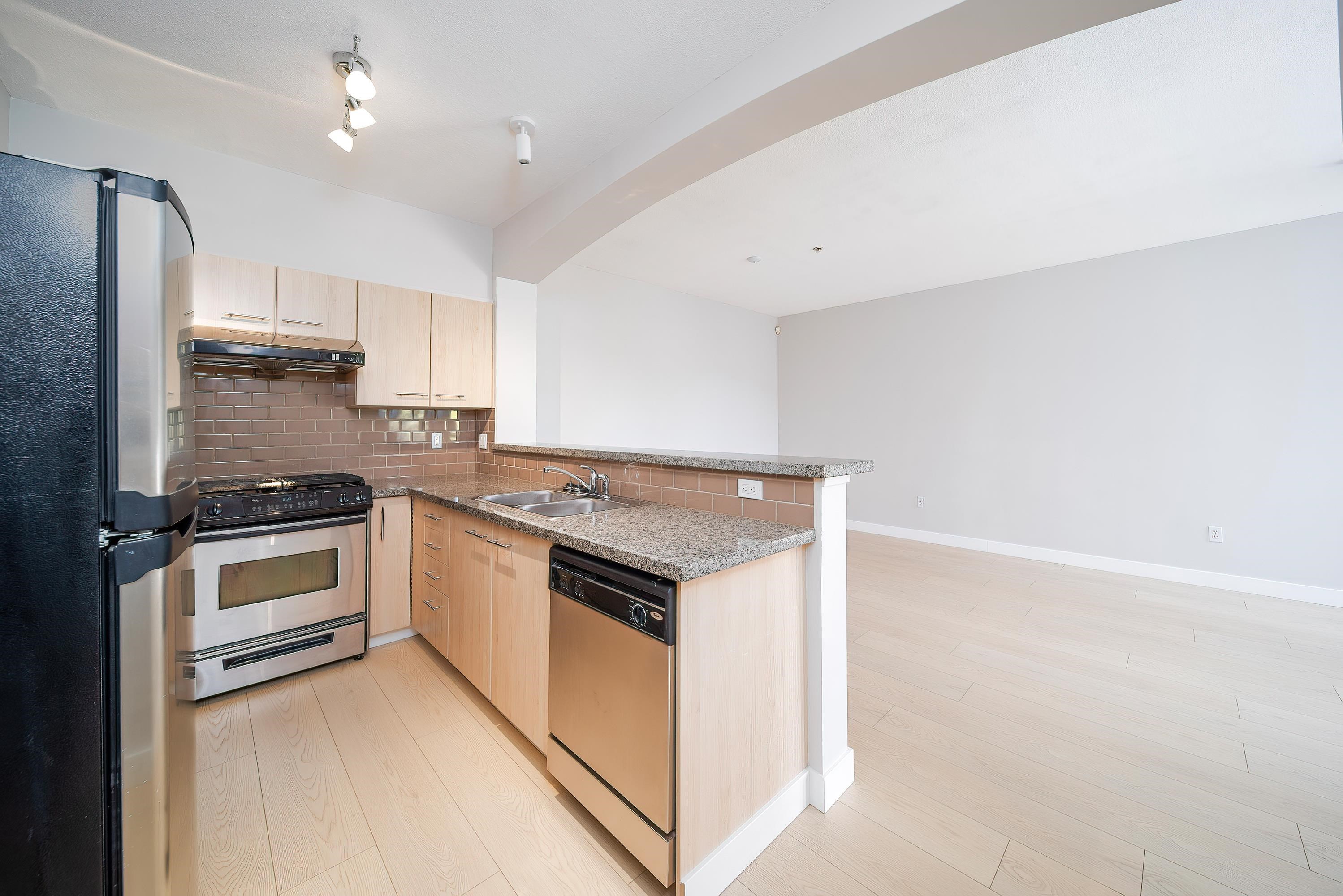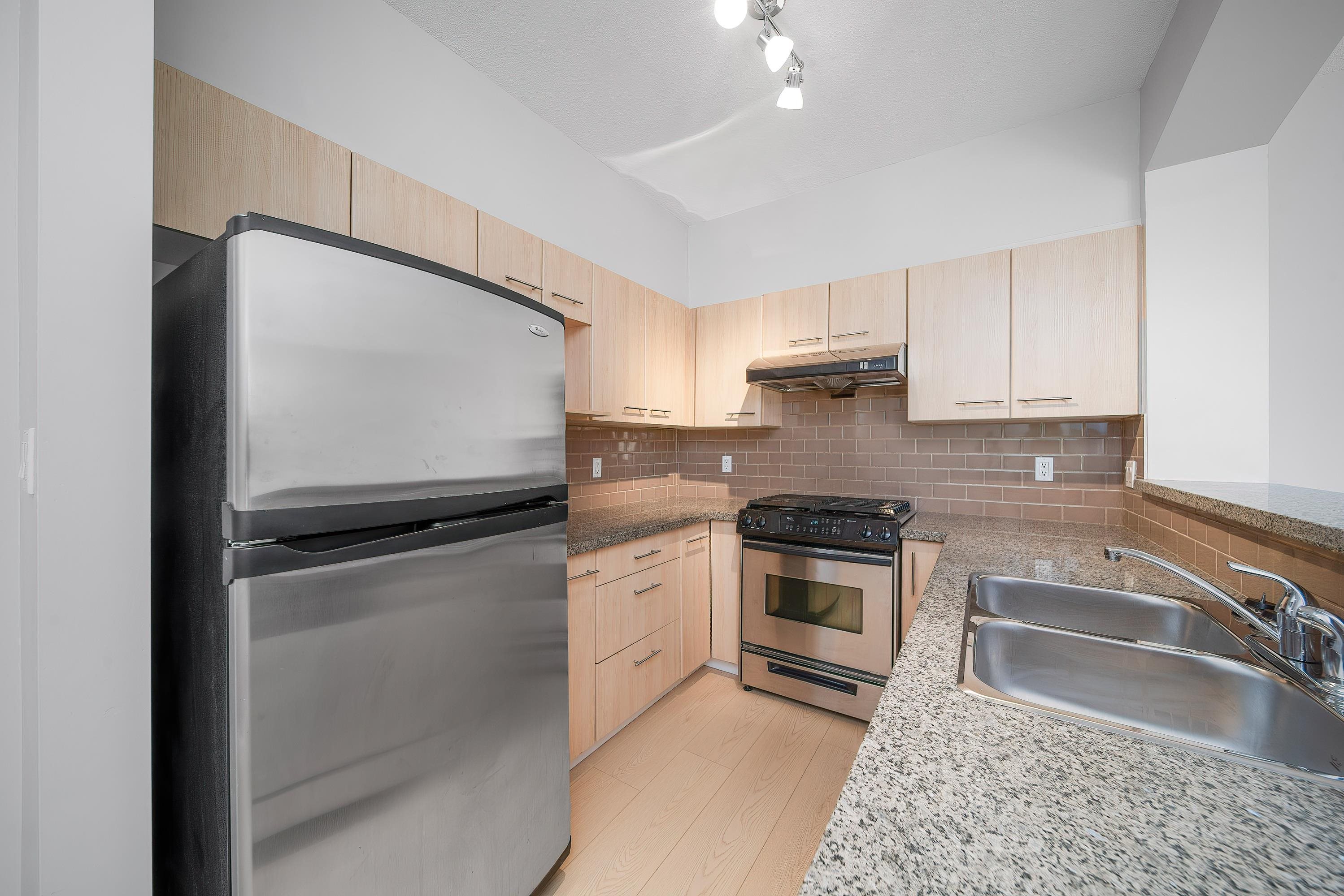 LIONS PARK by Polygon. This immaculate inside South-East Unit facing the inner-courtyard and fountain is rarely available. Very functional floor plan, bright and spacious, 2 bedrooms, 2 full baths,1 den. upgrade including: New painting, new hardwood engineered floor, updated kitchen, granite kitchen countertop, stainless steel appliances. Great location, walking distance to Lansdowne Mall, Kwantlen University, City Centre, Skytrain. Vacant and Move in ready condition & available immediately. Two parking spo...