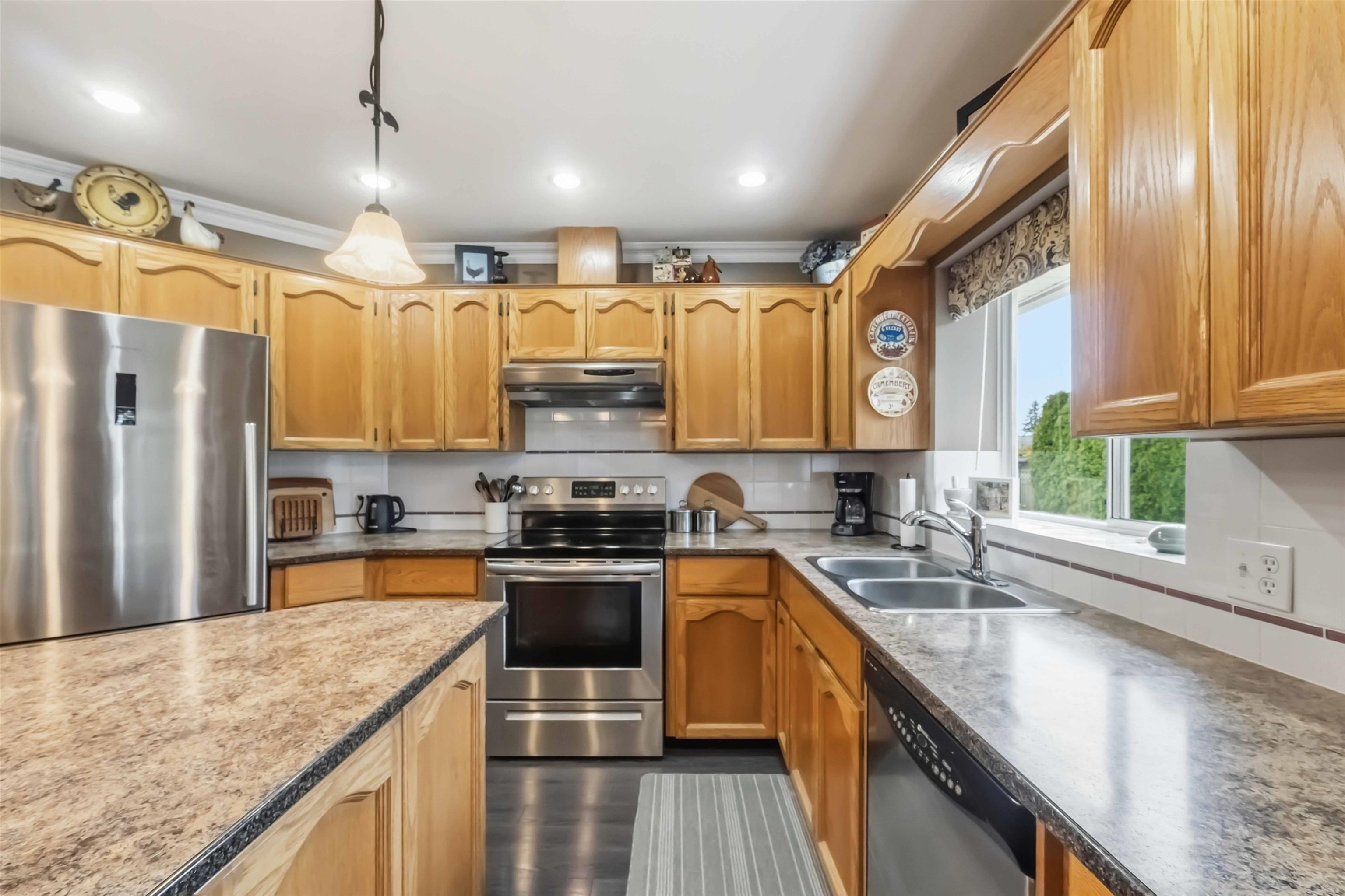 Absolutely spotless and one of Cloverdale's most desirable cul-de-sacs in Fairway Estates. Large west exposed back yard in pristine condition. This lovely two storey, 4 bedrooms home has engineer hardwood floors, River Rock fireplace in the family room, nice kitchen island, stainless steel appliances. Spacious ensuite bathroom. Central Vacuum. Many updates include hot water tank 2026, air conditioner 2018. Wonderful home for a growing family. Close to walking trails and in the Martha Currie French emersion ...