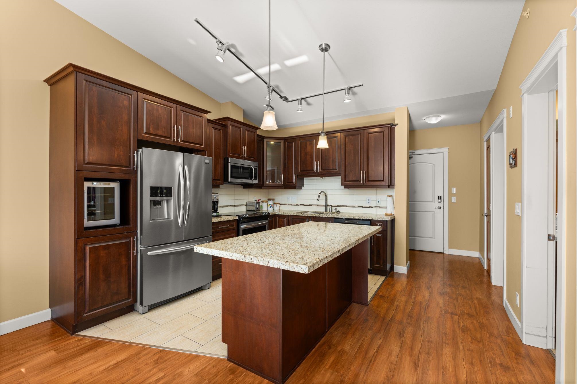 Original owner top floor corner Penthouse at Yorkson Creek !!! 2 bedroom, 2 bath, plus den, that could easily be a 3rd bedroom. Located in the heart of Willoughby Heights, features include vaulted ceilings, open concept layout, stainless steel appliances, granite countertops, 2 underground parking spots and a storage locker. Yorkson Creek is across the street from a 52-acre public park, including dog park. Close to all levels of school's shopping, quick freeway access and amenities including the Langley Eve...