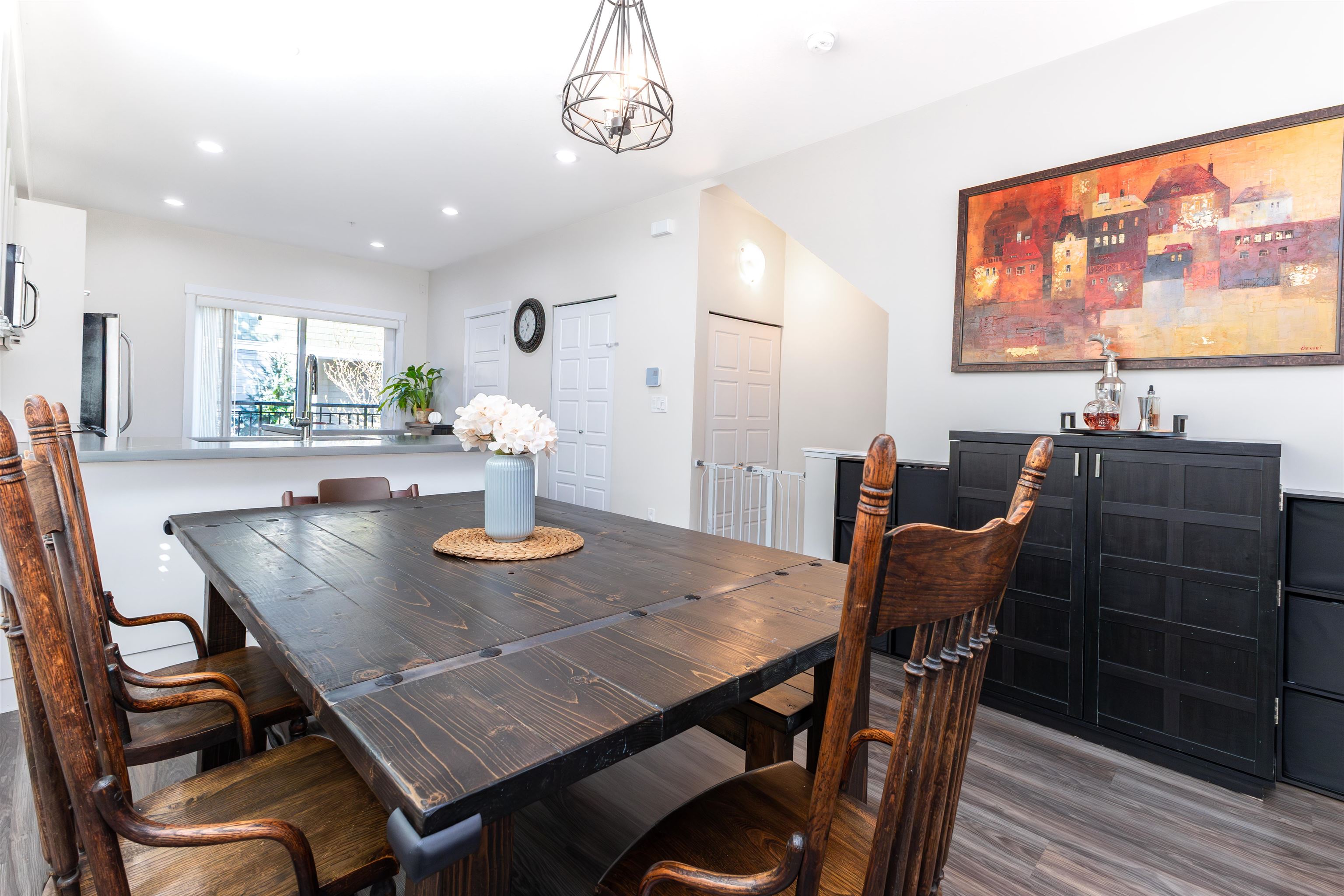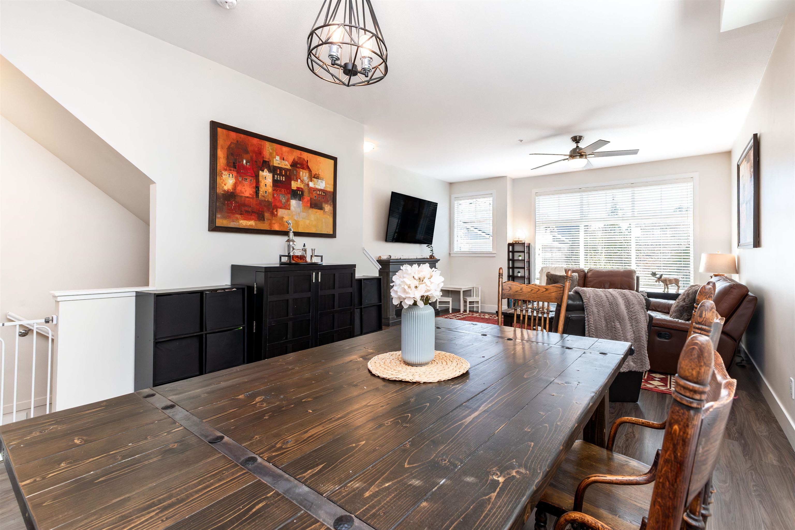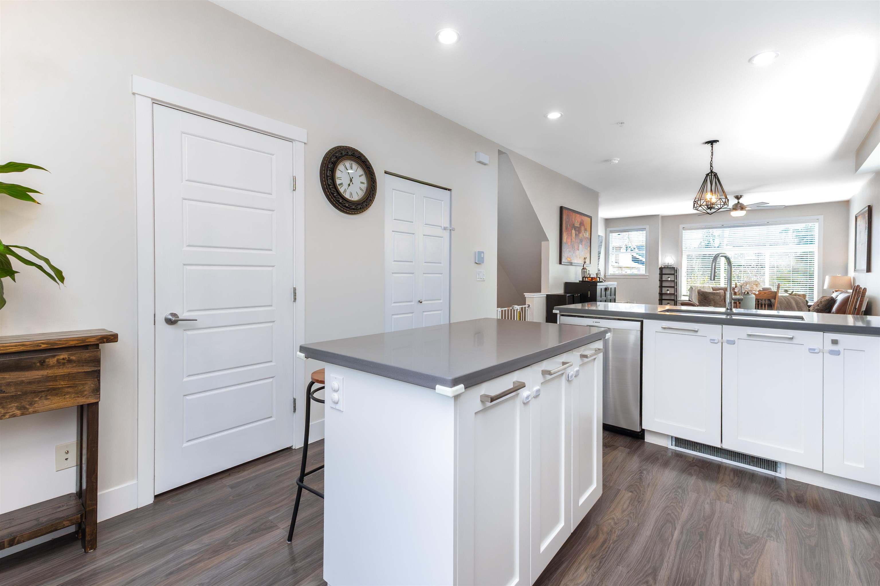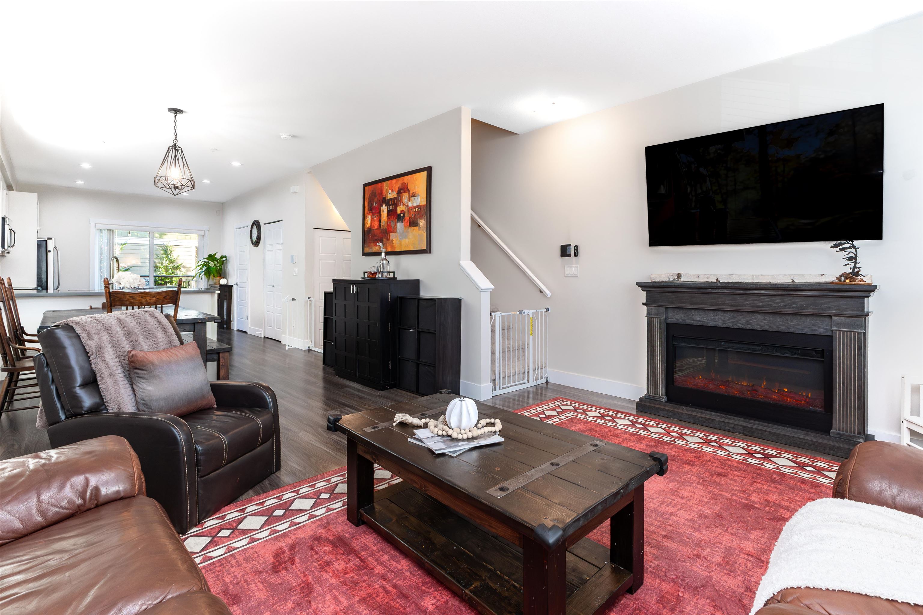Nature's Walk Presents: Bright and gorgeous END UNIT. Main floor features open concept design with 9' ceilings, powder room, and lots of natural light with the extra windows. Kitchen boasts white shaker cabinetry, quartz countertops, stainless steel appliances, island with storage, and pantry. Balcony off the kitchen overlooking large fenced yard with mature trees for privacy. Upstairs you will find primary bedroom with vaulted ceilings, 3 pc ensuite and walk through closets. 2 additional bedrooms upstairs ...