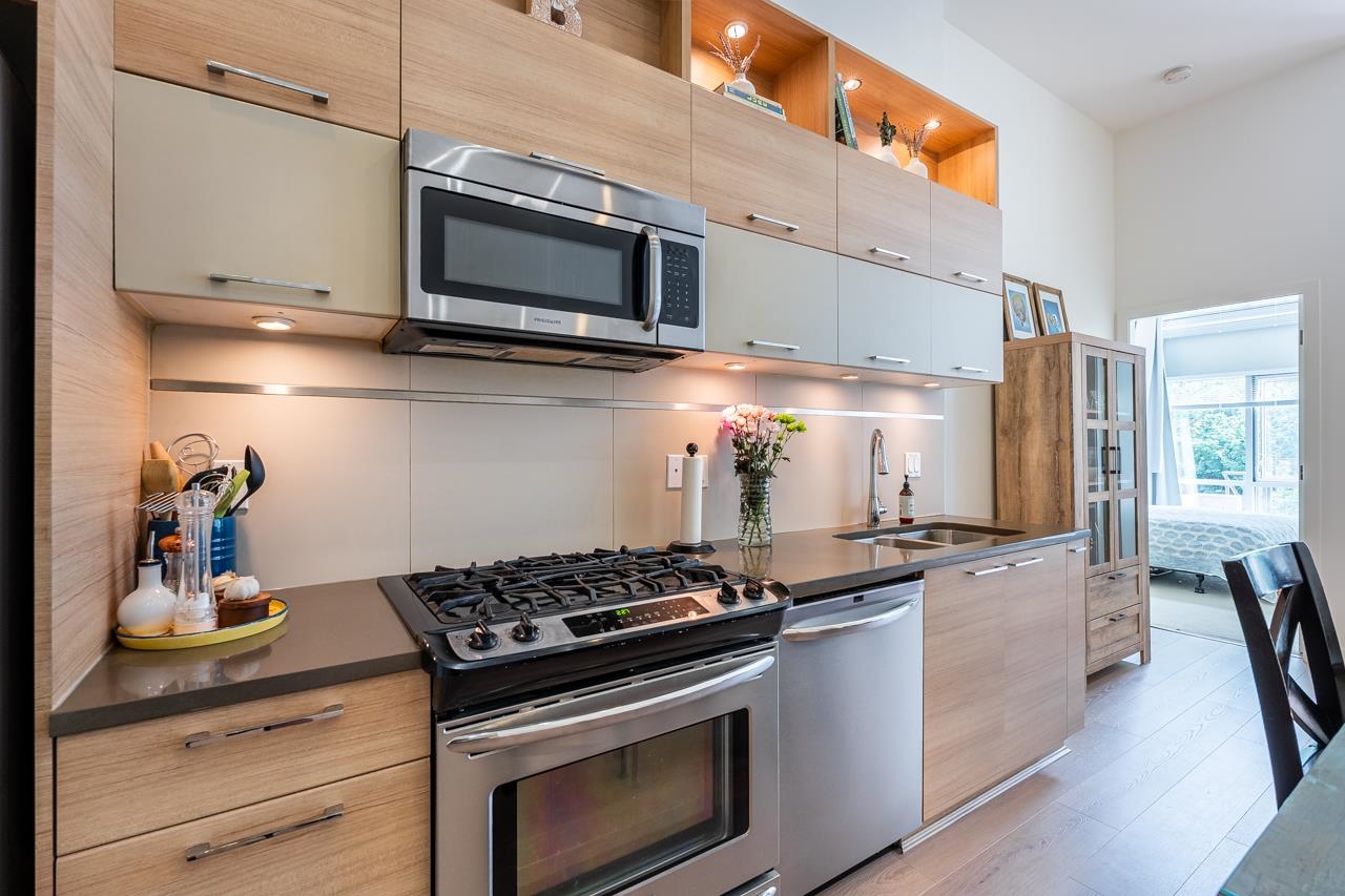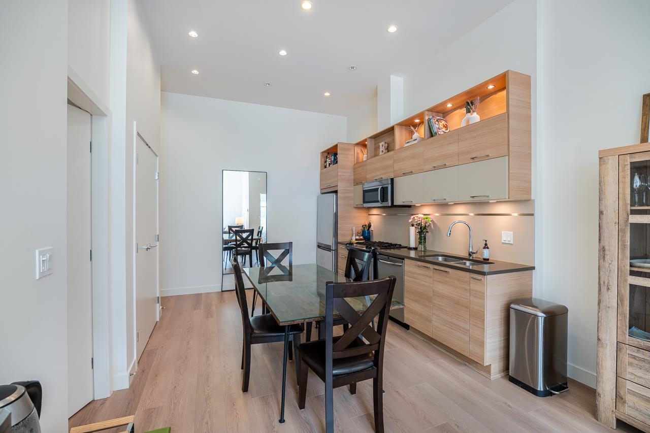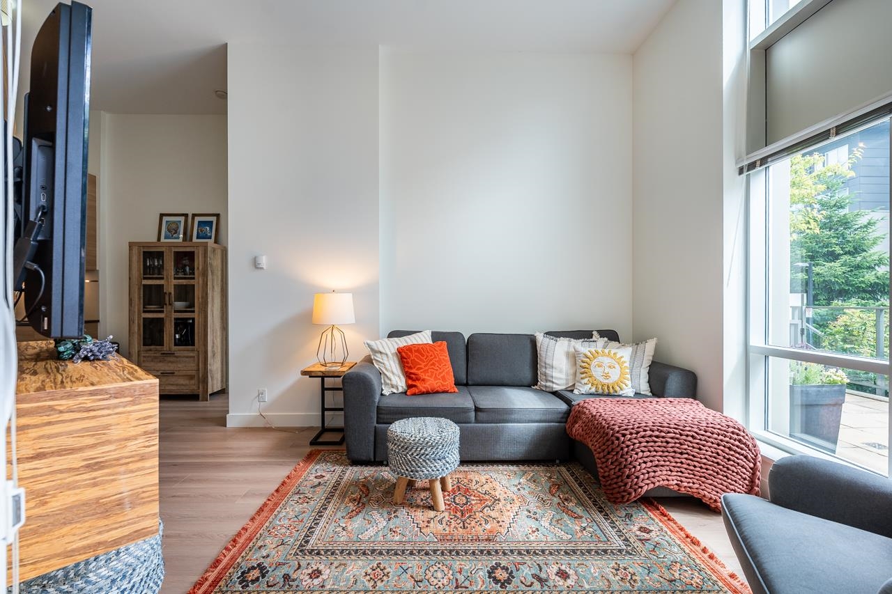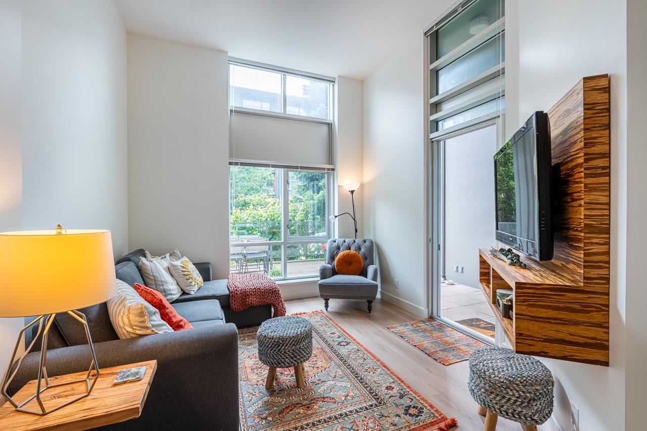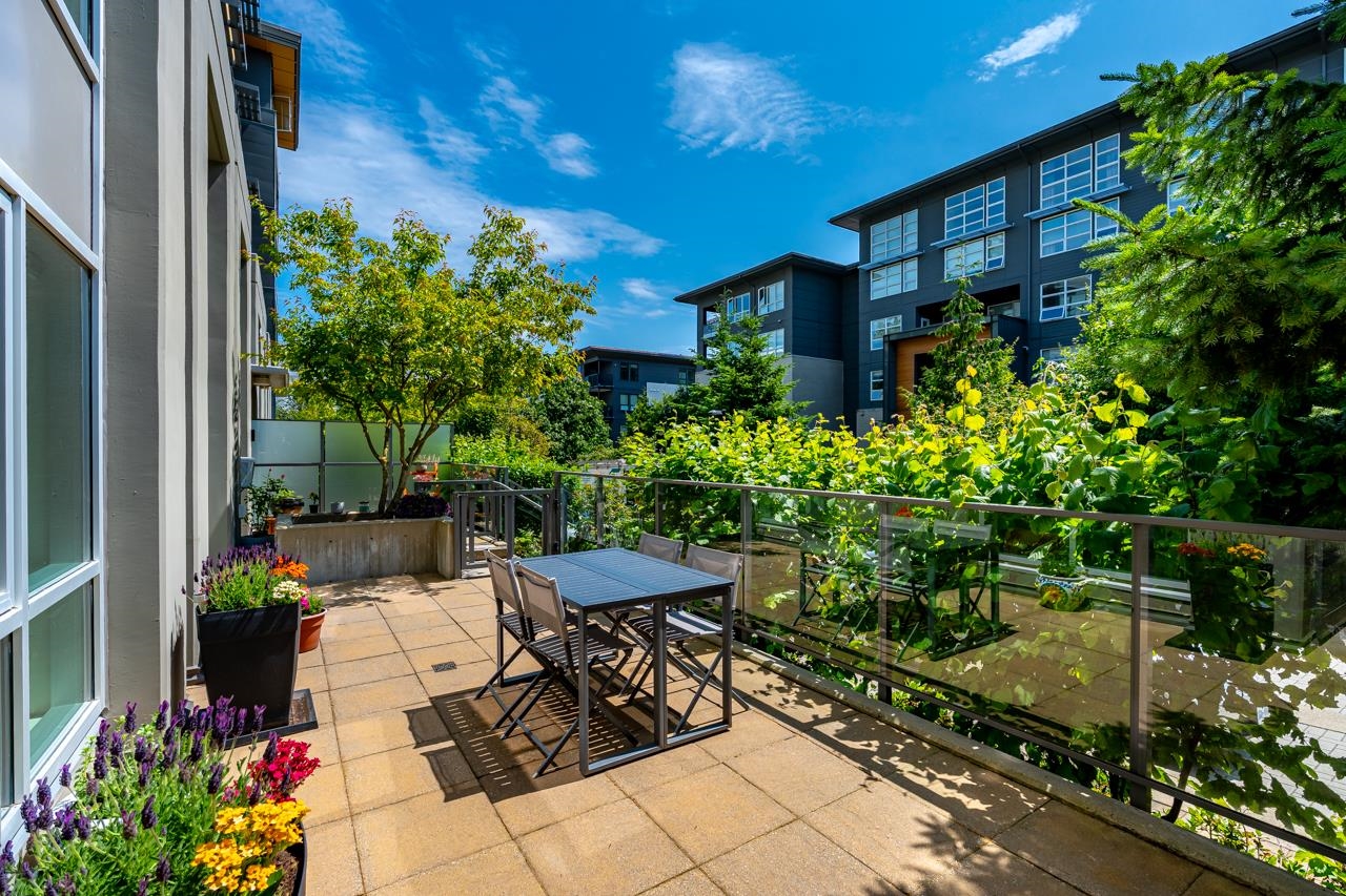 Townhouse style entry off your expansive, private, gated, south facing patio. Step inside to soaring 11'6 foot ceilings and over height double windows. Enjoy the comforts of in-floor radiant heating, a modern linear kitchen with stainless steel appliances, gas cooktop, loads of cabinets & polished quartz countertops. Showcasing brand new laminate flooring & carpets. Perfect for shared living, bedrooms and baths on opposite side of living space. Situated in SFU's sought-after UniverCity community: steps to ...