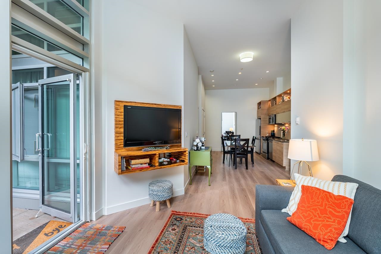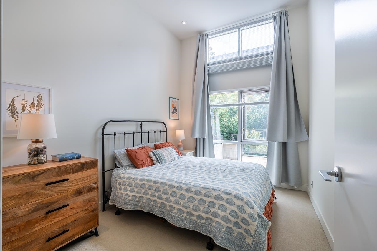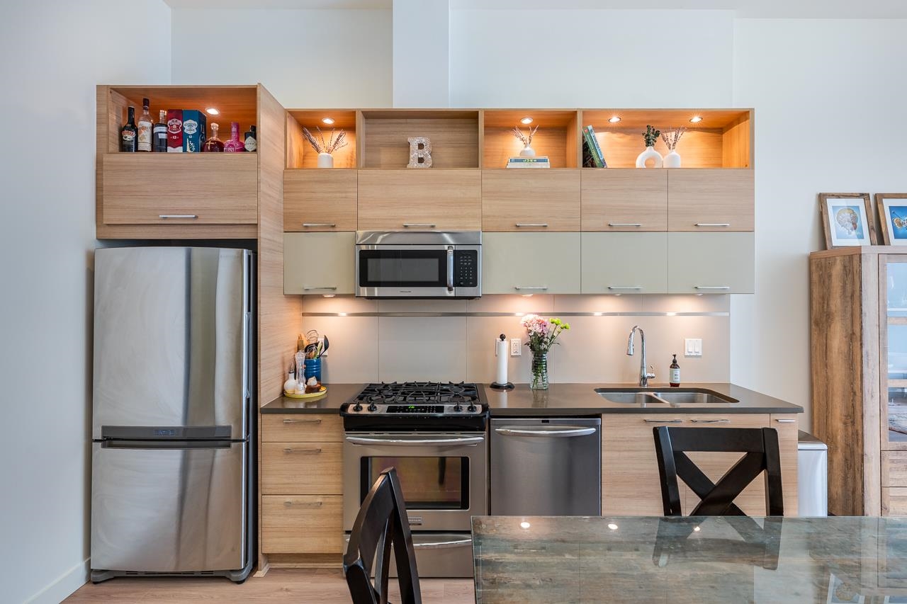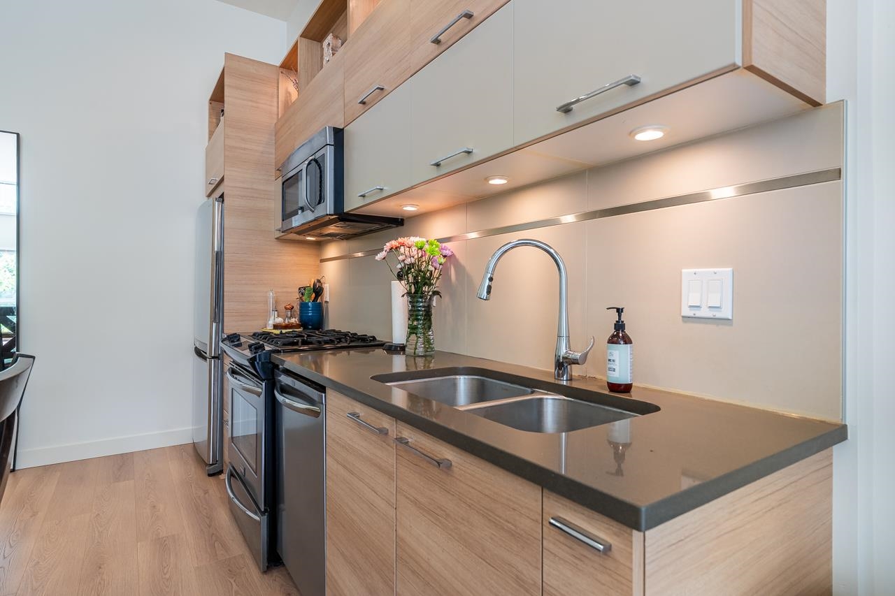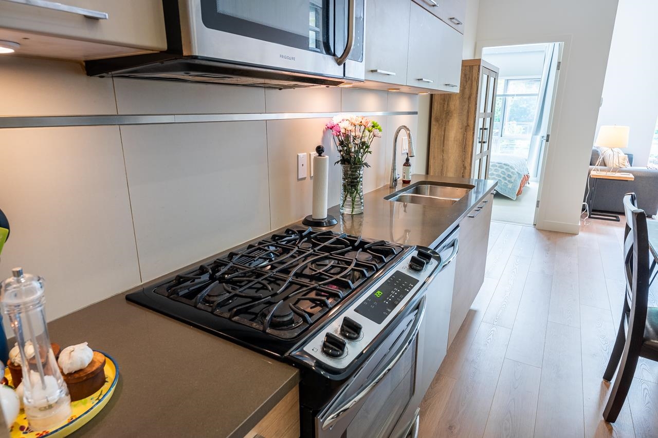 Townhouse style entry off your expansive, private, gated, south facing patio. Step inside to soaring 11'6 foot ceilings and over height double windows. Enjoy the comforts of in-floor radiant heating, a modern linear kitchen with stainless steel appliances, gas cooktop, loads of cabinets & polished quartz countertops. Showcasing brand new laminate flooring & carpets. Perfect for shared living, bedrooms and baths on opposite side of living space. Situated in SFU's sought-after UniverCity community: steps to ...