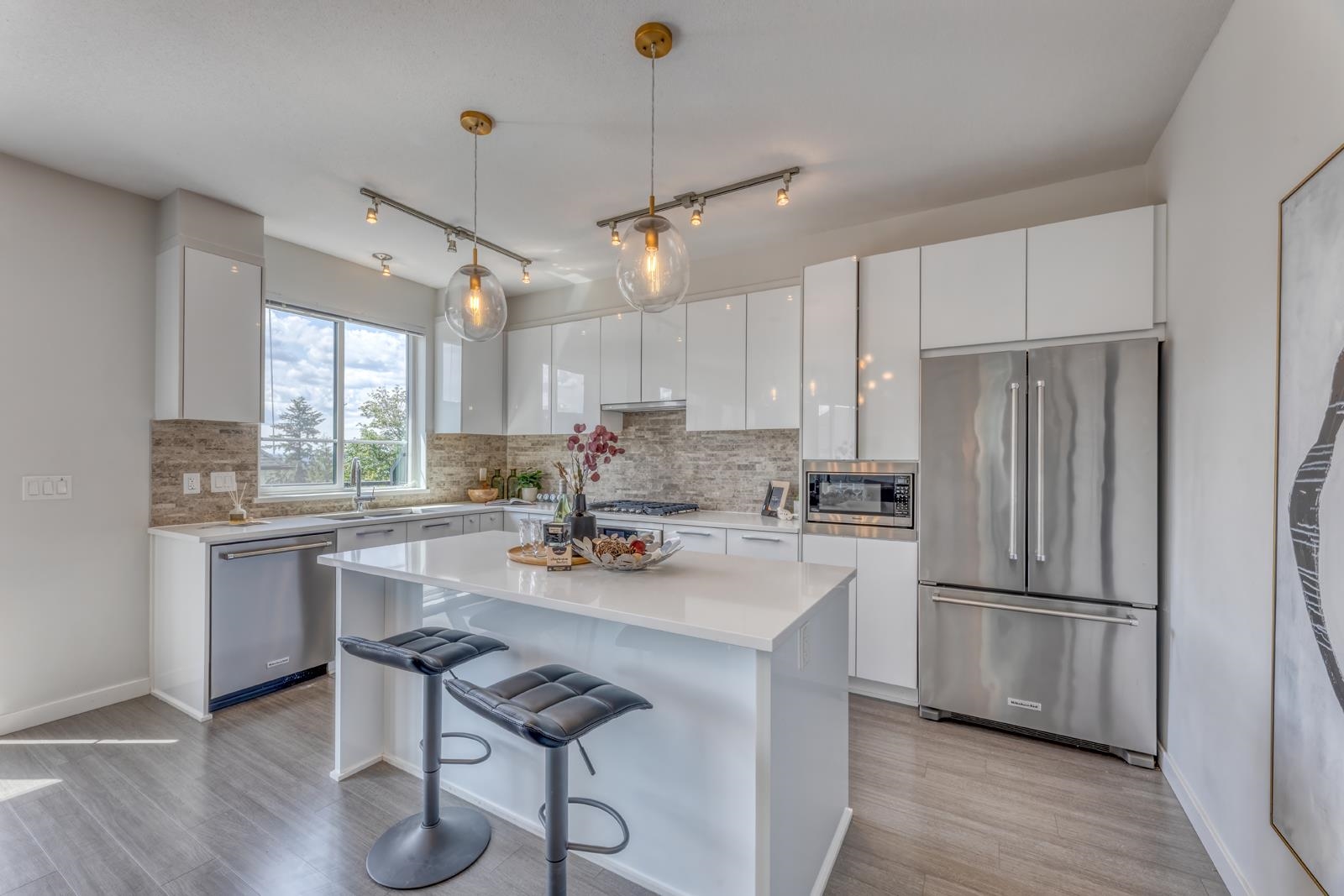 Kentwell by Polygon neighboring 3.5-acre Riley Park on Burke Mt! This duplex-style end unit offers airy open layout with generous living space and abundant sunlight. Main level offers gourmet kitchen with huge island, gas cooktop, quartz countertops and SS appliances. Seamless integration of dinning and living space with access to the South-facing balcony. Upstairs boasts a primary suite adorned with a spa-inspired 5pcs-ensuite featuring a frameless shower, double sink, and an indulgent soaker tub, plus gor...