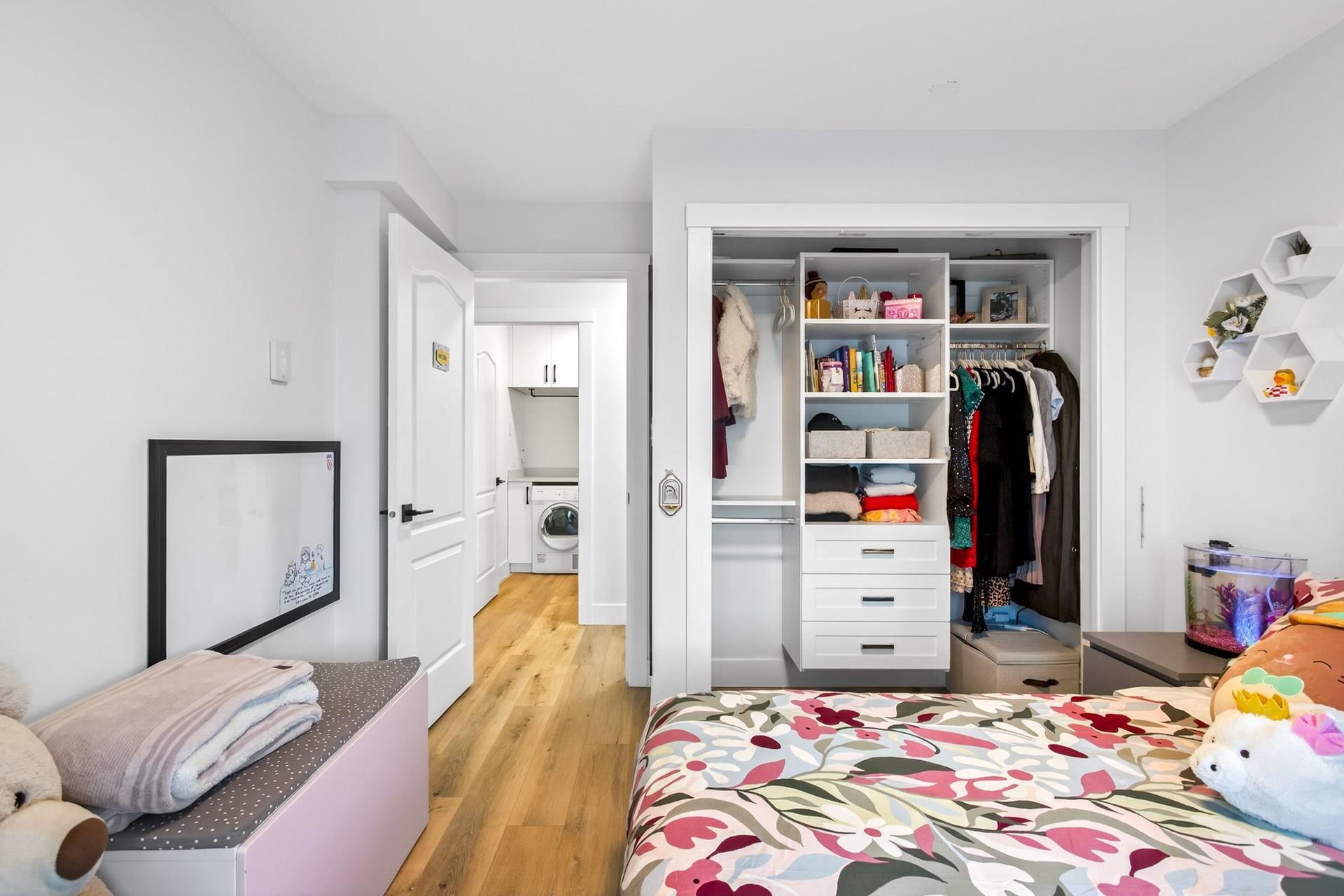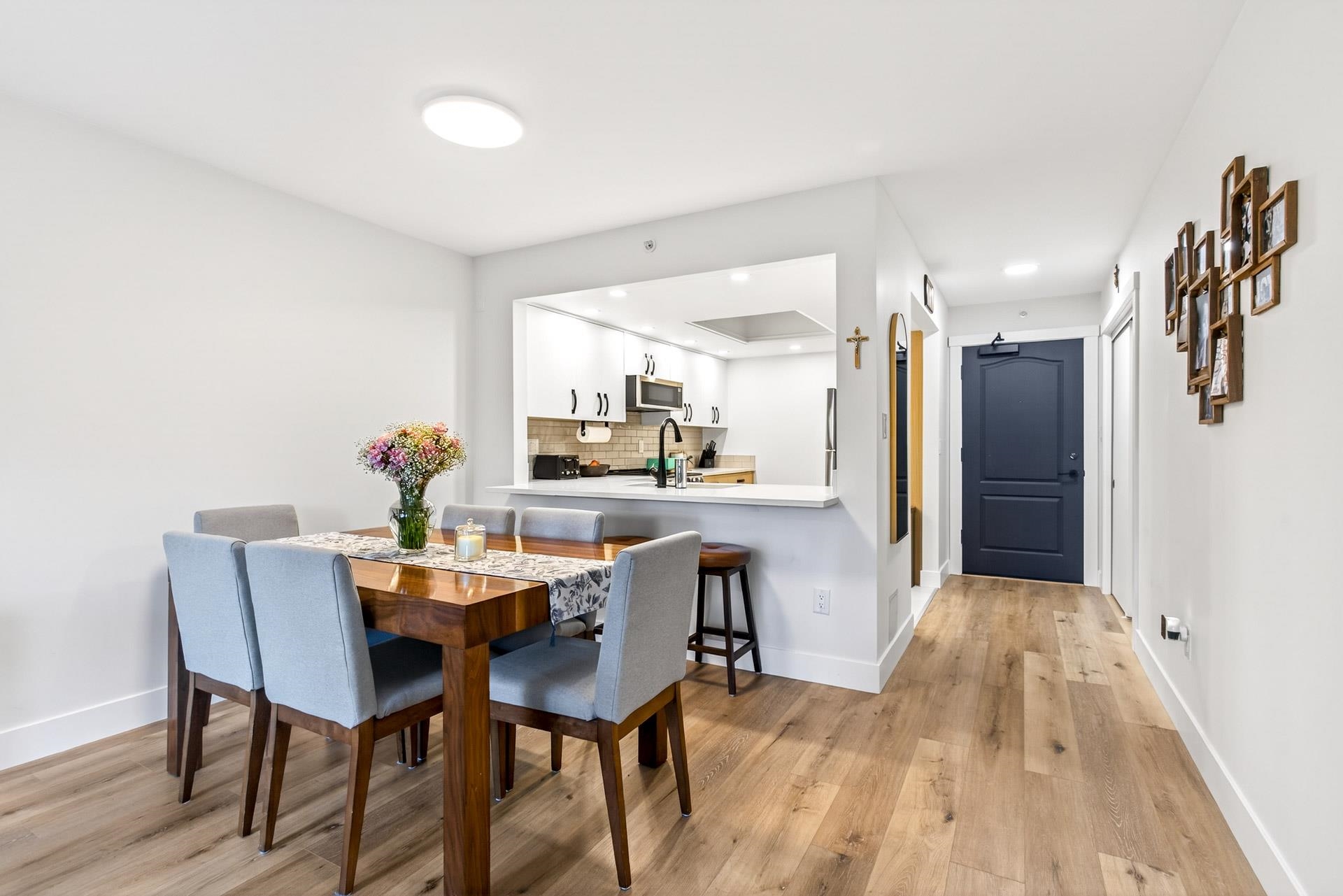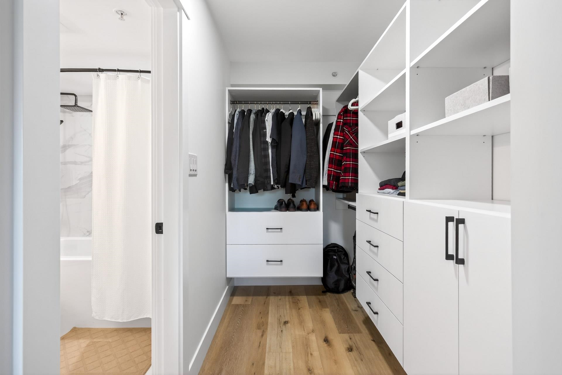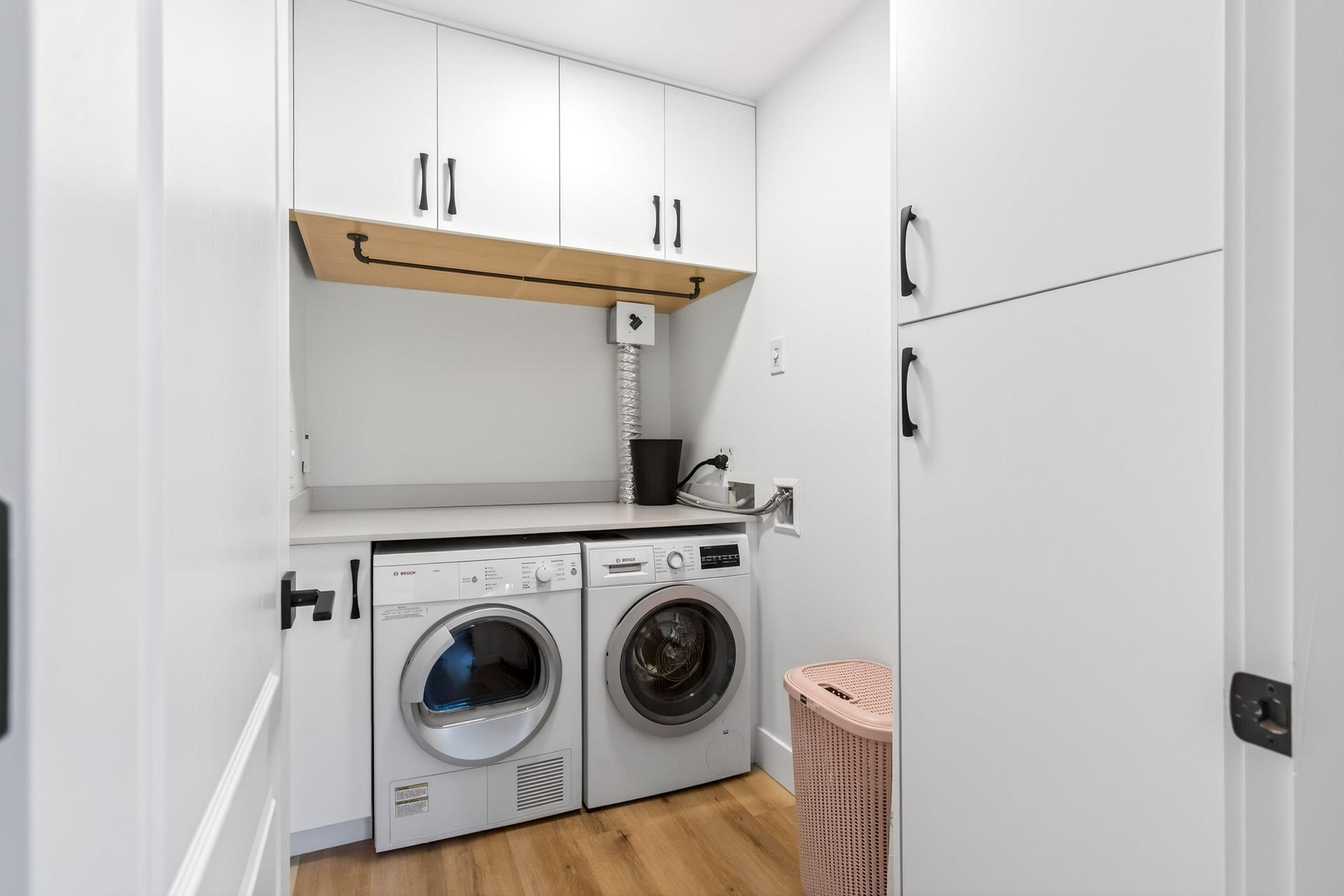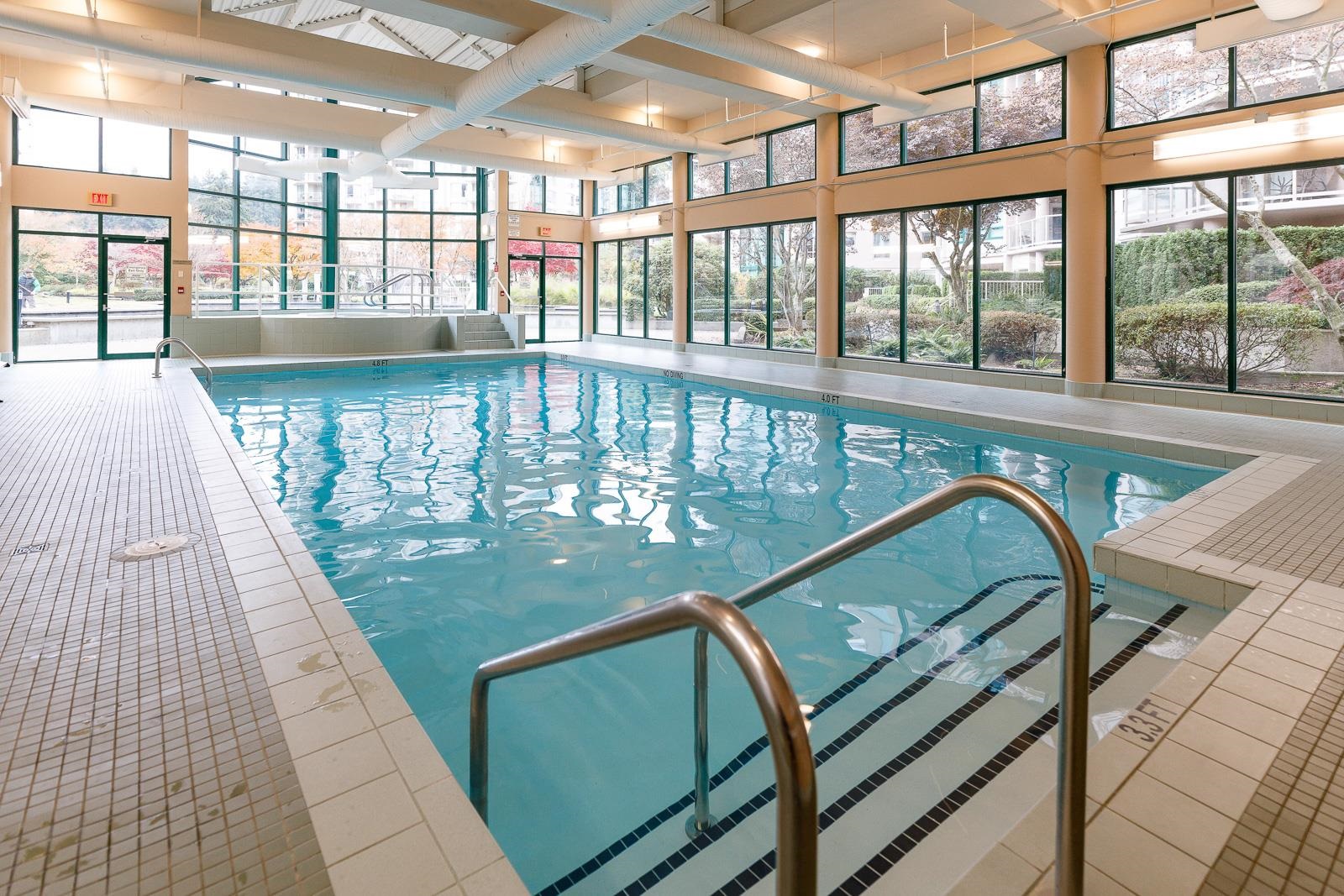 Welcome to Hudson by BOSA. Fully renovated 2 bed, 2 bath home featuring vinyl flooring, updated kitchen and bathrooms, custom built-in closets and roller blinds throughout with blackout blinds in both bedrooms. Thoughtful layout includes a separate laundry room with storage and patio access from both bedrooms. Well-maintained, fully re-piped building with indoor pool, sauna, gym and more. Includes 1 parking and 1 storage. Unbeatable location steps to Lafarge Lake, SkyTrain, Douglas College and Coquitlam Cen...