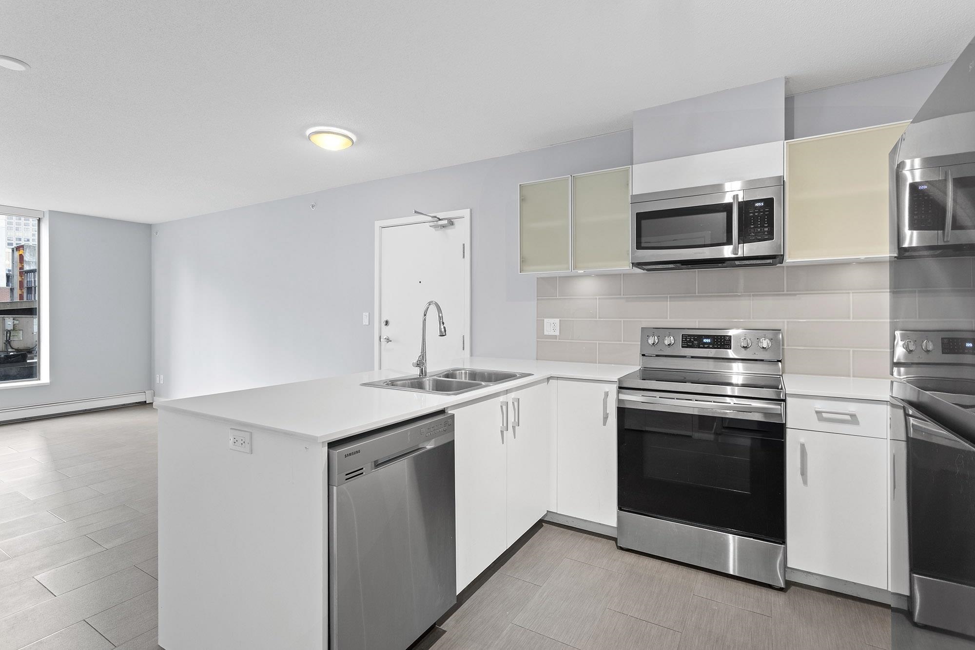 STYLISH + MODERN 1BED/1BATH in Westbank’s award-winning 60 W CORDOVA. Super unique concrete building in the absolute heart of historic Gastown. This unit is the largest 1-bed floor-plan in the building—smart, spacious, and perfectly laid out. U-shaped kitchen with quartz counters + bar seating, upgraded full size s/s appliances and brand new paint thru-out. King-sized bedroom w/ double closets. Quiet west-facing w/ large windows & lots of natural light. Generous patio with unique urban views-BBQ's allowed. ...